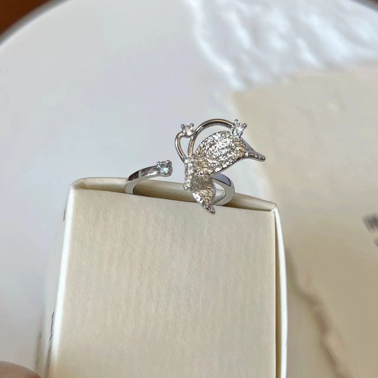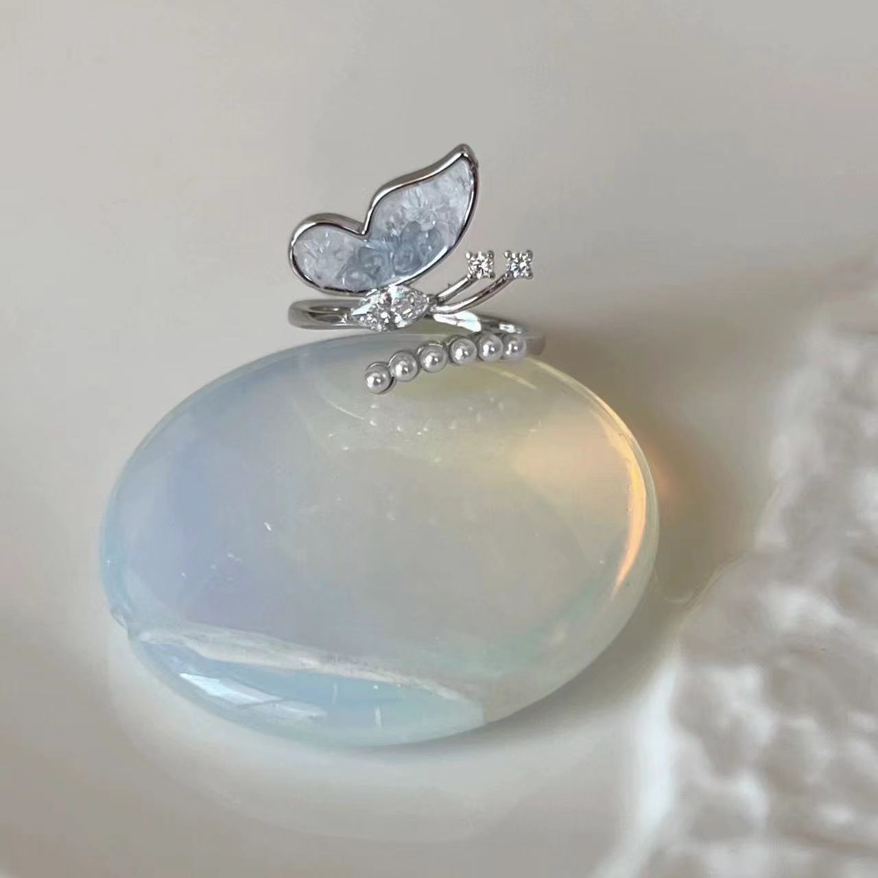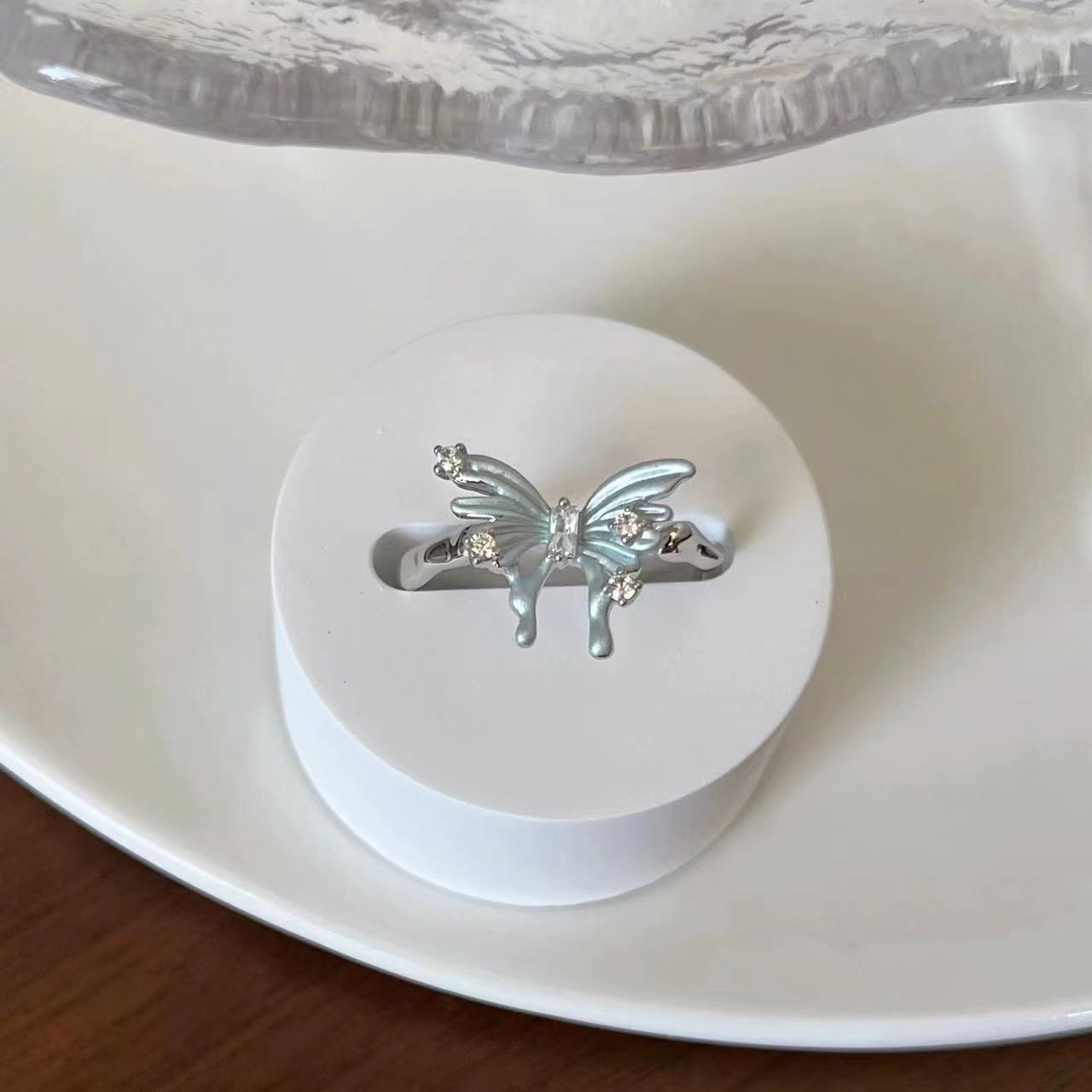 法式复古蓝色蝴蝶戒指2024新款设计感气质个性简约清冷感百搭戒指