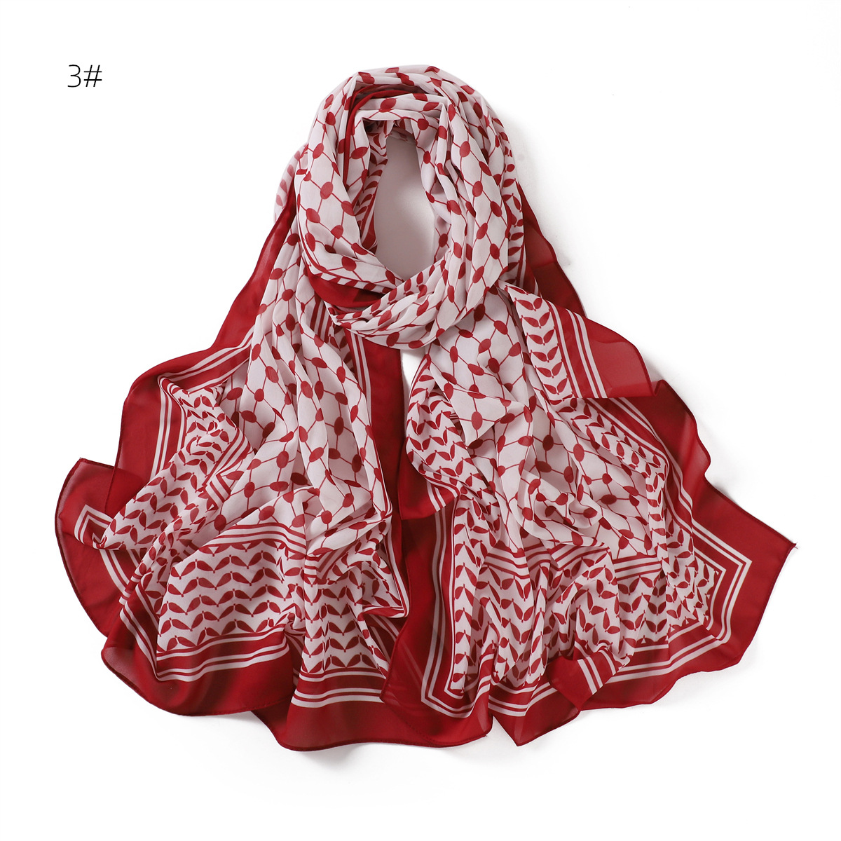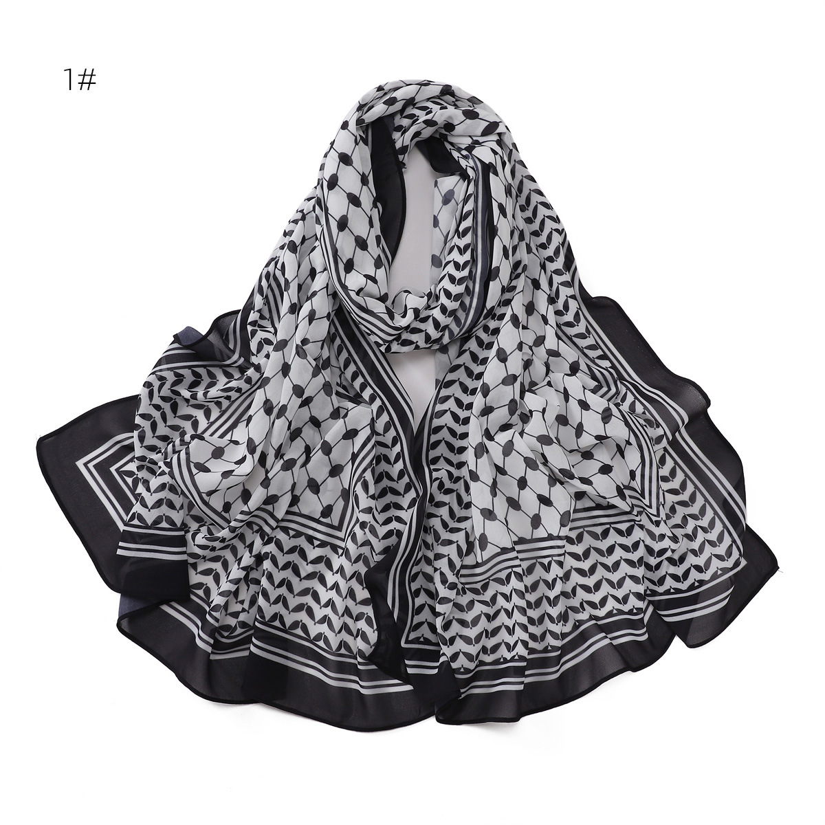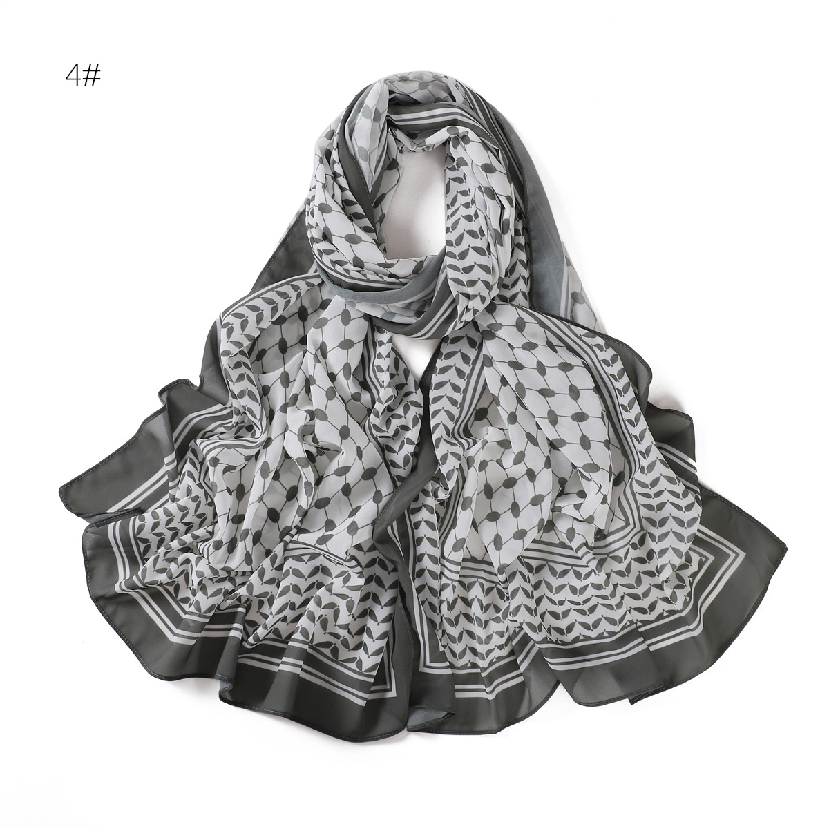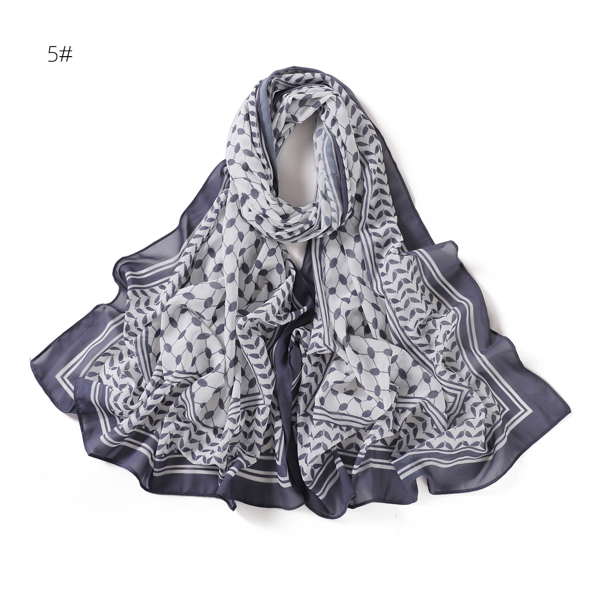 跨境新款阿拉伯头巾珍珠雪纺印花围巾沙漠长巾包头巾防晒丝巾现货