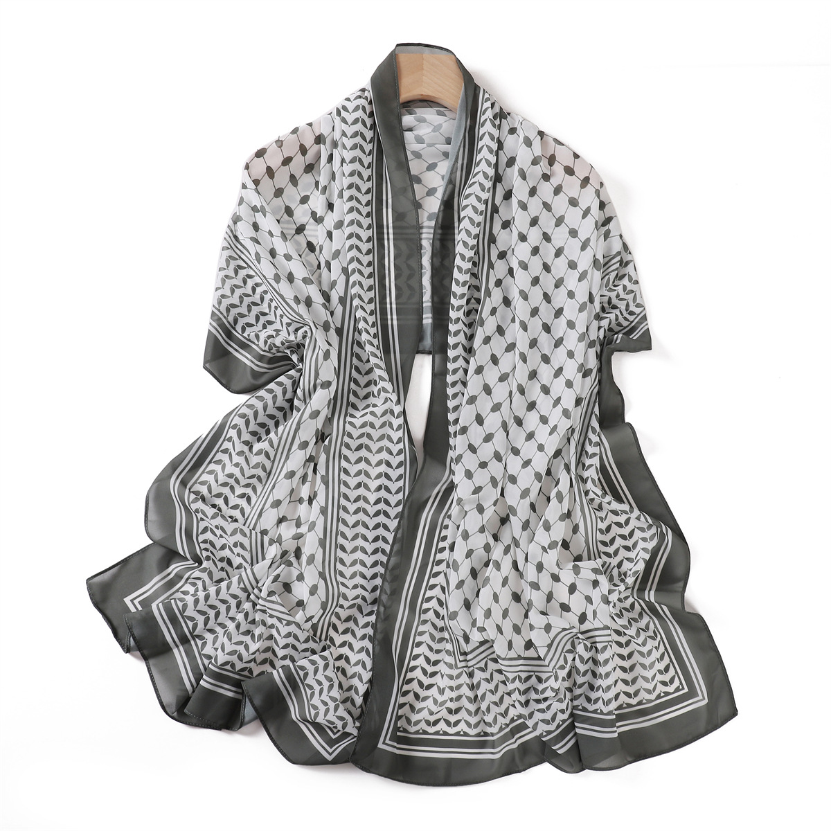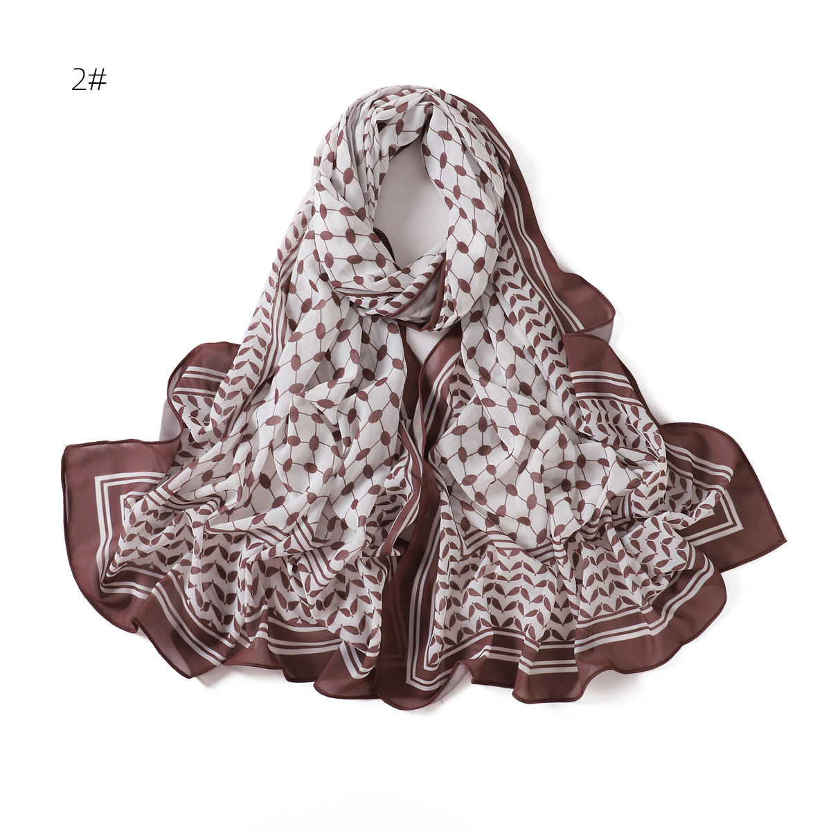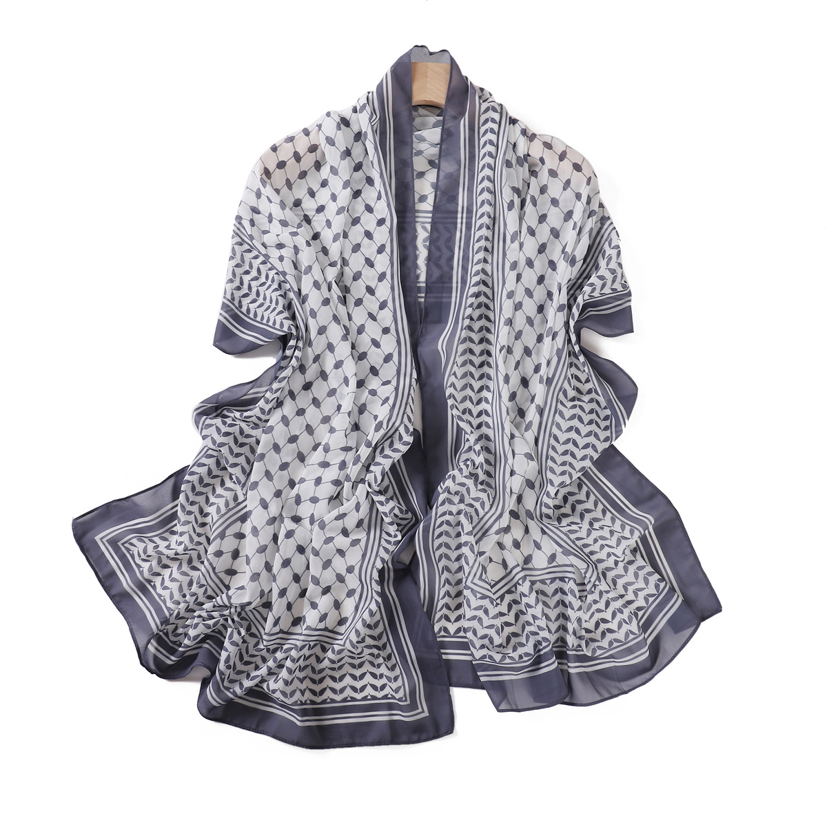 跨境新款阿拉伯头巾珍珠雪纺印花围巾沙漠长巾包头巾防晒丝巾现货