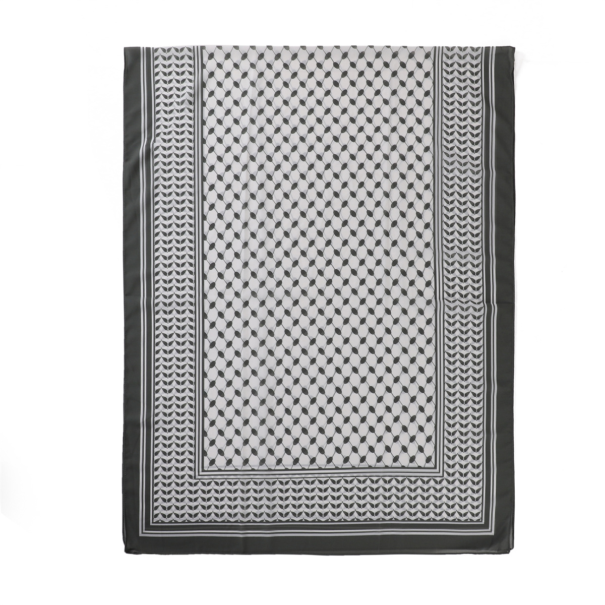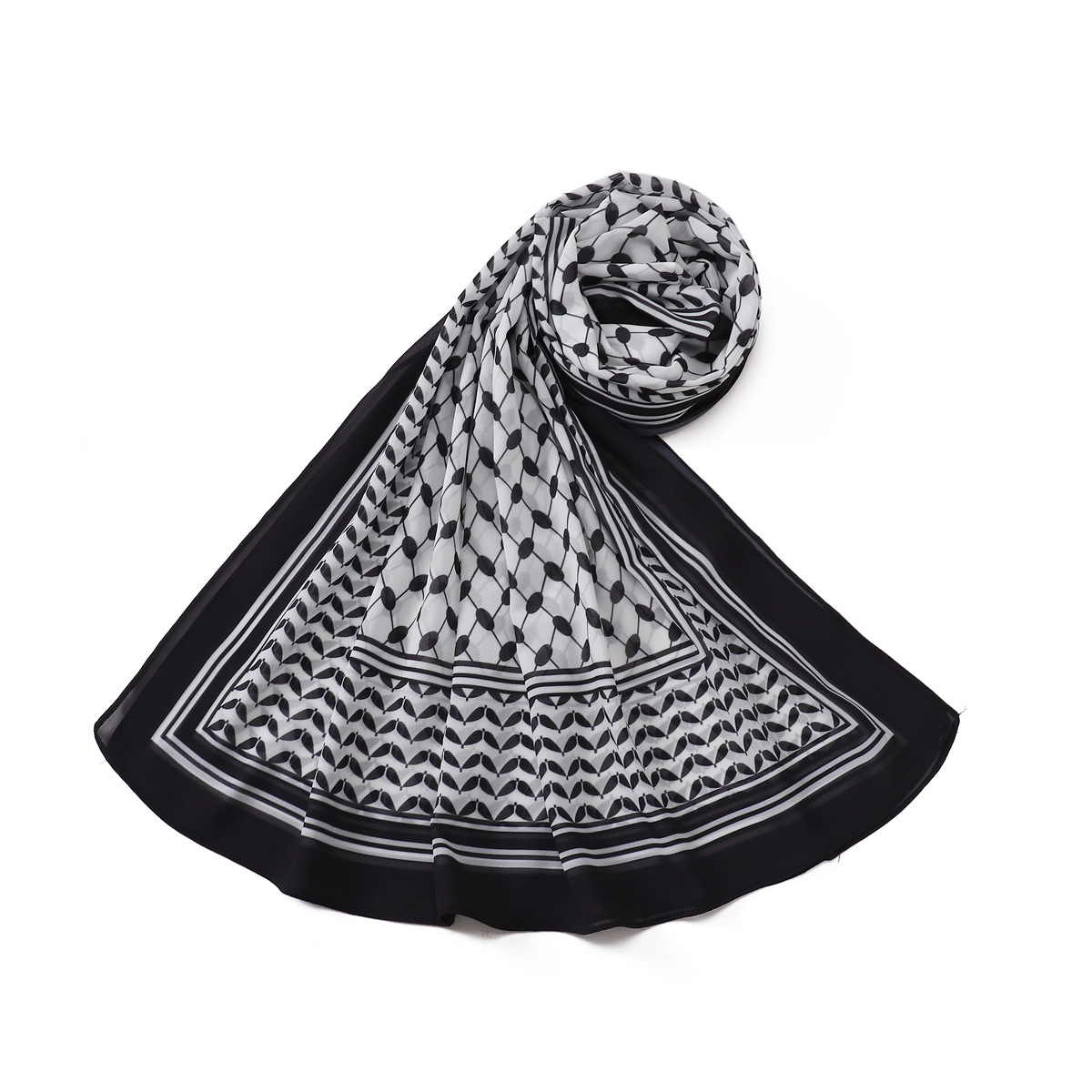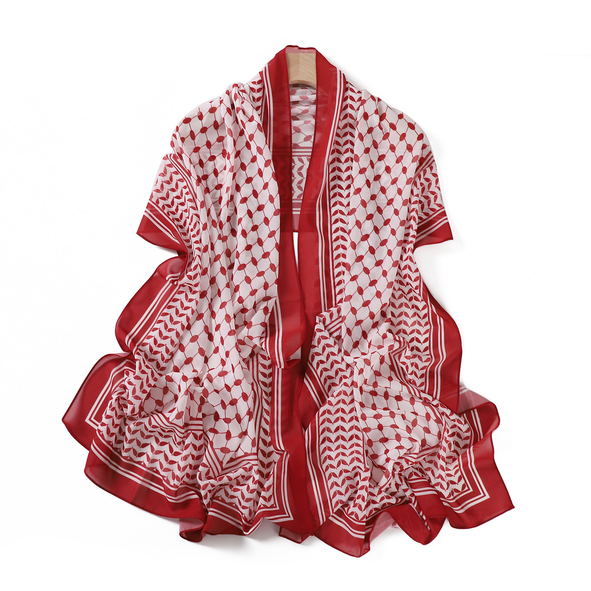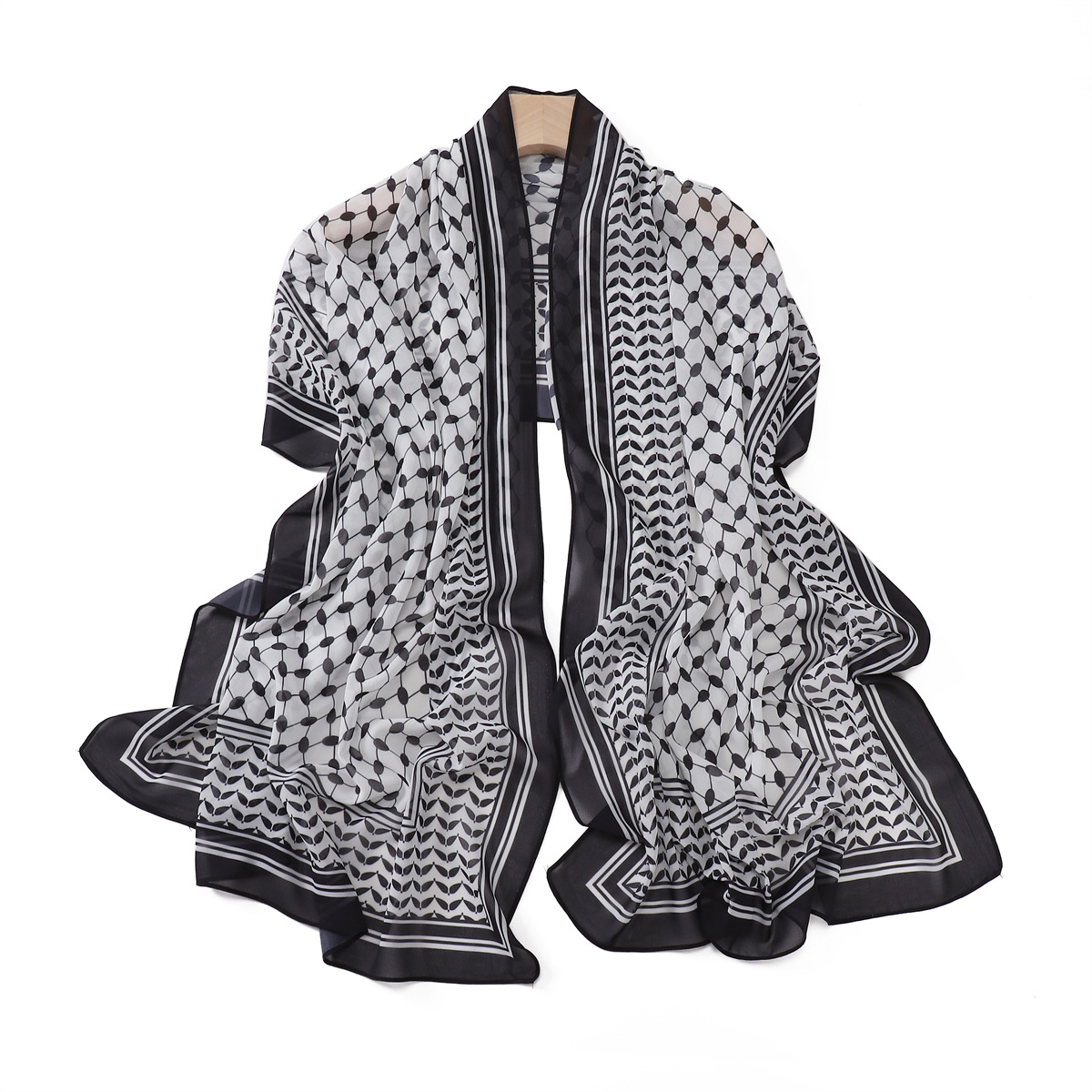 跨境新款阿拉伯头巾珍珠雪纺印花围巾沙漠长巾包头巾防晒丝巾现货