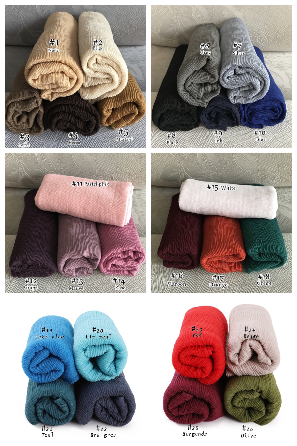 跨境速卖通女士纯色棉麻丝巾舒适围脖压皱头巾透气包头巾一件代发