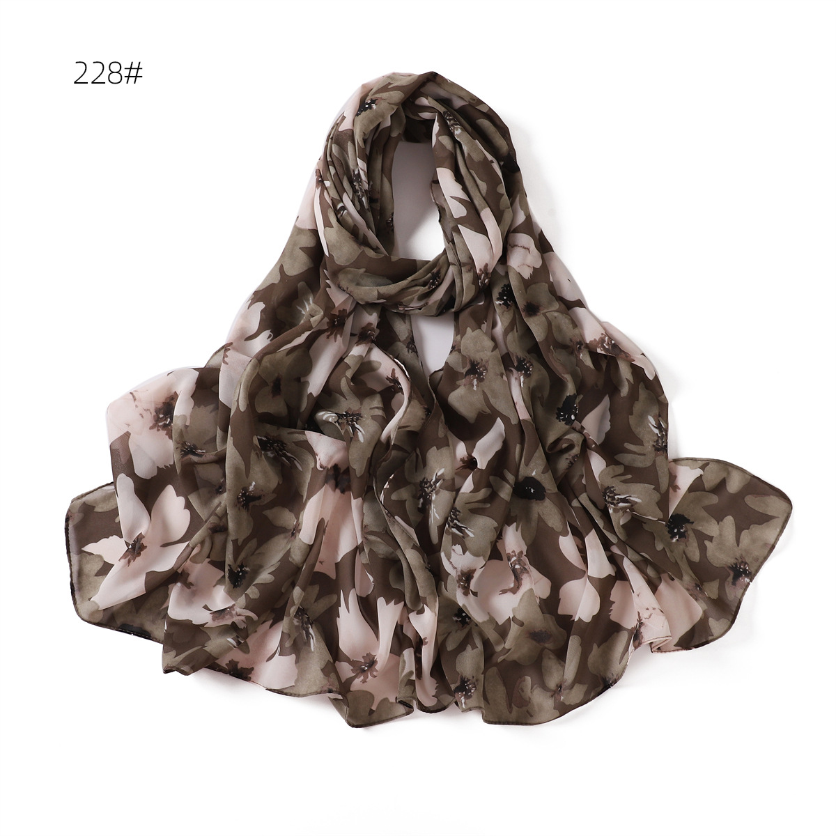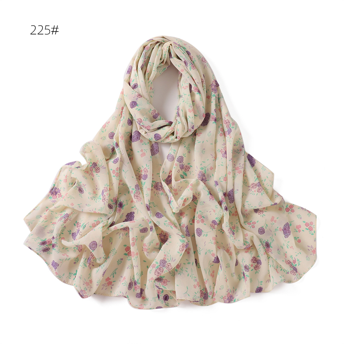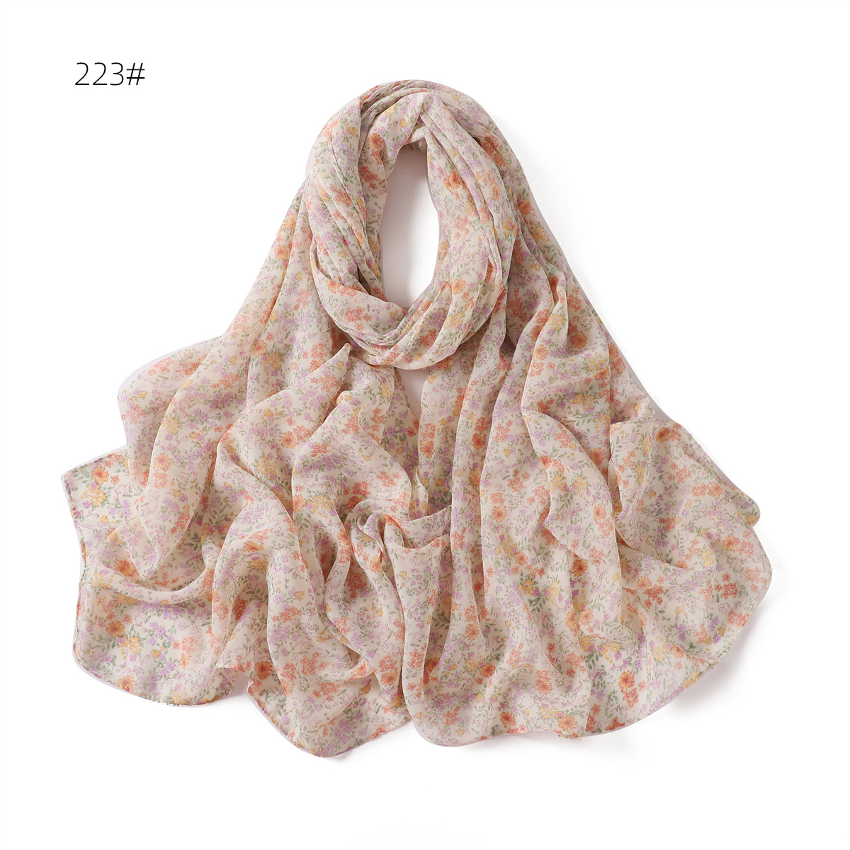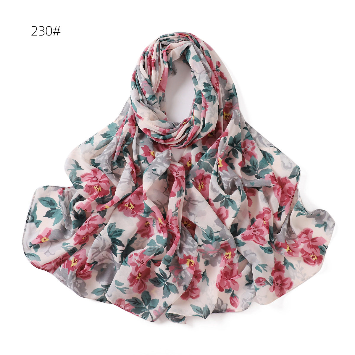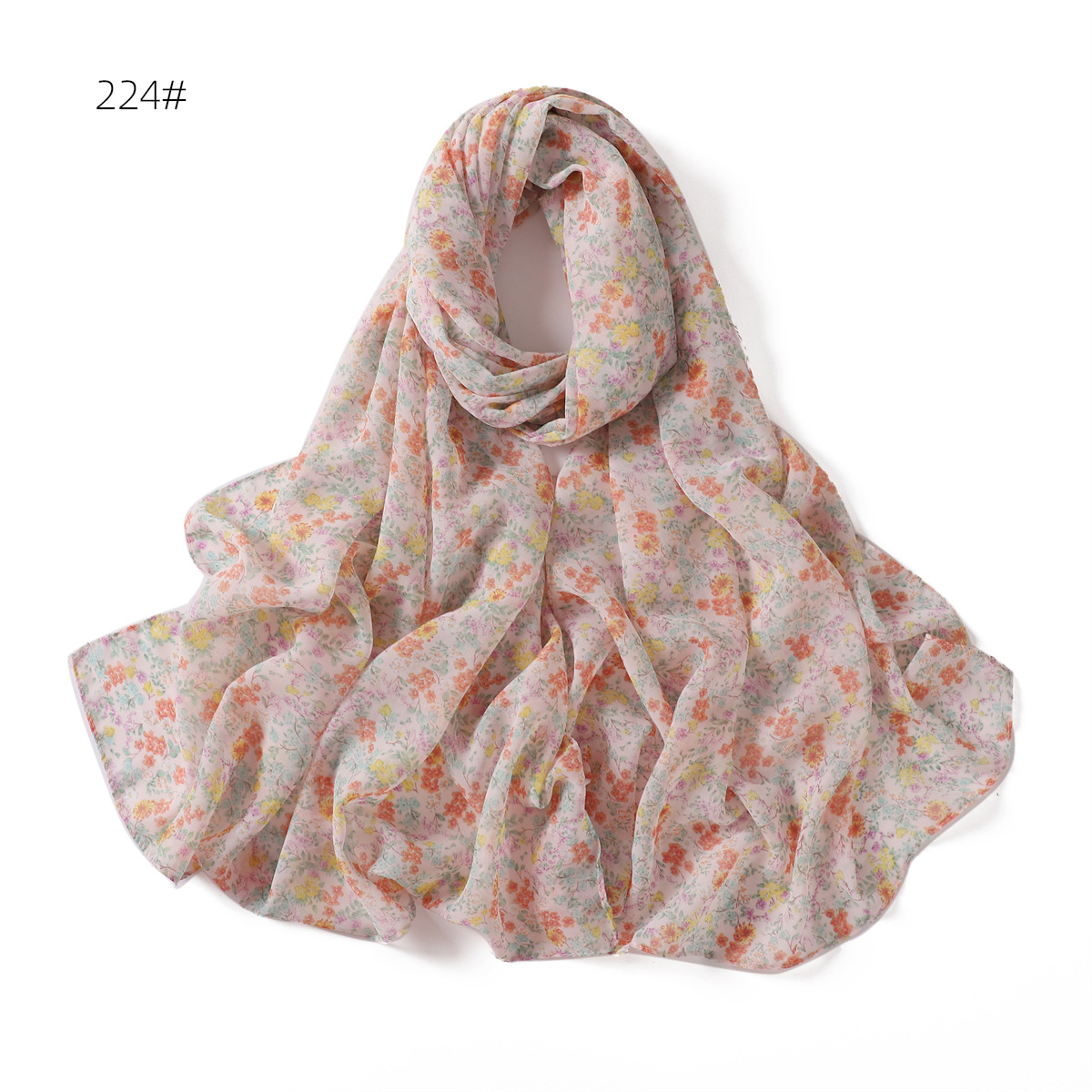 跨境新款春夏文艺碎花223-232号珍珠雪纺印花围巾女士长巾包头巾