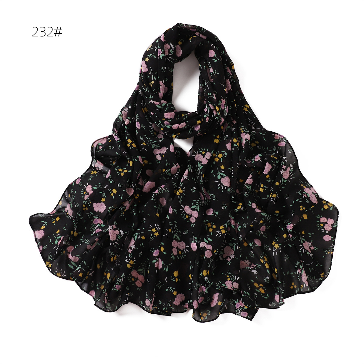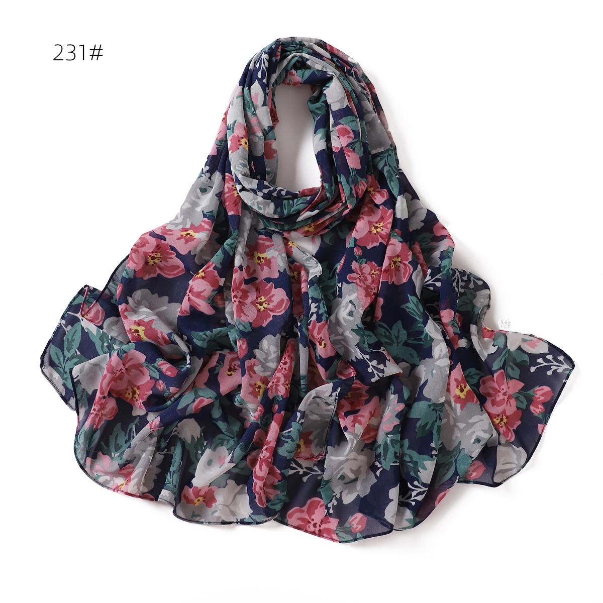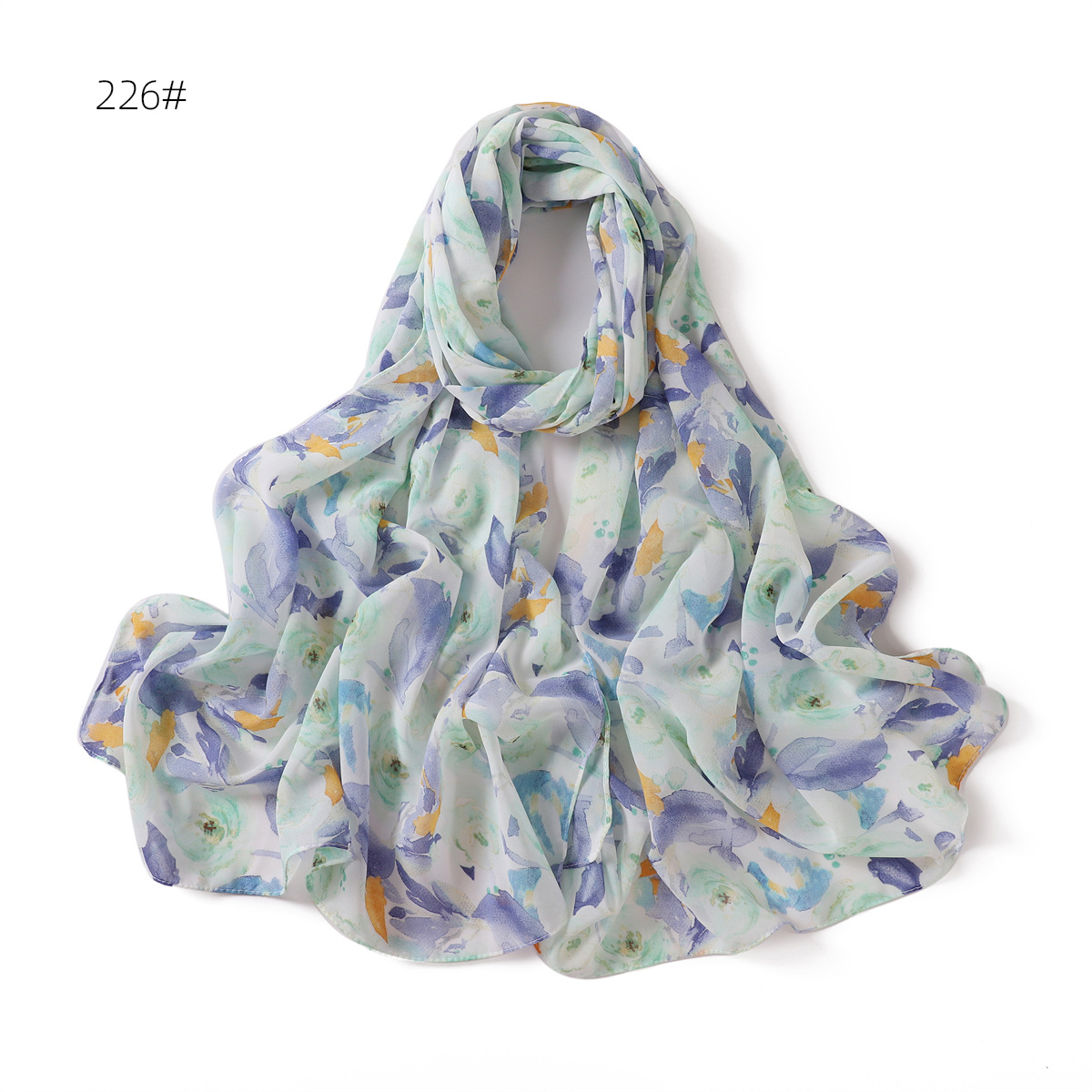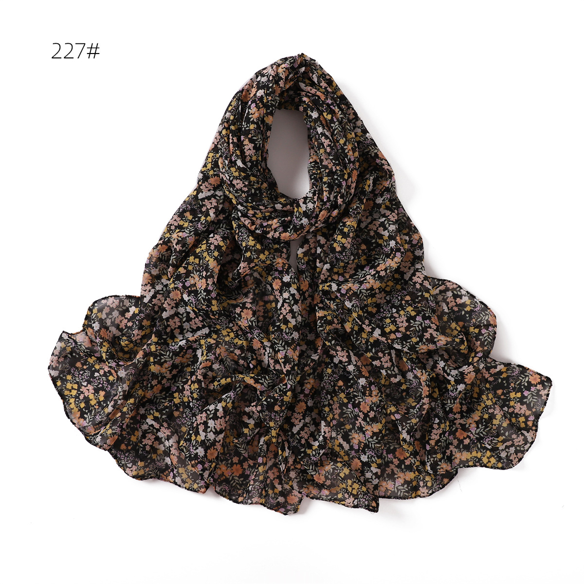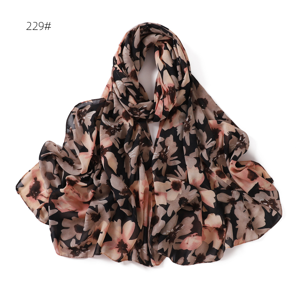跨境新款春夏文艺碎花223-232号珍珠雪纺印花围巾女士长巾包头巾