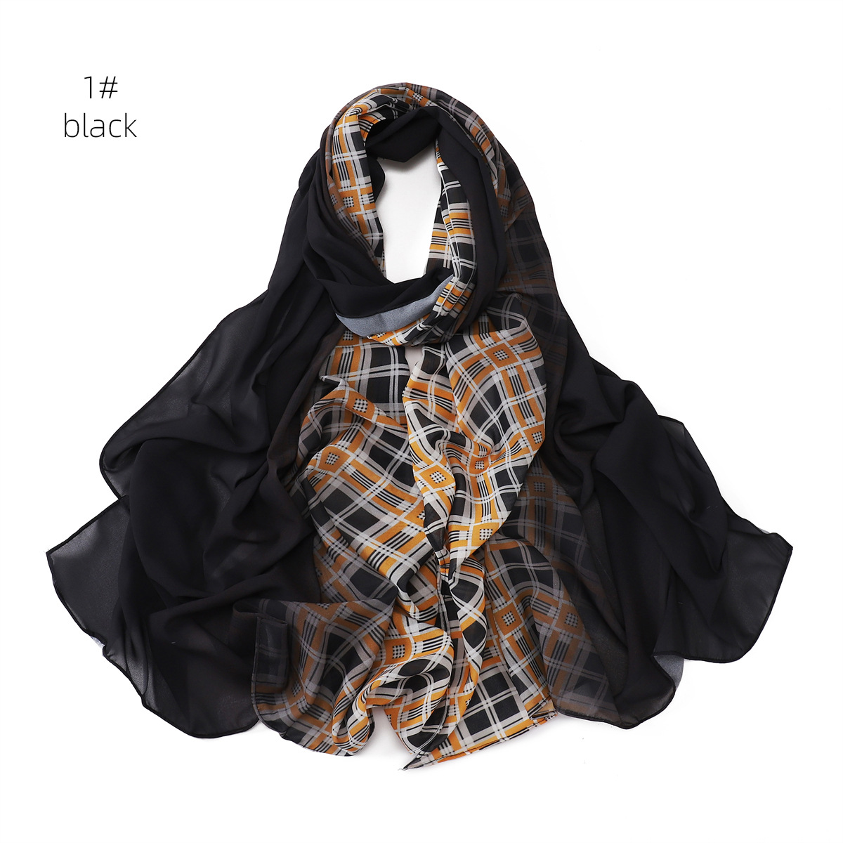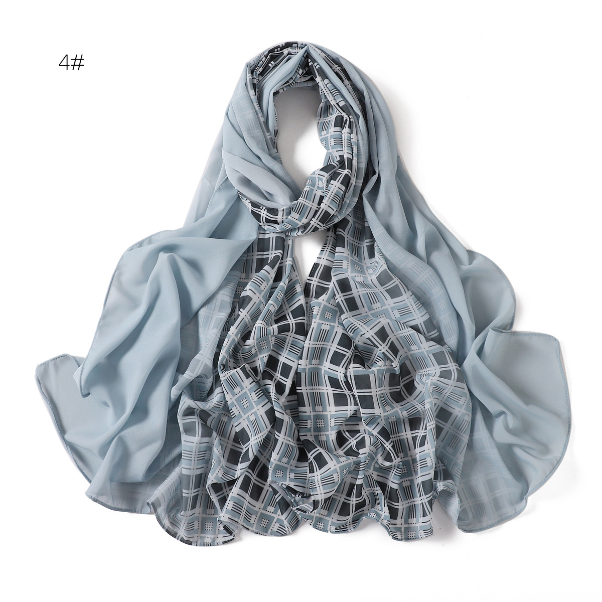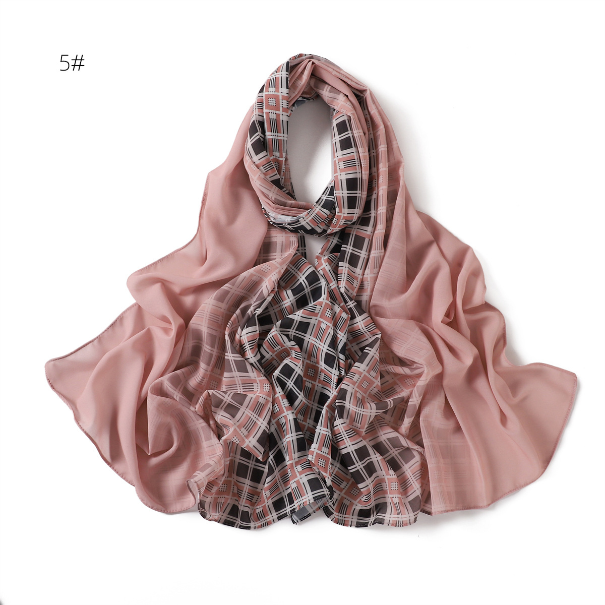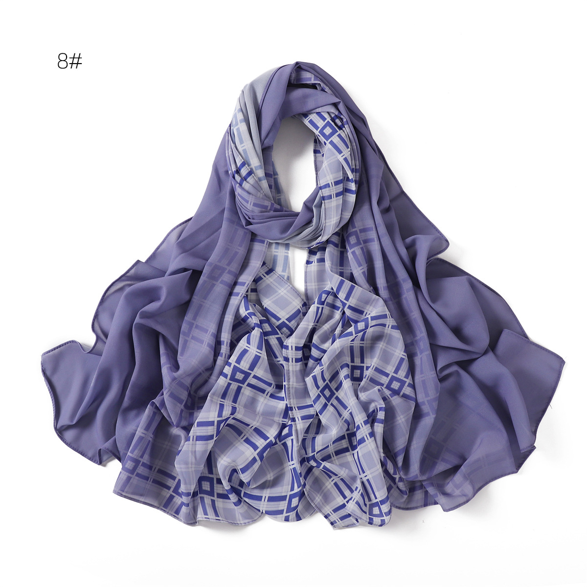 跨境春夏新款珍珠雪纺单色加格子手绘渐变纱巾防晒披肩长巾包头巾