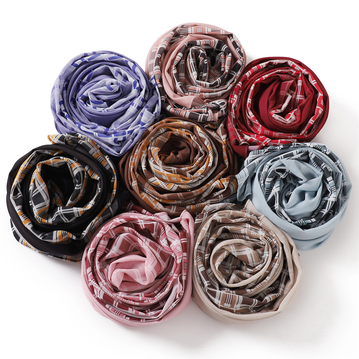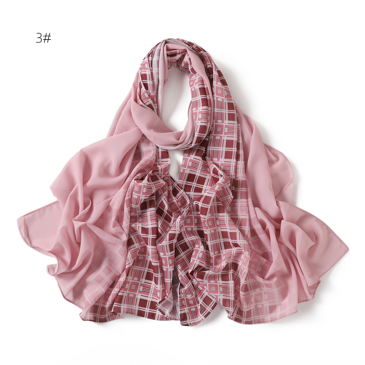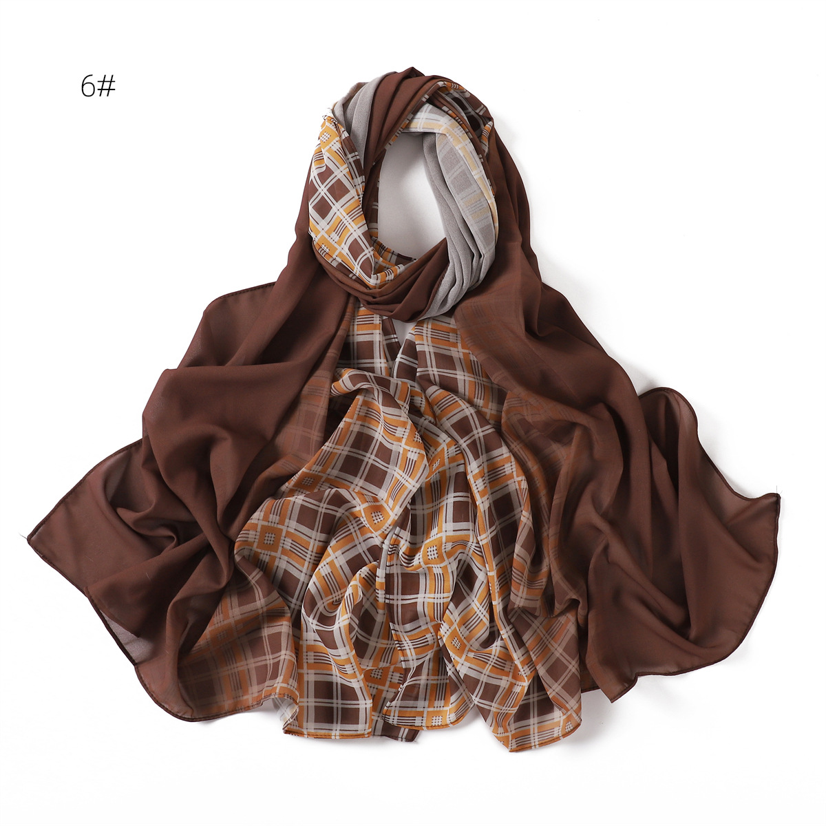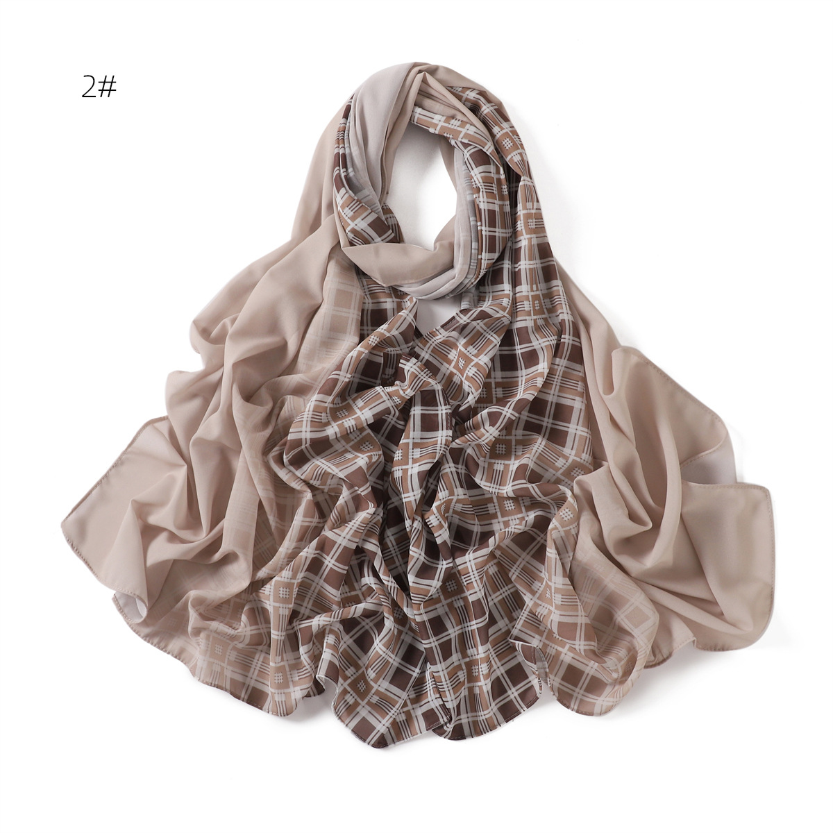 跨境春夏新款珍珠雪纺单色加格子手绘渐变纱巾防晒披肩长巾包头巾