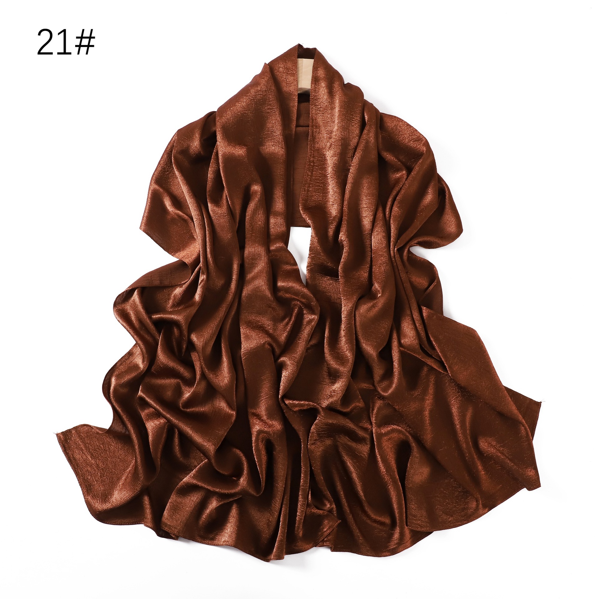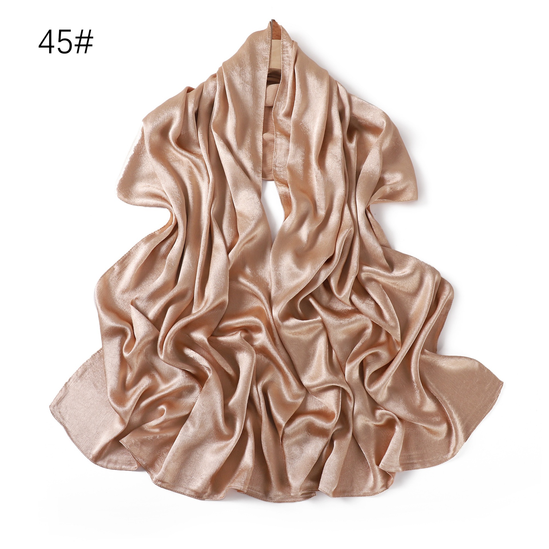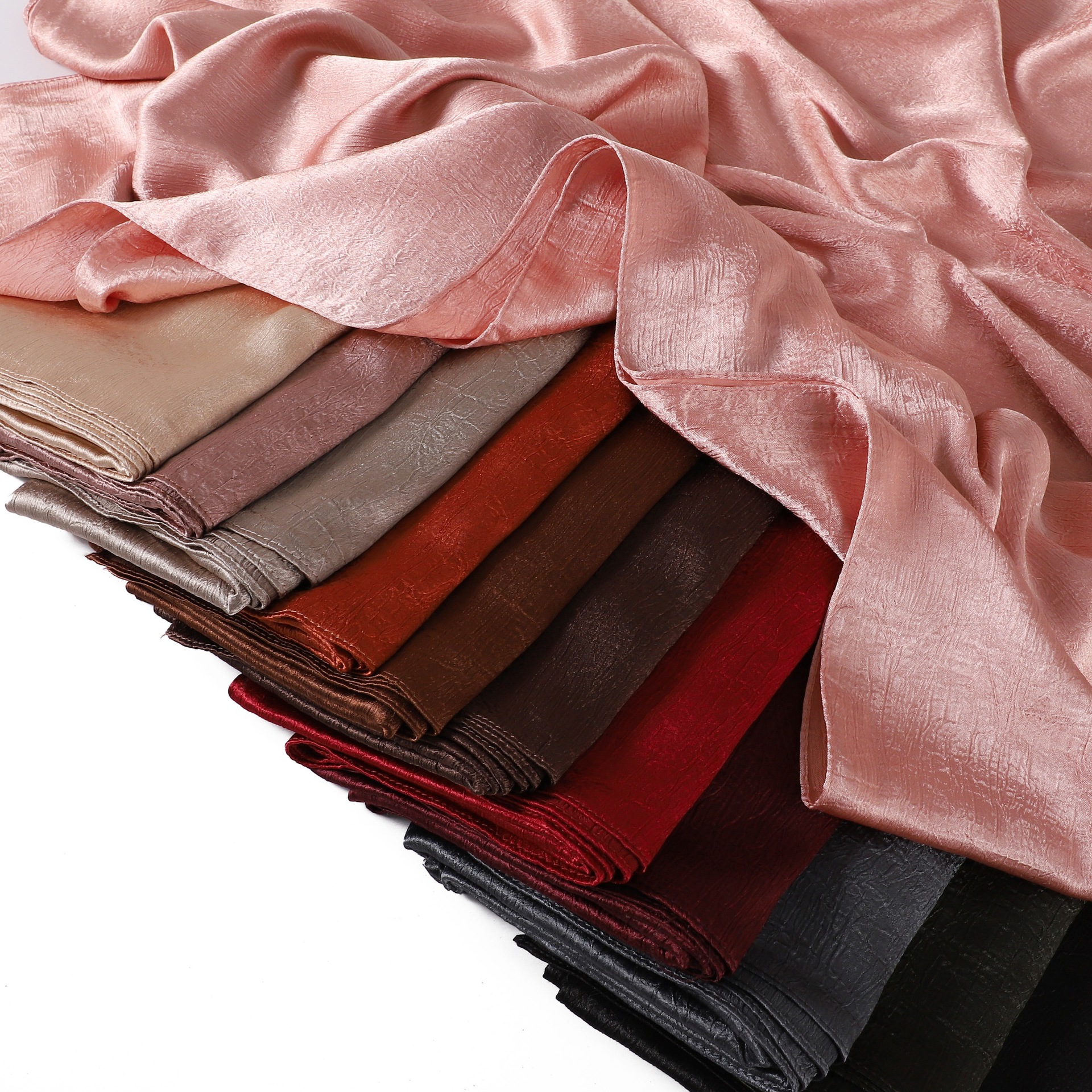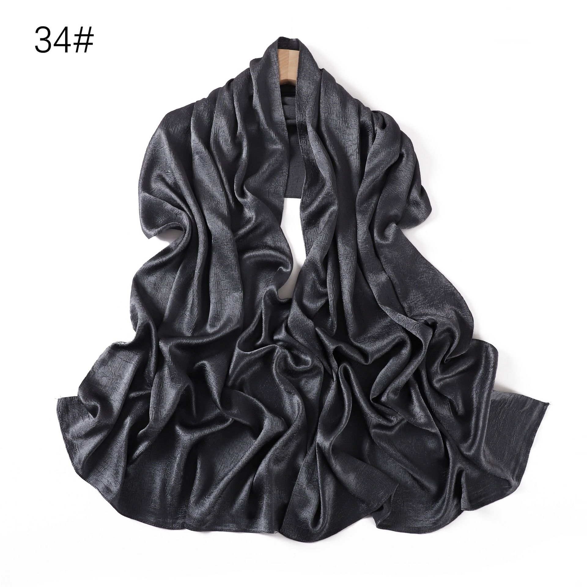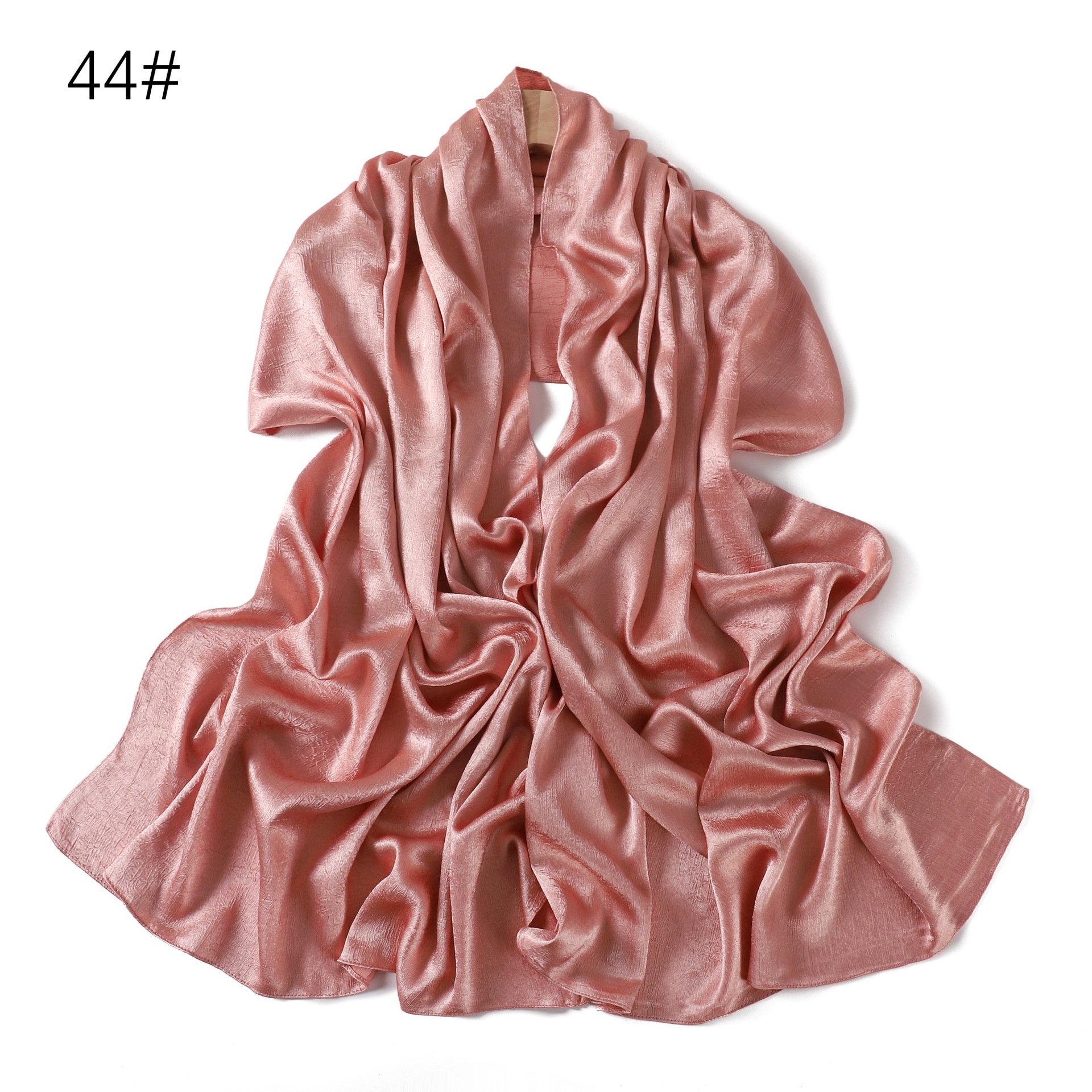 外贸纯色简约手抓花色丁涤纶长巾包头巾透气缎面仿真丝女围巾披肩