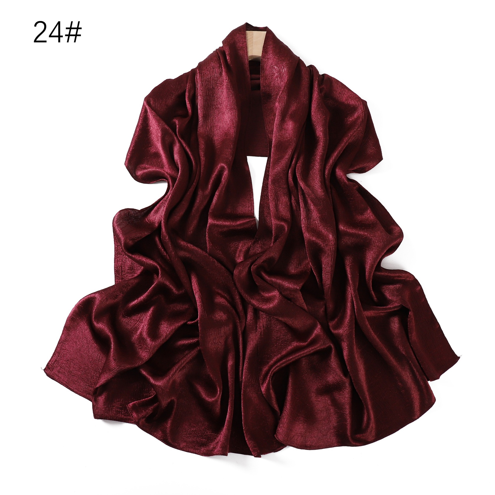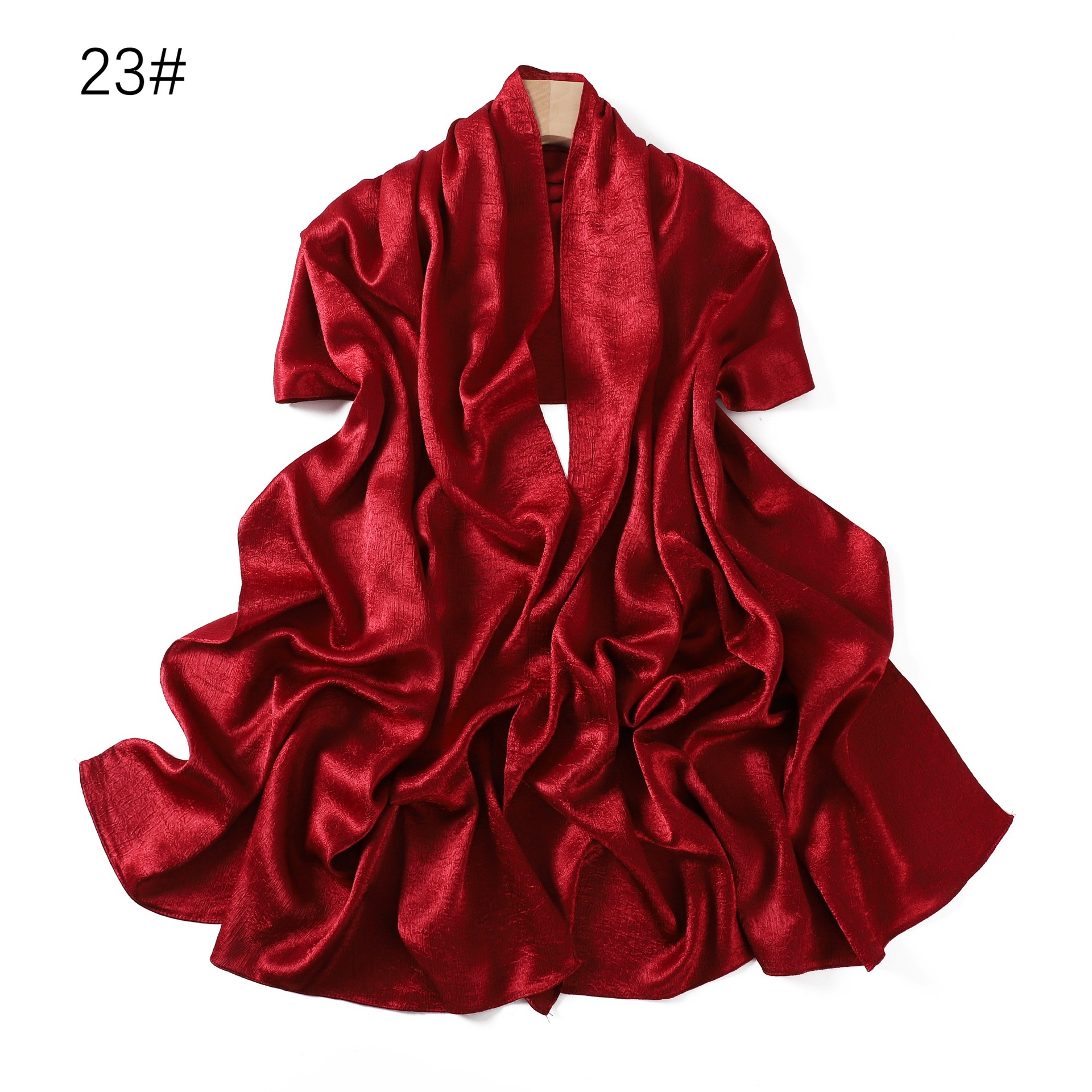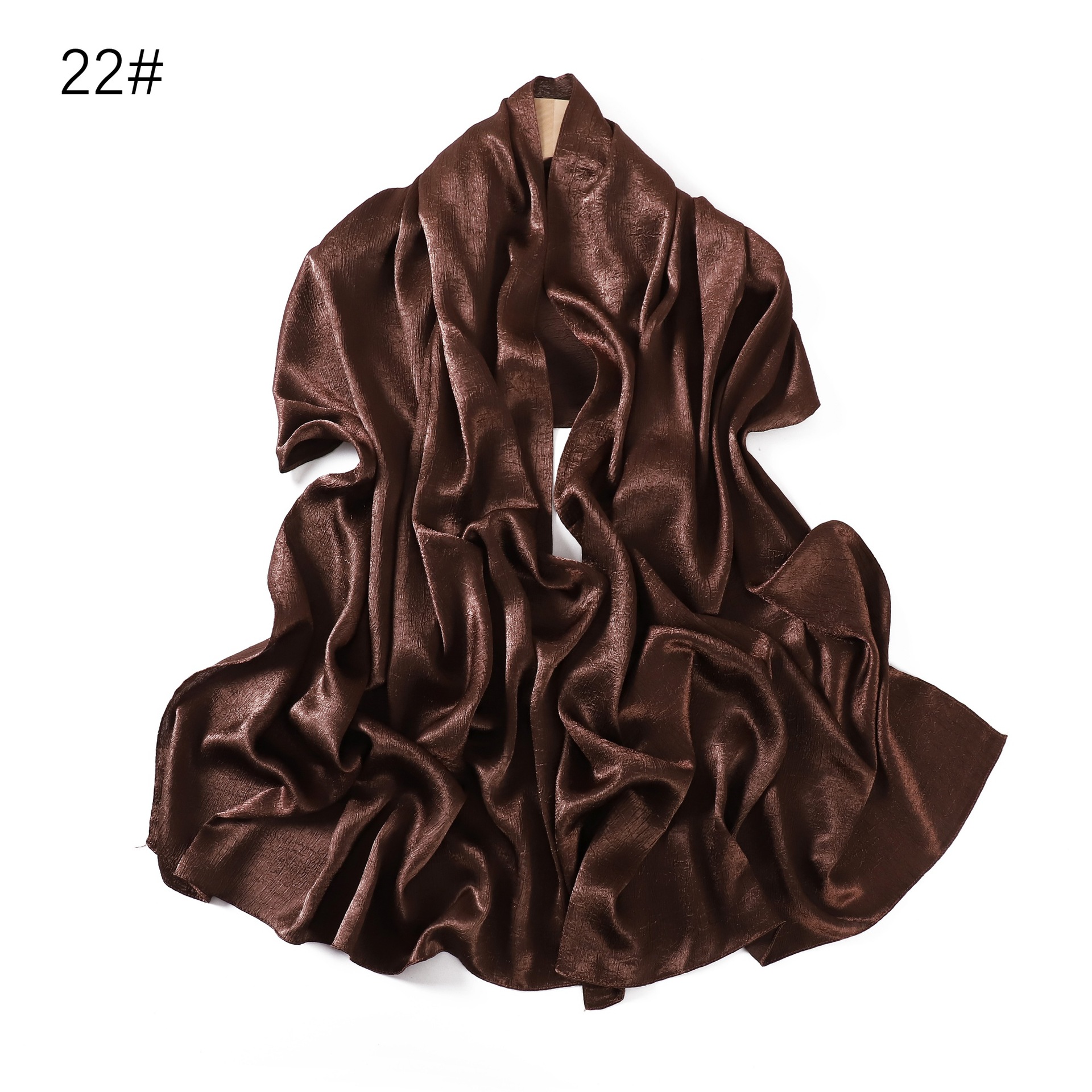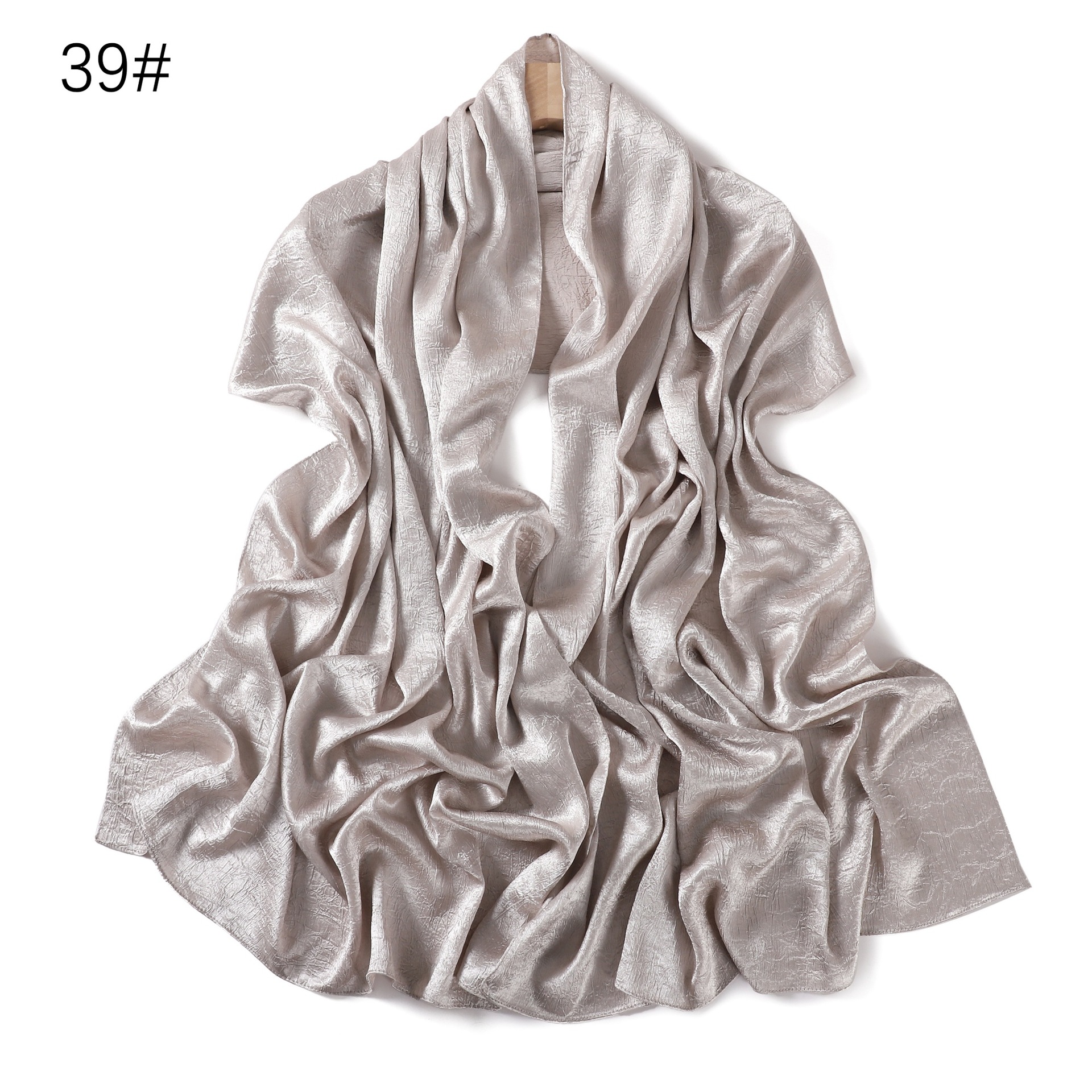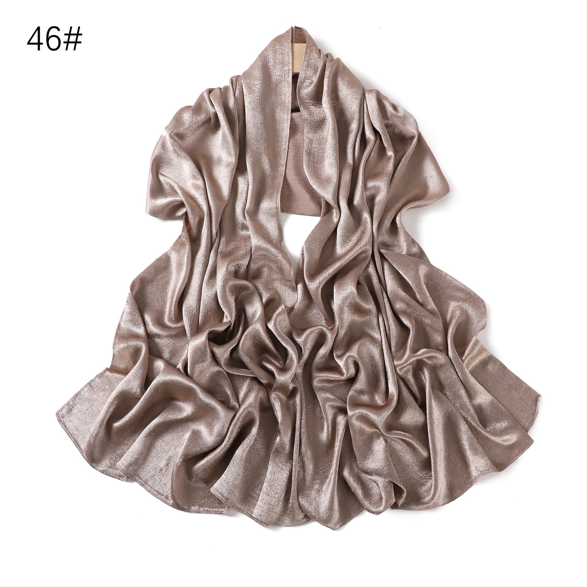 外贸纯色简约手抓花色丁涤纶长巾包头巾透气缎面仿真丝女围巾披肩
