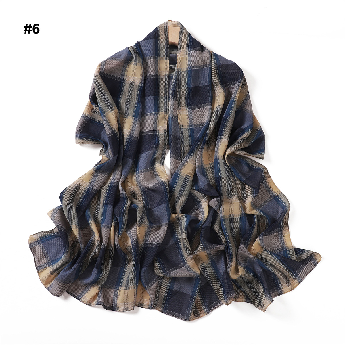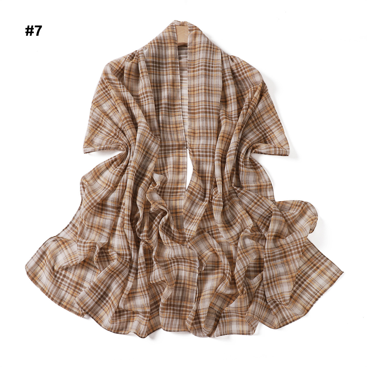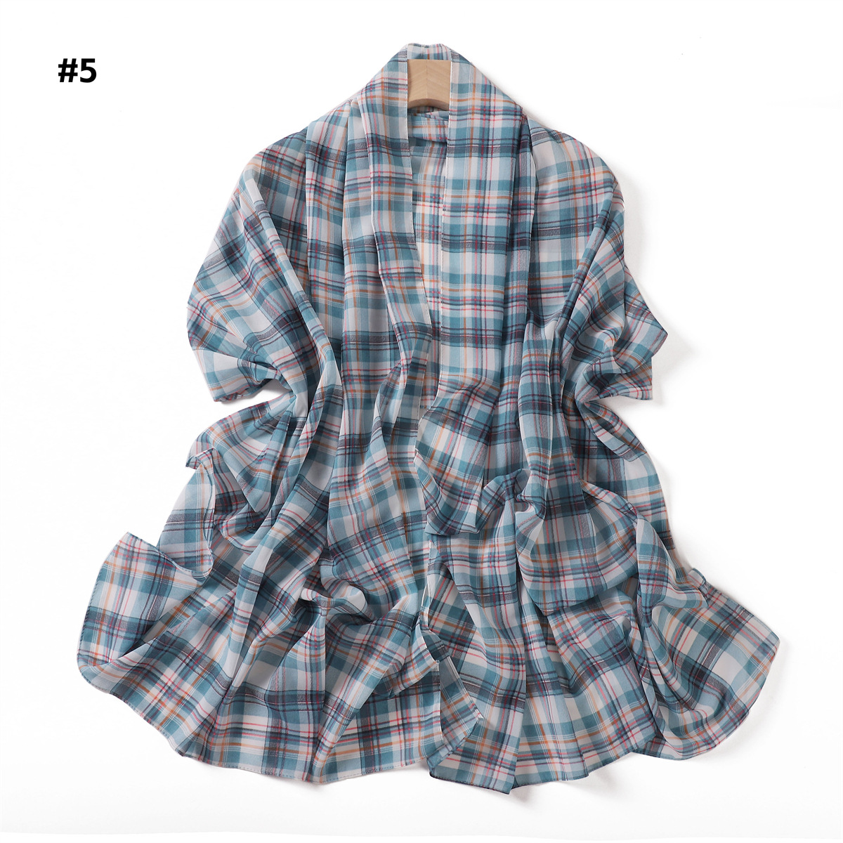 外贸精品格纹印花珍珠雪纺长巾时尚百搭优雅女围巾包头巾防晒披肩