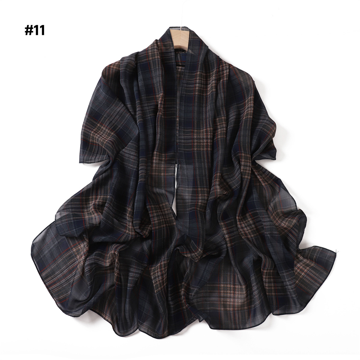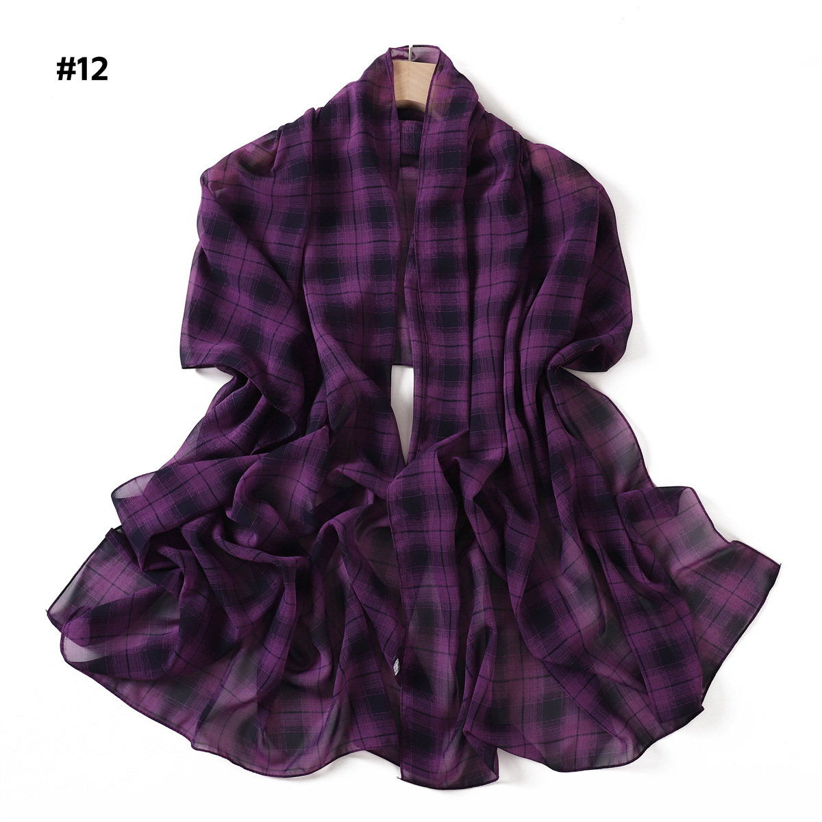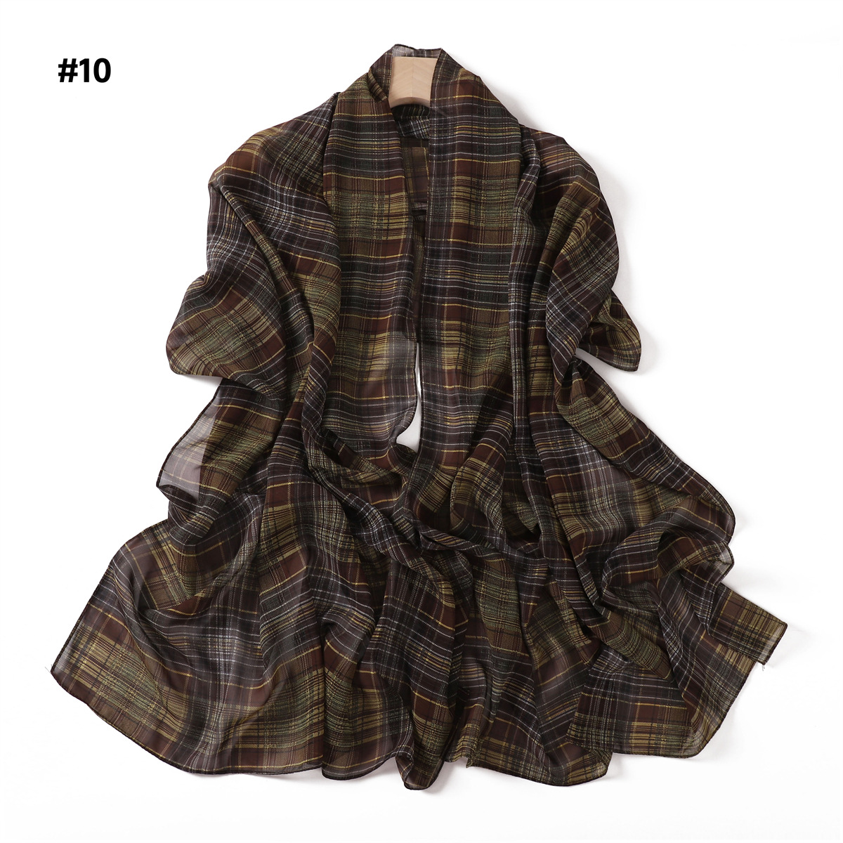 外贸精品格纹印花珍珠雪纺长巾时尚百搭优雅女围巾包头巾防晒披肩