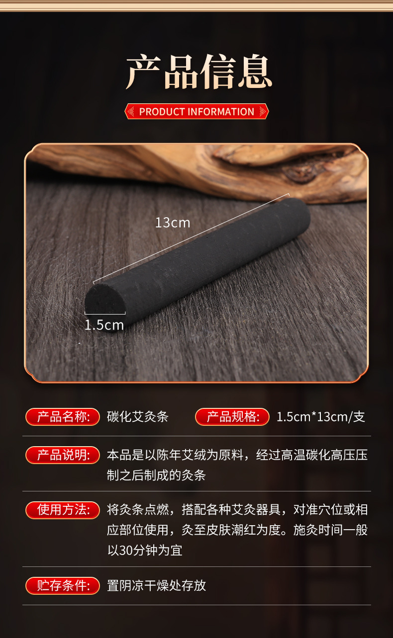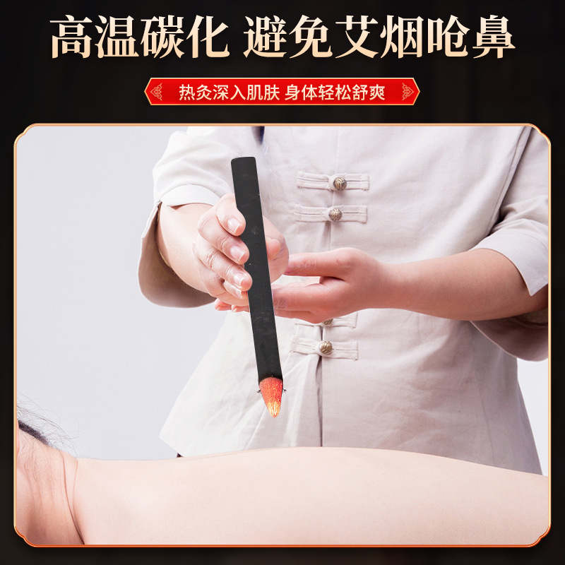 无烟艾条 黑色碳化艾灸柱温灸条热灸条真空包装熏蒸条艾绒条批发