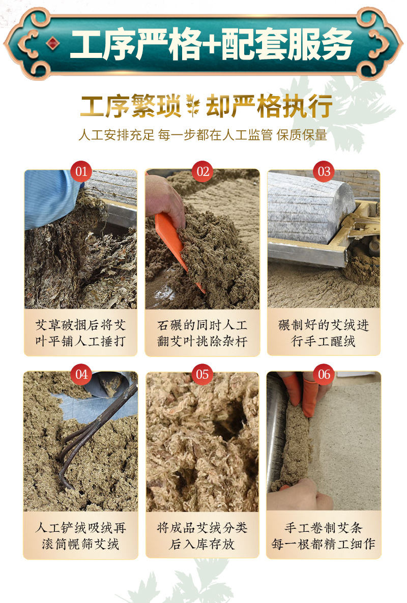 千碾绒艾条艾柱石磨石碾艾条三年陈手工艾灸柱艾绒老年人家用批发