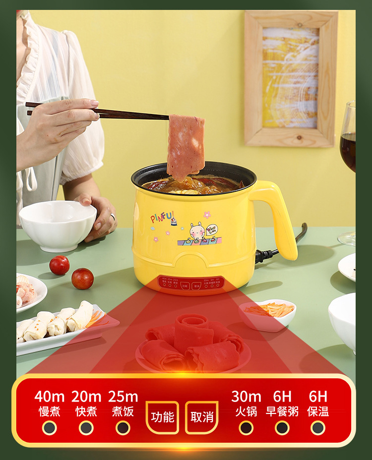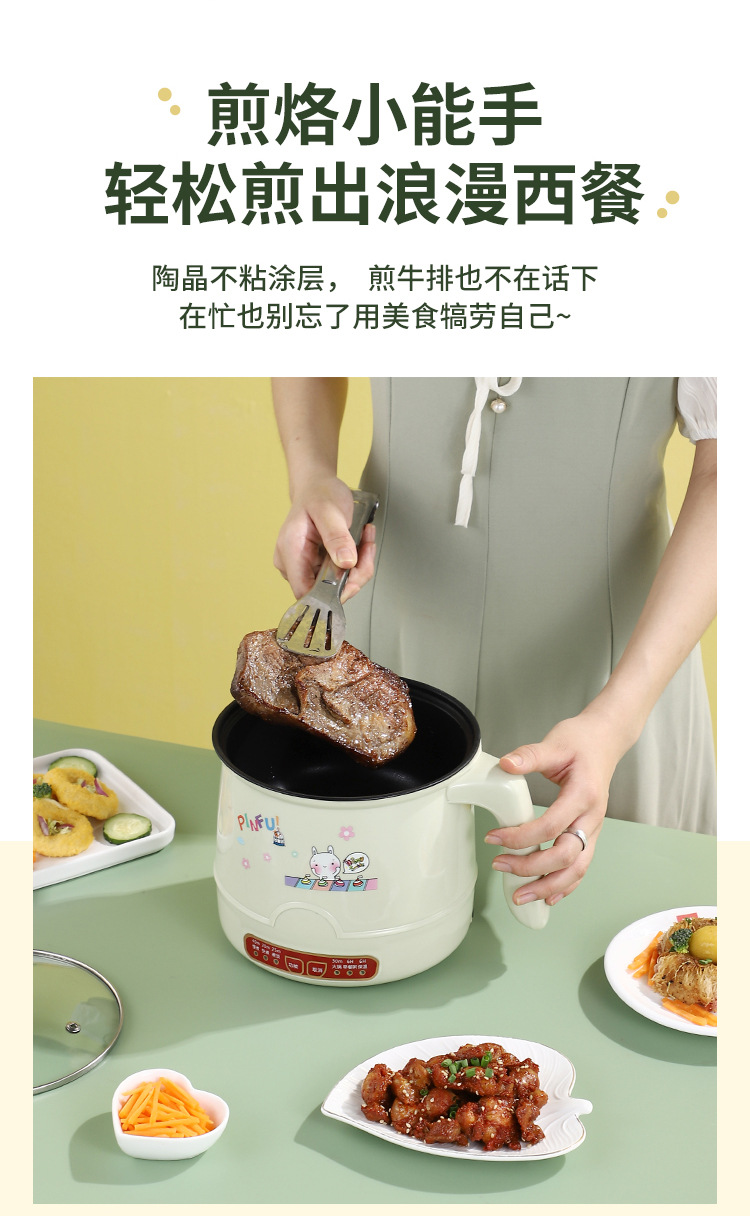 淘气猫多功能不粘智能学生宿舍家用电火锅迷你蒸锅单双人电煮锅