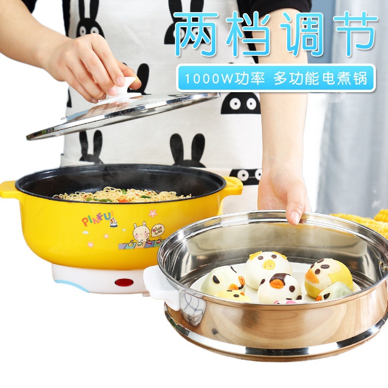 卡通双柄多功能不粘智能学生宿舍家用电火锅迷你蒸锅多人电煮锅(