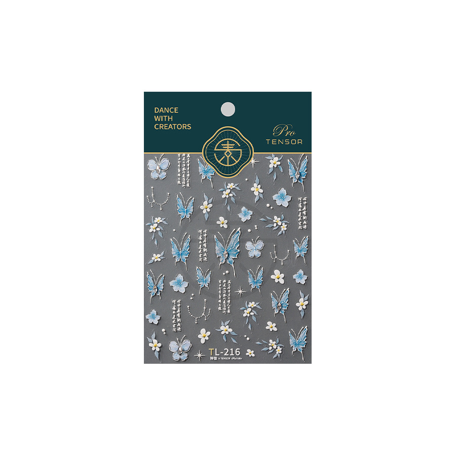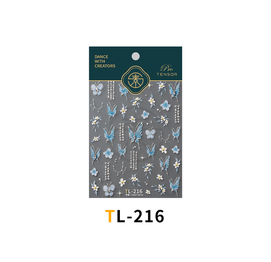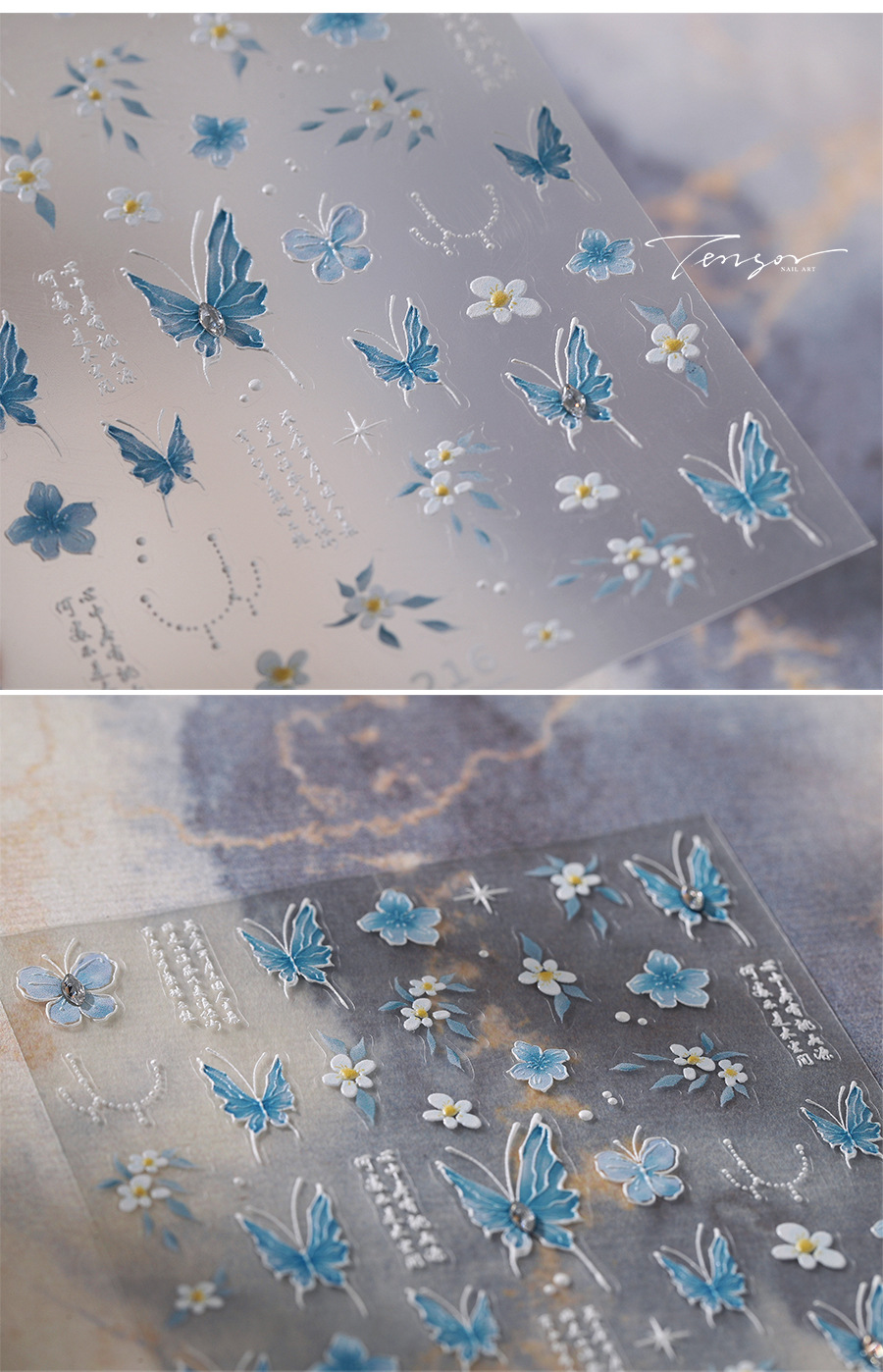 蝴蝶5D美甲贴纸ins浮雕背胶指甲贴玲珑点钻系列