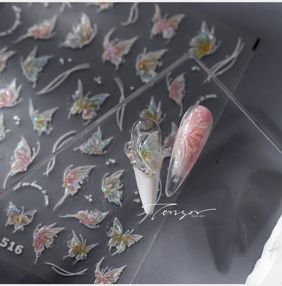 蝴蝶ins薄韧美甲贴浮雕背胶指甲贴指甲饰品M-515