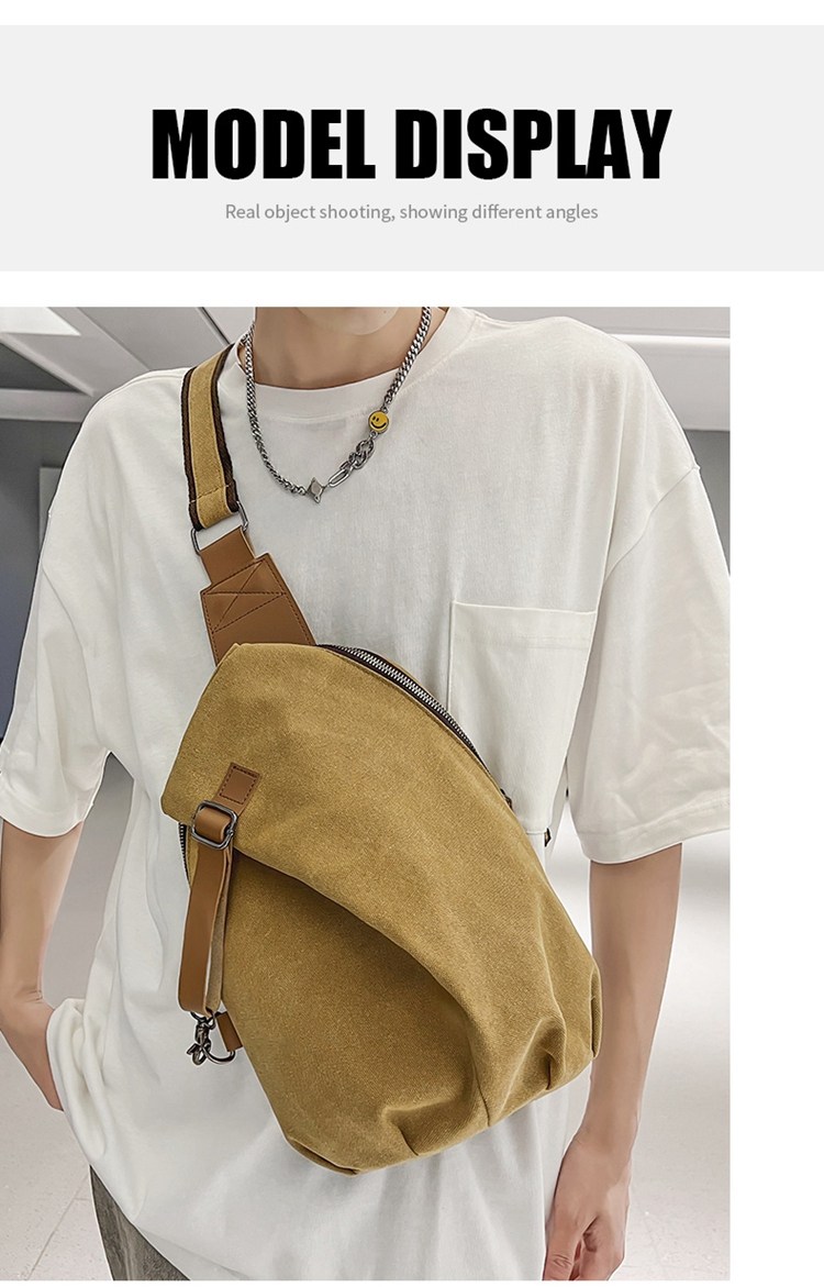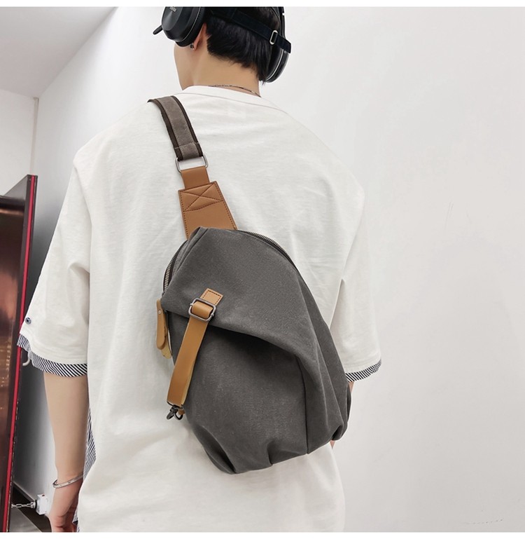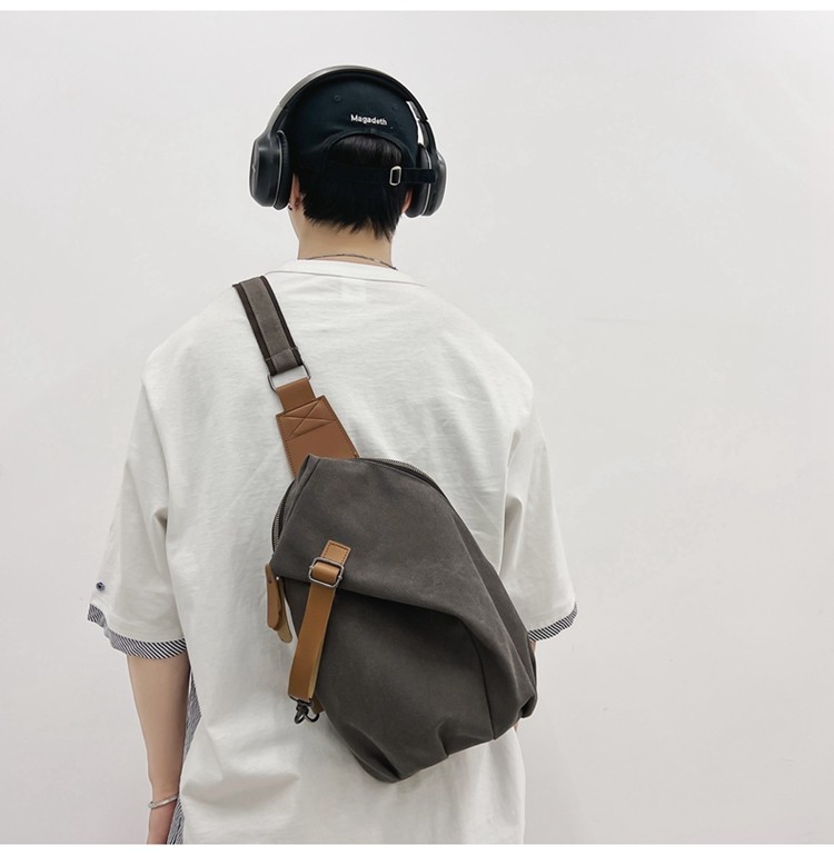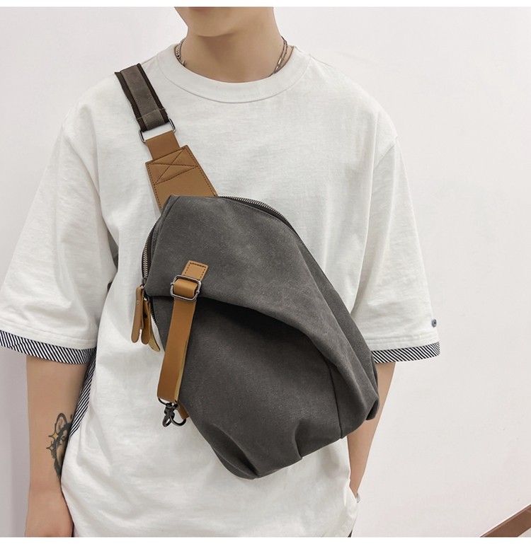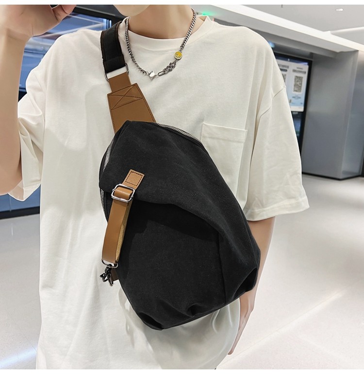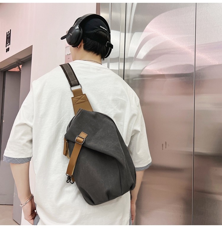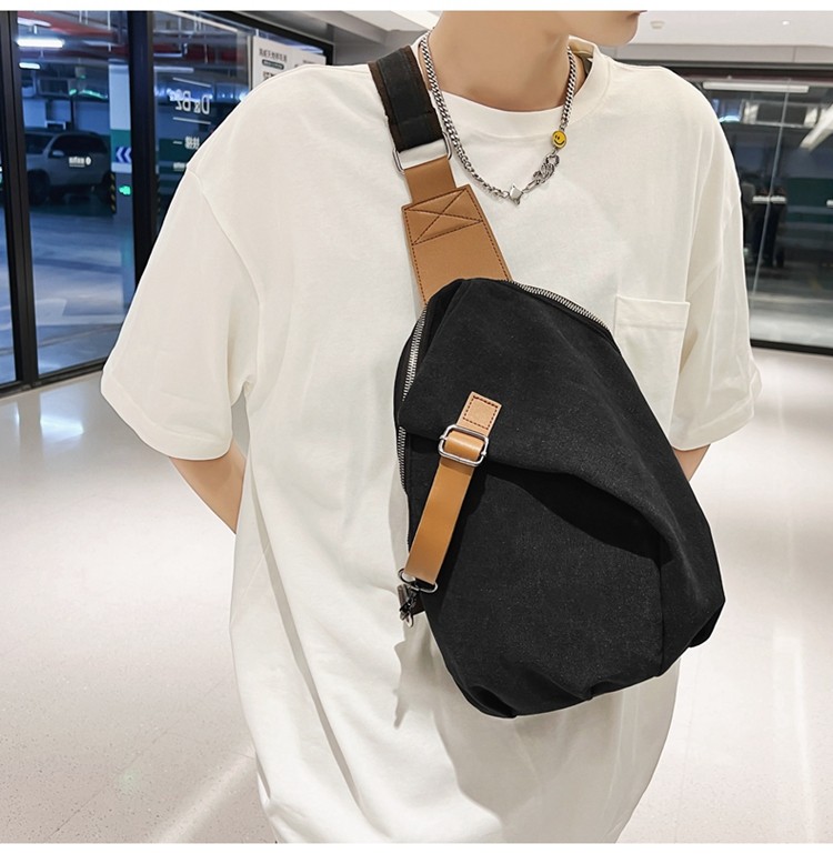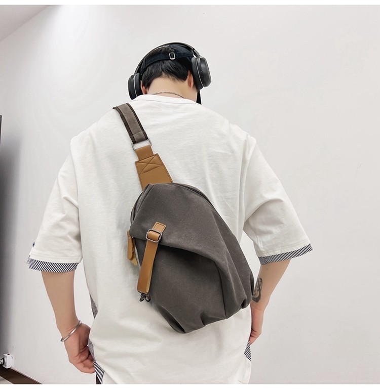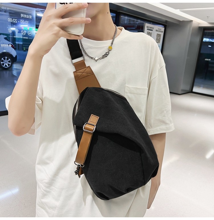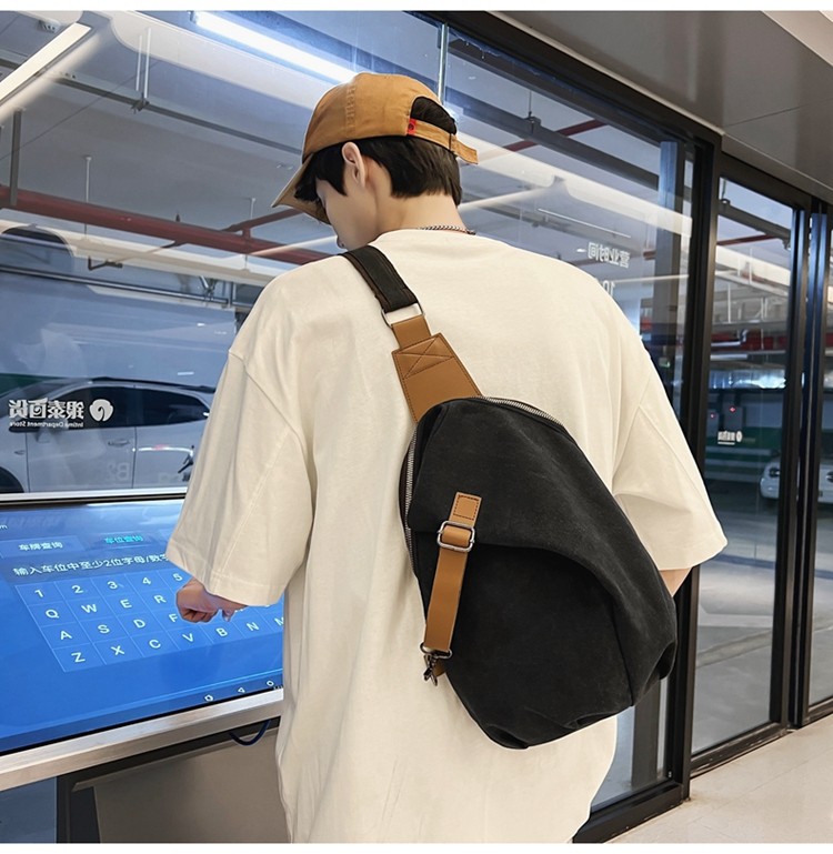 大容量胸包男运动斜挎包日系帆布包潮牌男挎包时尚百搭休闲男包包