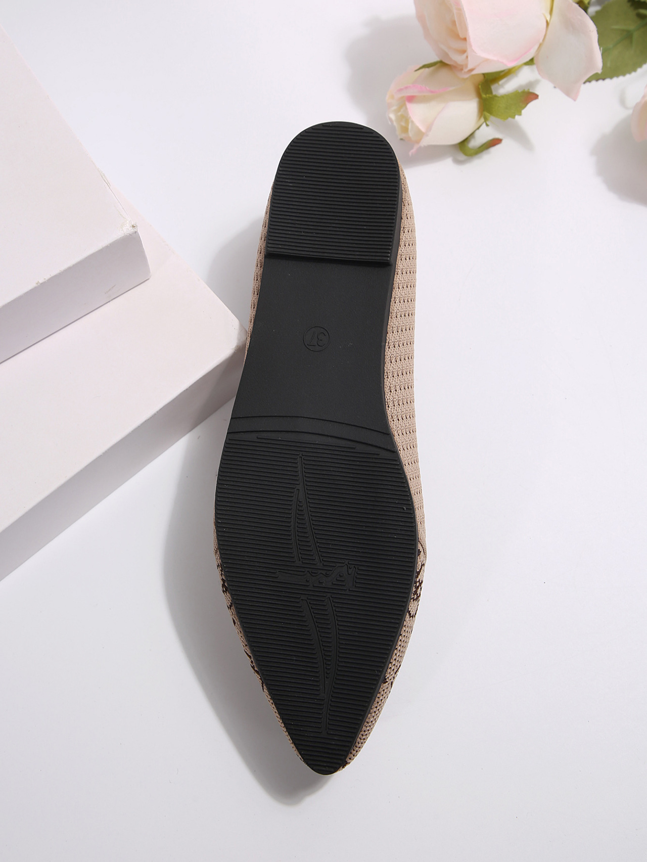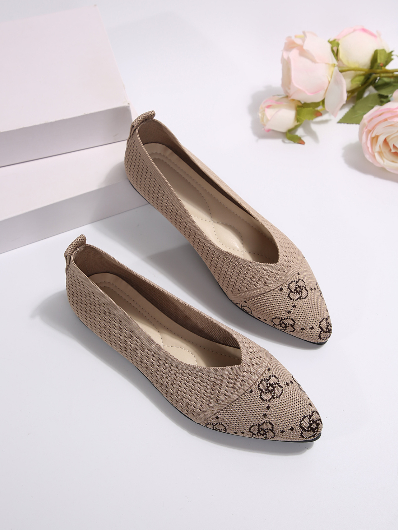 跨境外贸大码尖头平底单鞋女2024新款时尚飞织浅口一脚蹬女单鞋