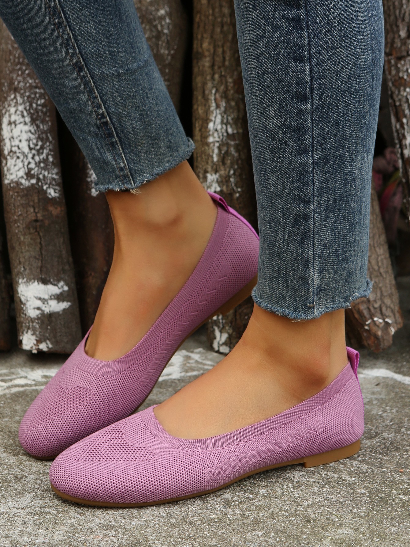 外贸大码飞织单鞋女2023年春秋季新款圆头低跟懒人休闲妈妈鞋批发