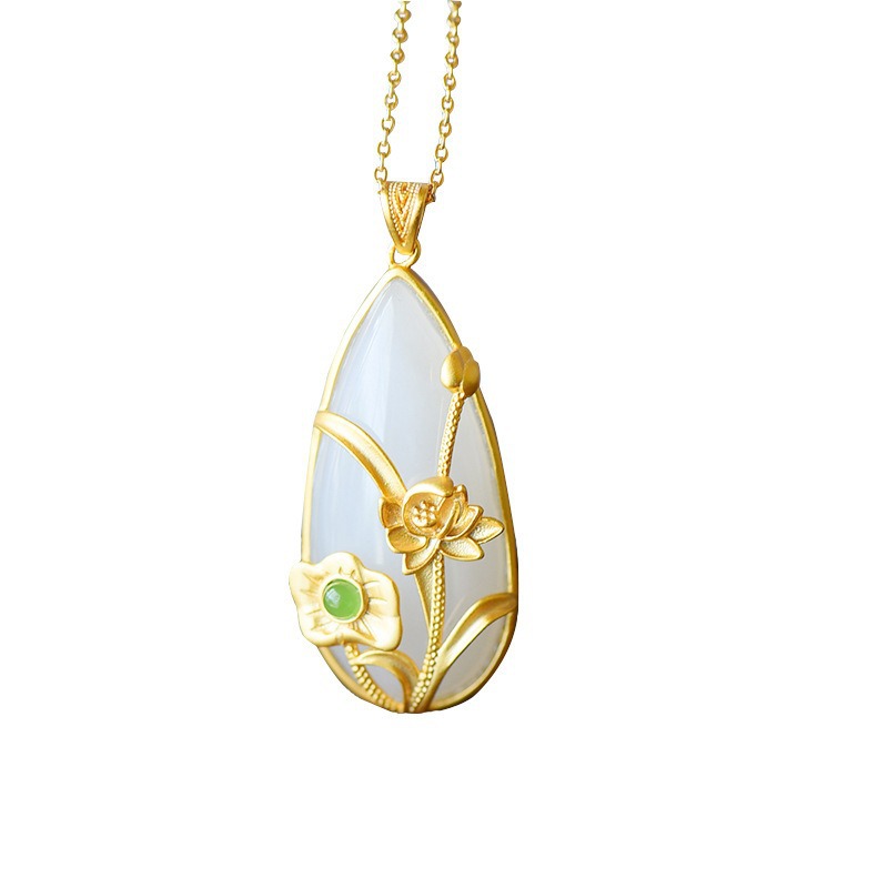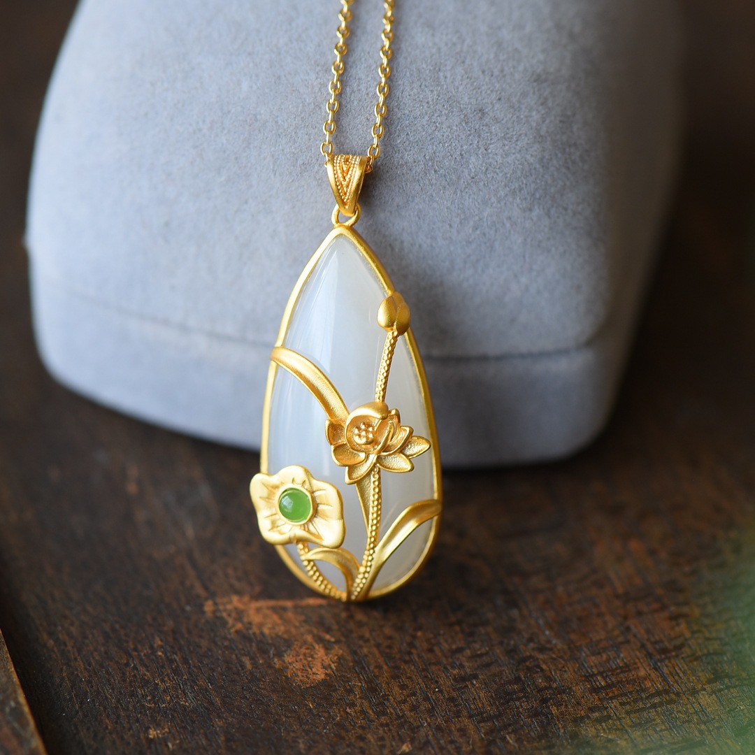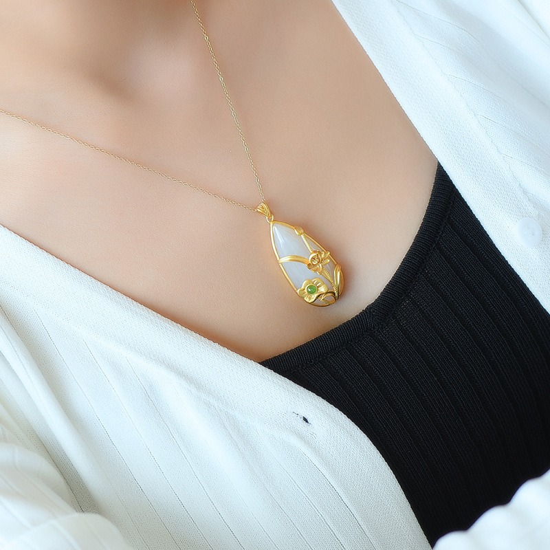 天然仿和田玉水滴无事牌吊坠美玉锆石复古时尚气质项链女士新中式