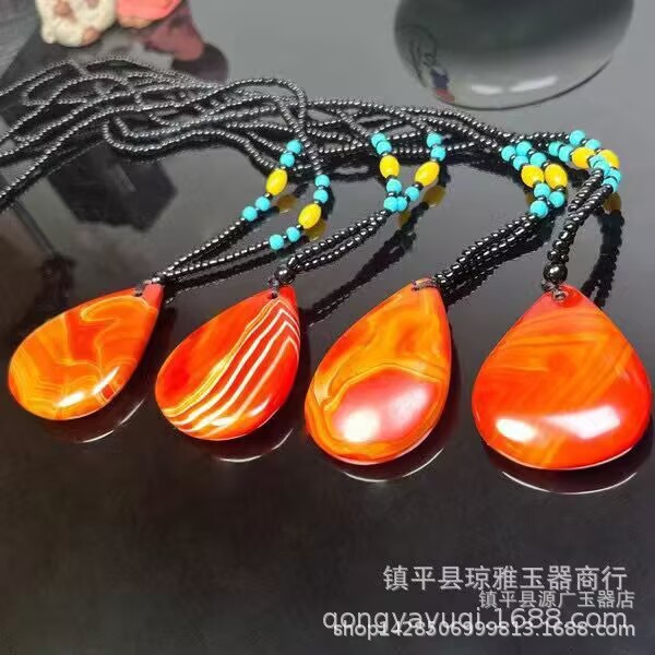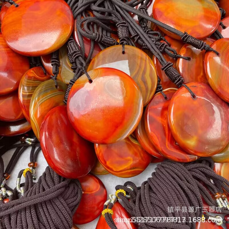 直播战国红玛瑙无事牌项链厂家批发玛瑙平安牌玉石挂件毛衣链礼品