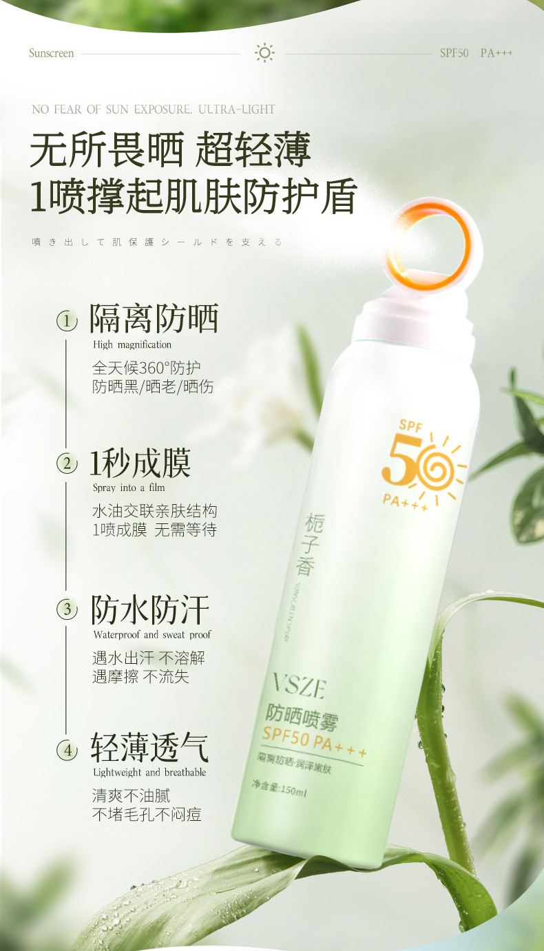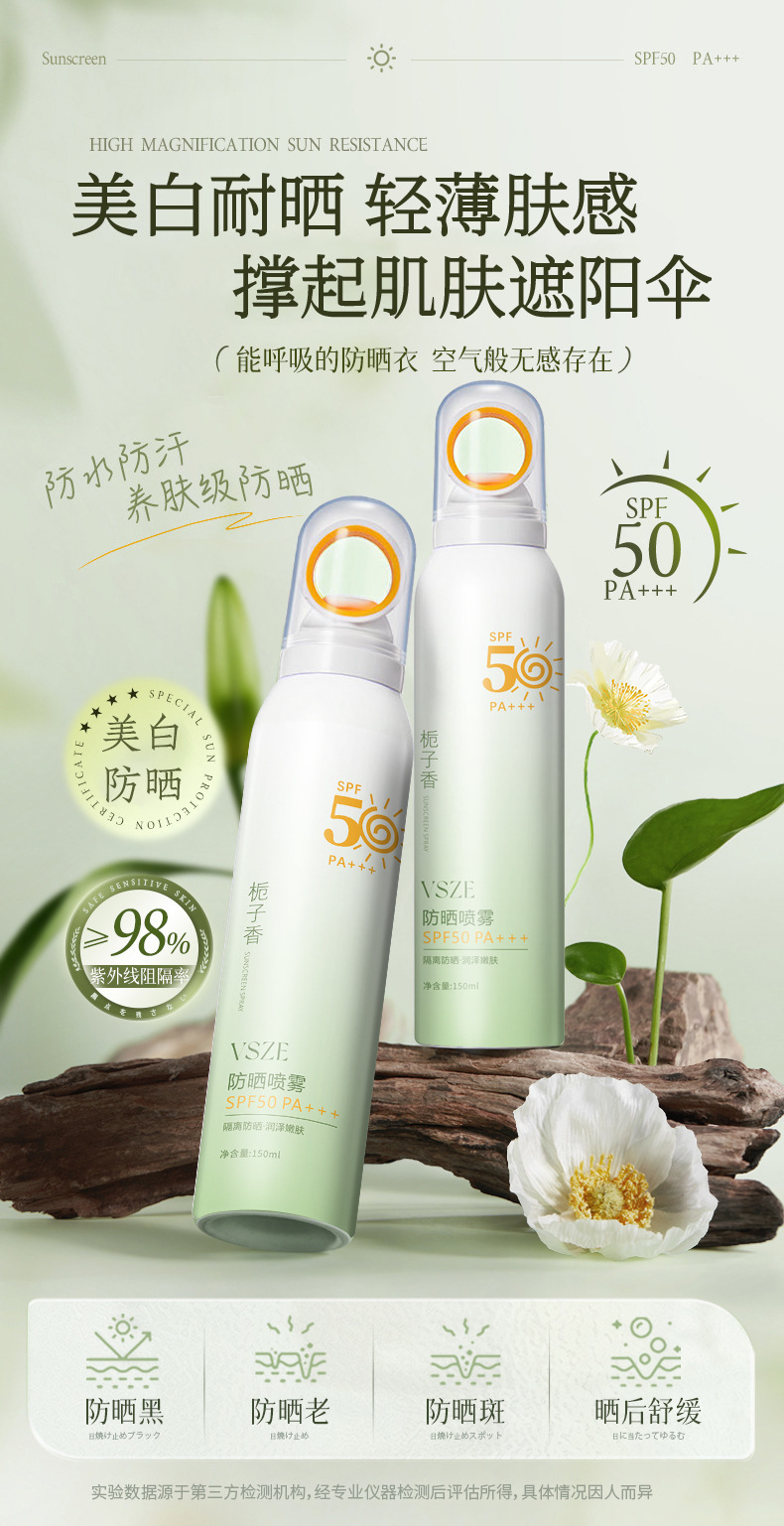 VSZE小光圈防晒喷雾隔离防水防汗防紫外线军训必备爆款工厂直发