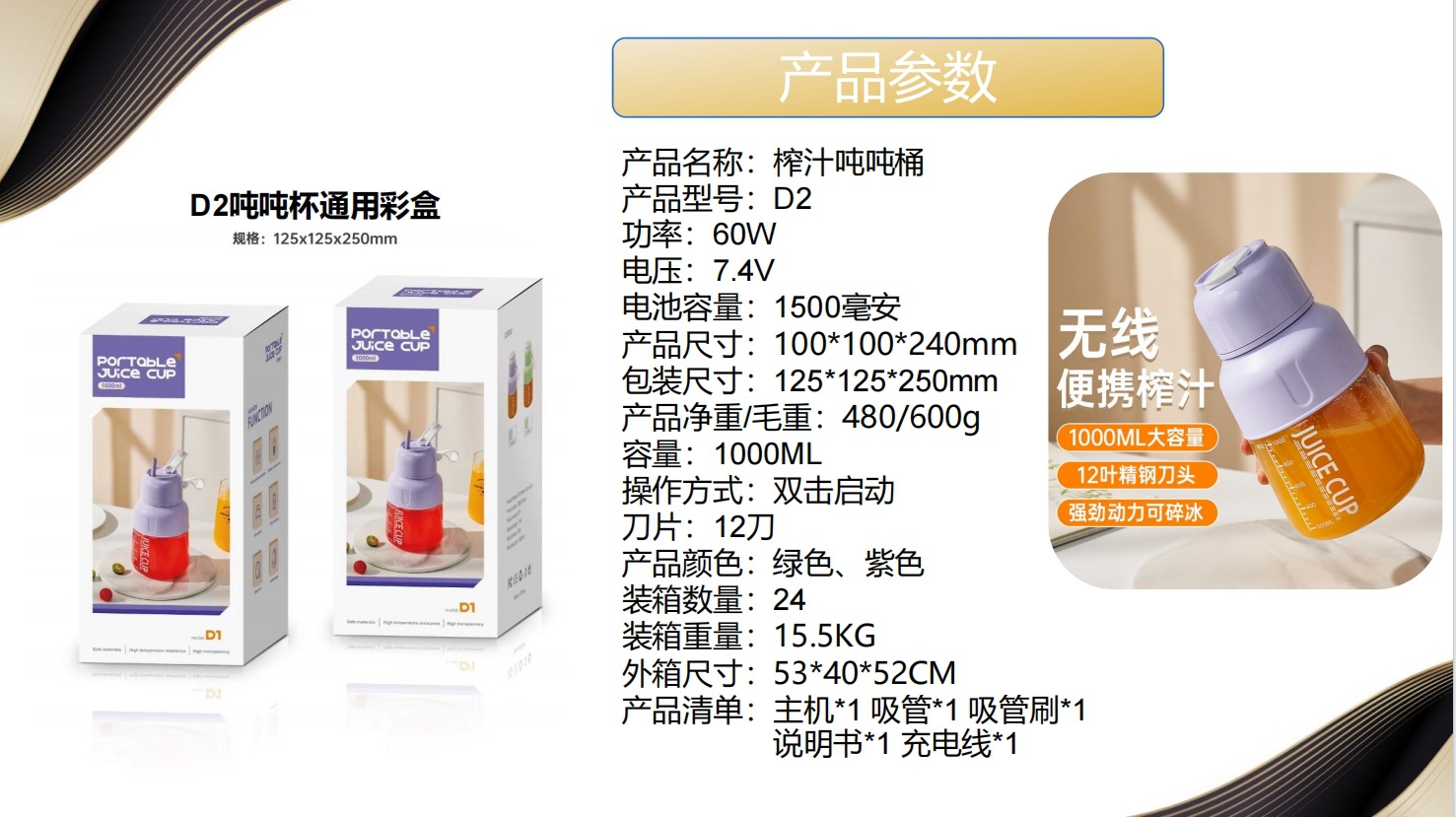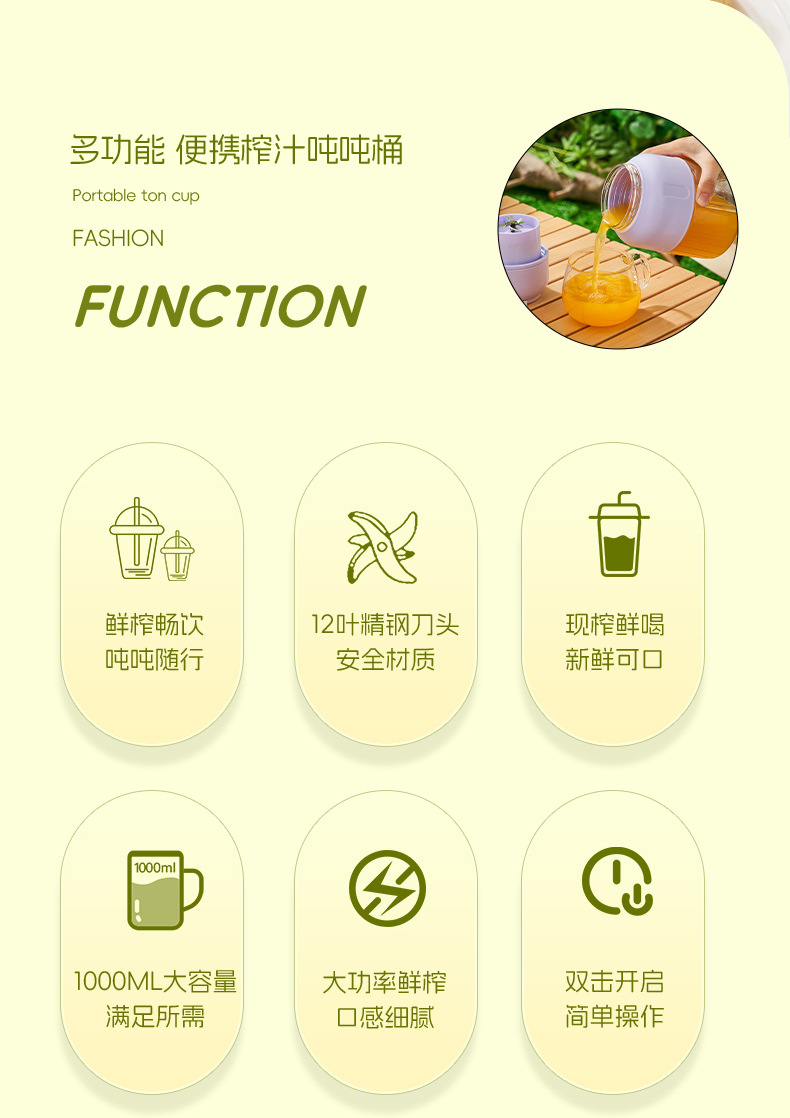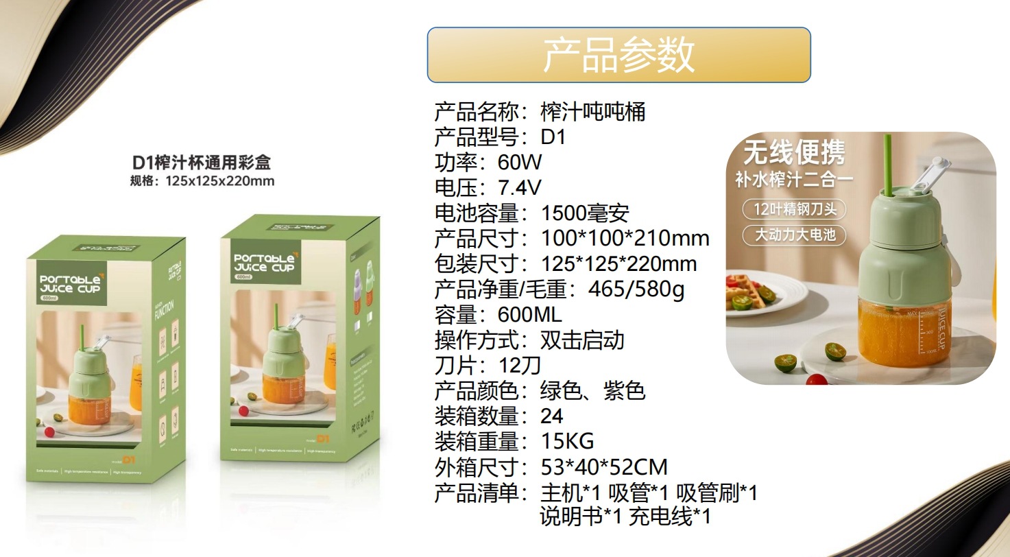 25年新款榨汁杯12叶精钢刀头户外便携可碎冰大容量榨汁机吨吨桶