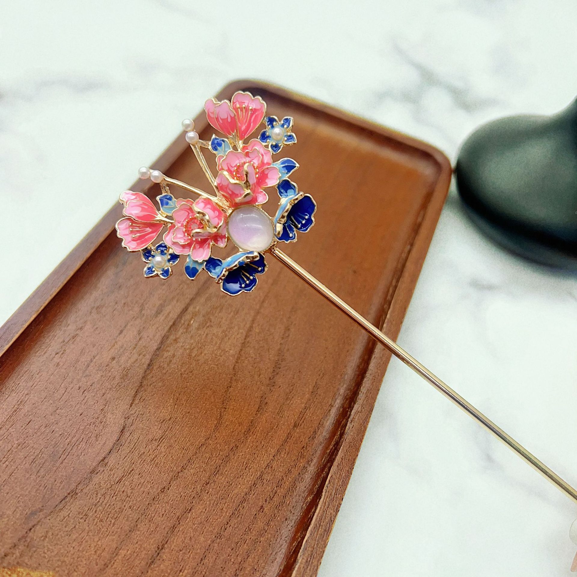 珍珠花朵发簪女簪子中式高级感古风饰品发钗汉服配饰流苏步摇批发