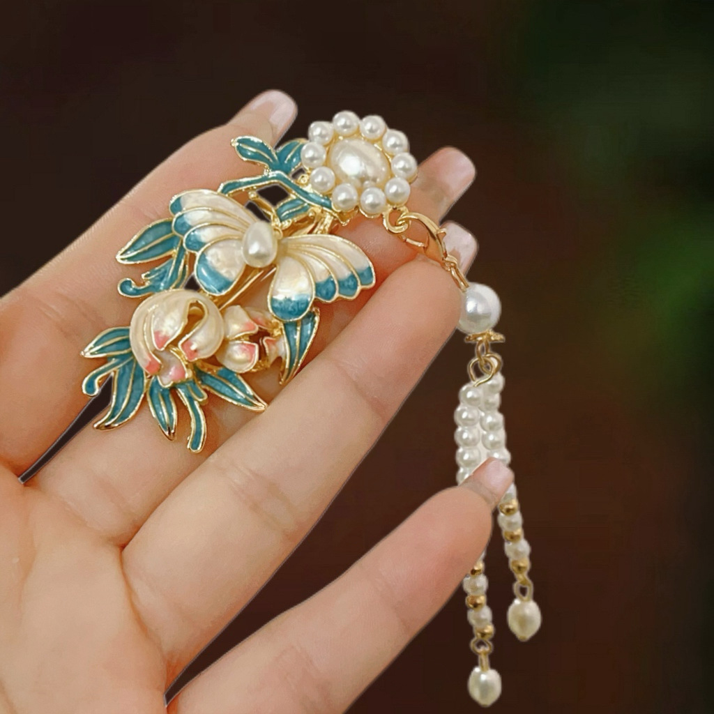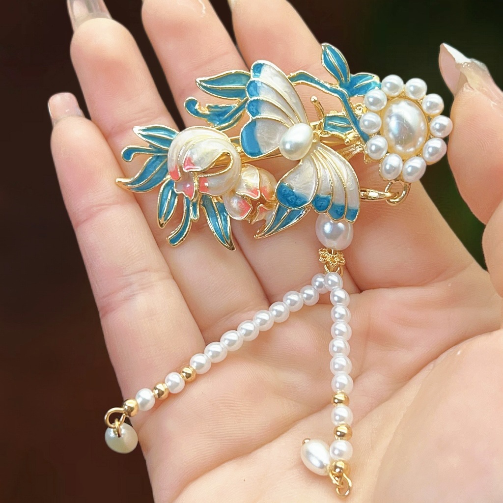 滴油花朵蝴蝶发夹发卡女早春配饰夹子古风发饰头饰鸭嘴夹义乌批货