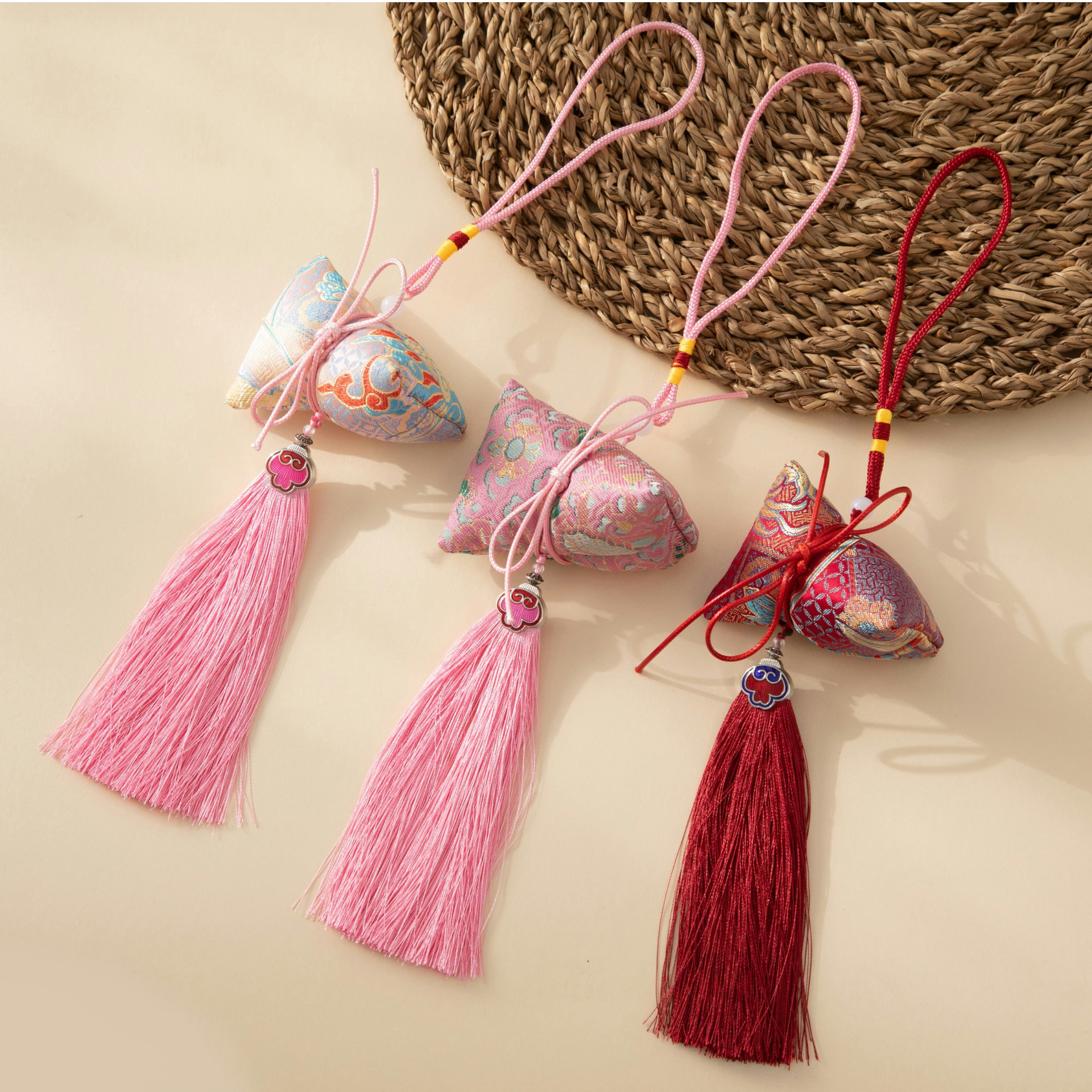 爆款出炉,中国风包腰棕香包挂件,100个起批3.5元一个,主打颜色,粉色,橙色,枣红色,蓝色,翠绿色,五个颜色为主,中草艾草混合成分,驱蚊防蚊虫……总长度34.5cm左右宽度8cm左右.中国风刺绣花纹绸缎面料+精品景泰蓝流苏搭配款式高端大气上档次