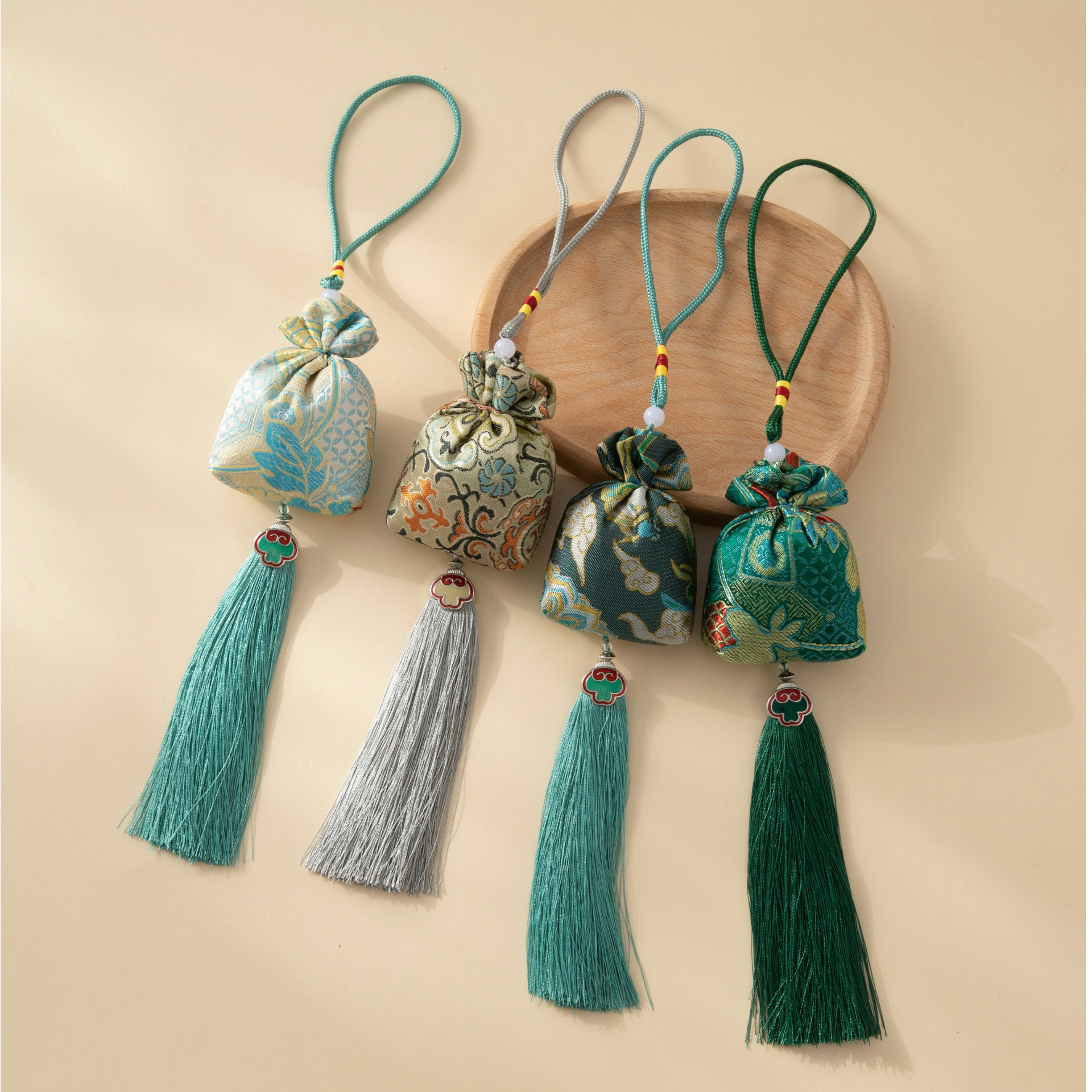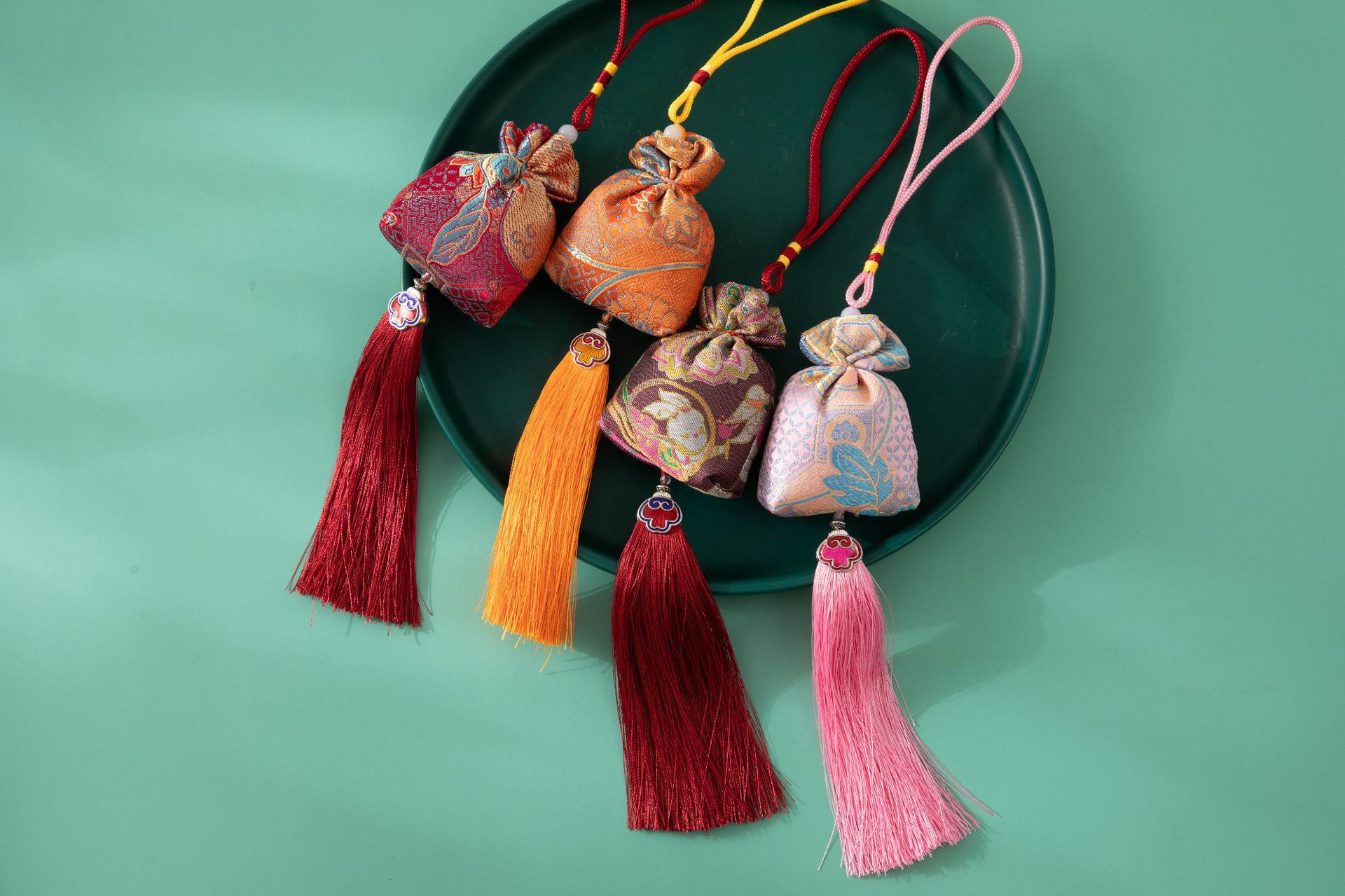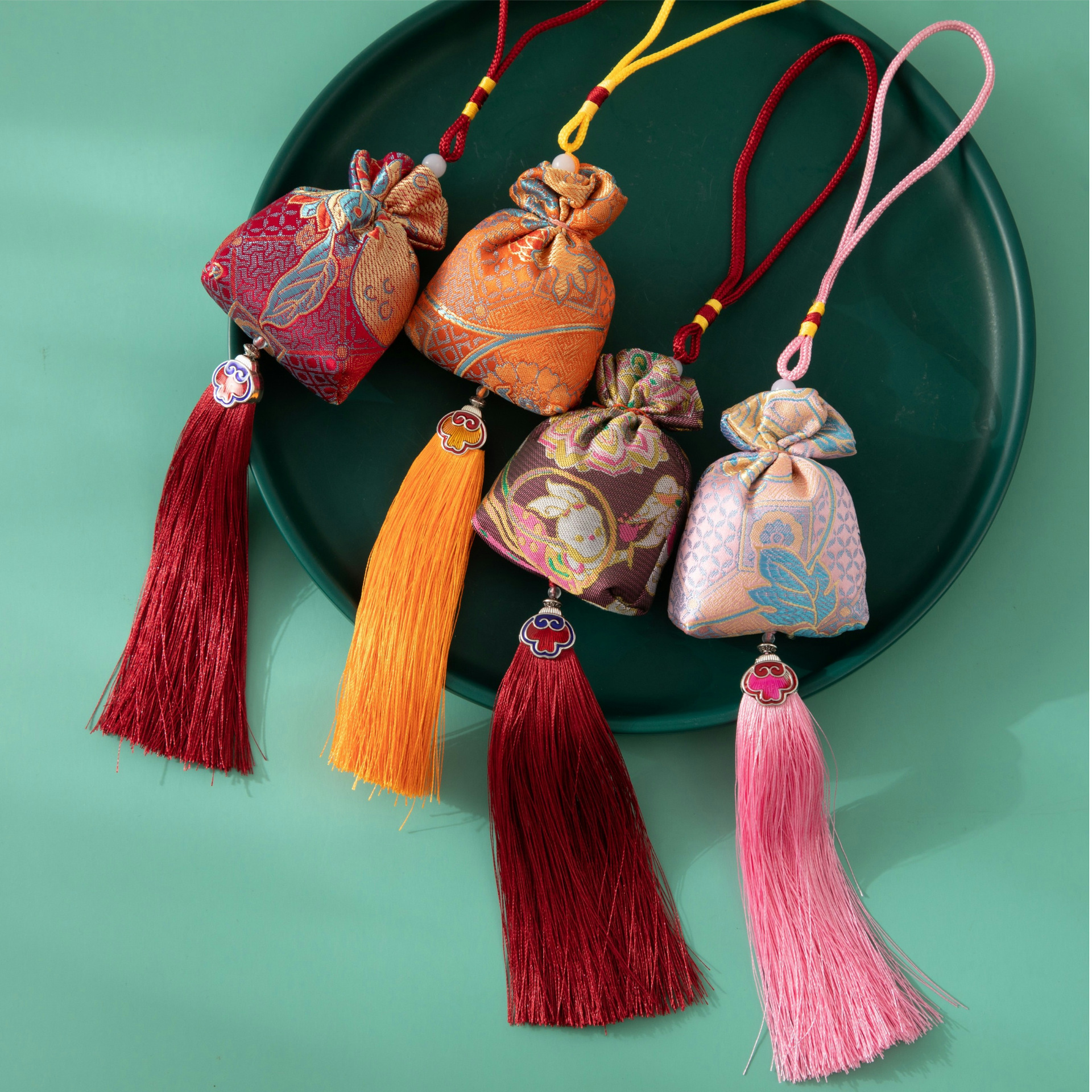 爆款出炉,中国风方形福包香包挂件100个起批3元一个,主打颜色,粉色,橙色,枣红色,蓝色,翠绿色,五个颜色为主,中草艾草混合成分,驱蚊防蚊虫……总长度37cm左右宽度6cm左右中国风刺绣花纹绸缎面料+精品景泰蓝流苏搭配款式高端大气上档次