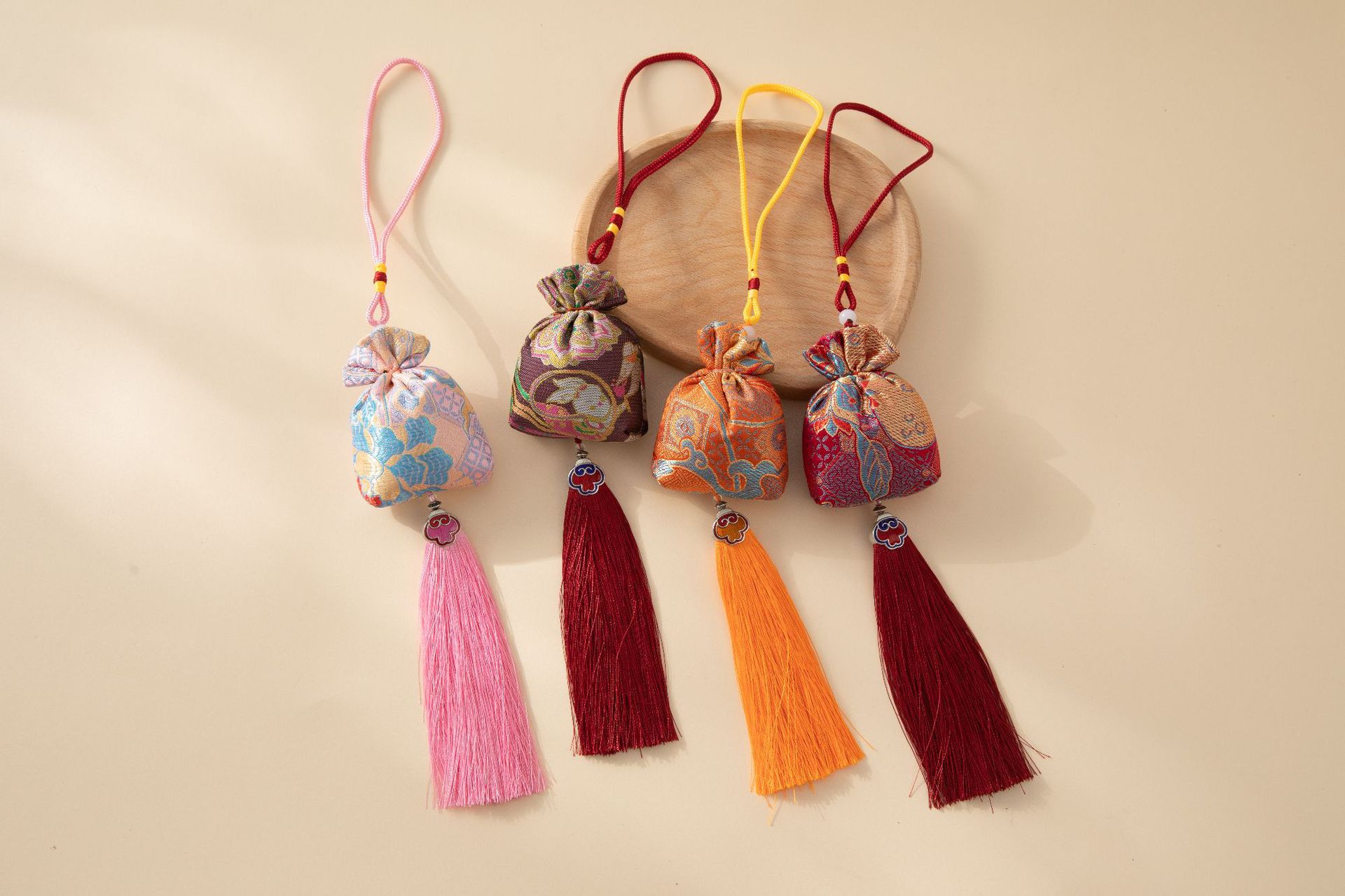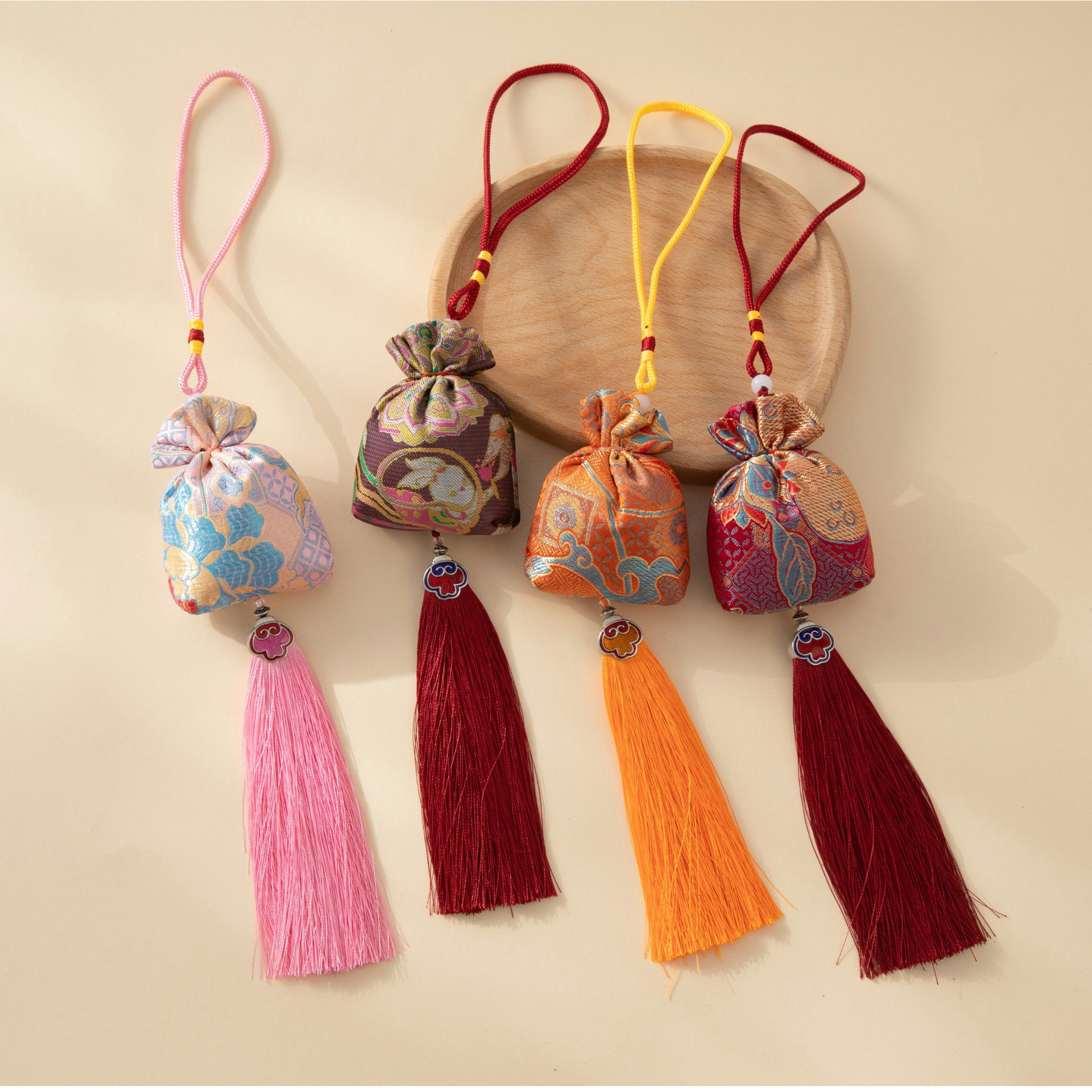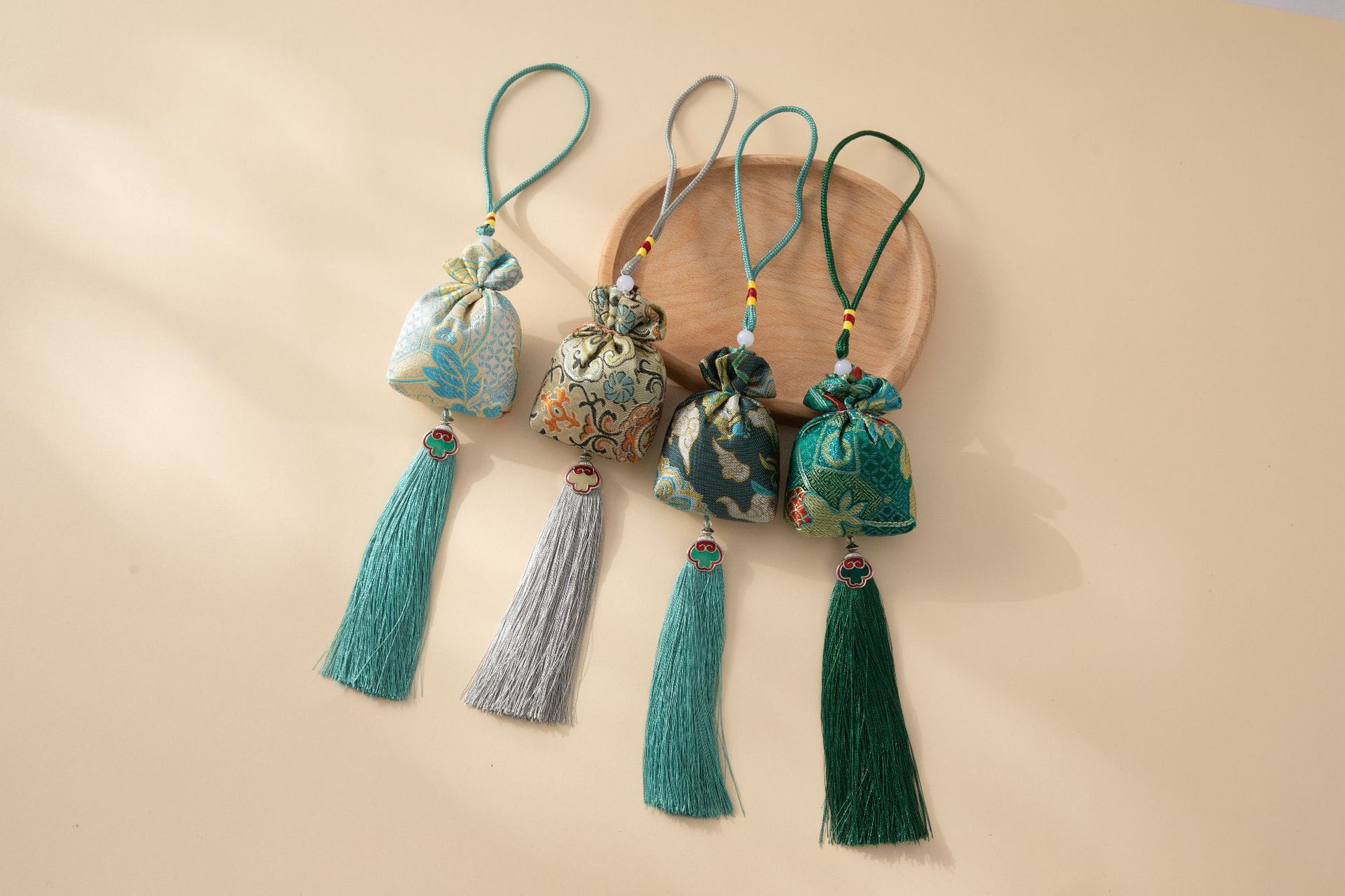 爆款出炉,中国风方形福包香包挂件100个起批3元一个,主打颜色,粉色,橙色,枣红色,蓝色,翠绿色,五个颜色为主,中草艾草混合成分,驱蚊防蚊虫……总长度37cm左右宽度6cm左右中国风刺绣花纹绸缎面料+精品景泰蓝流苏搭配款式高端大气上档次