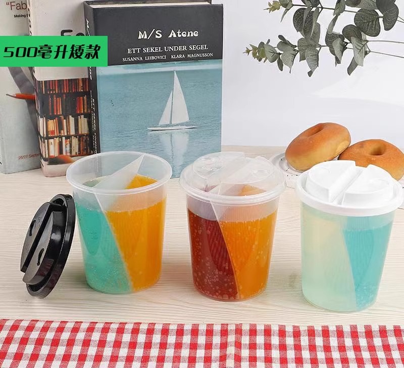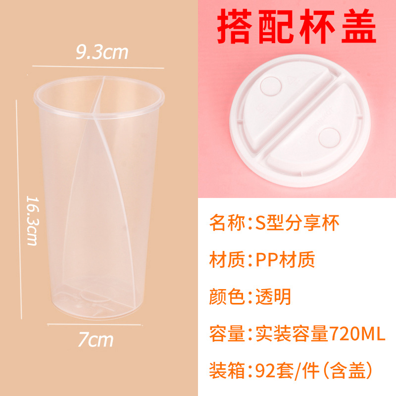 定制一次性加厚S型双格创意奶茶注塑杯双拼鸳鸯杯情侣果汁分享杯