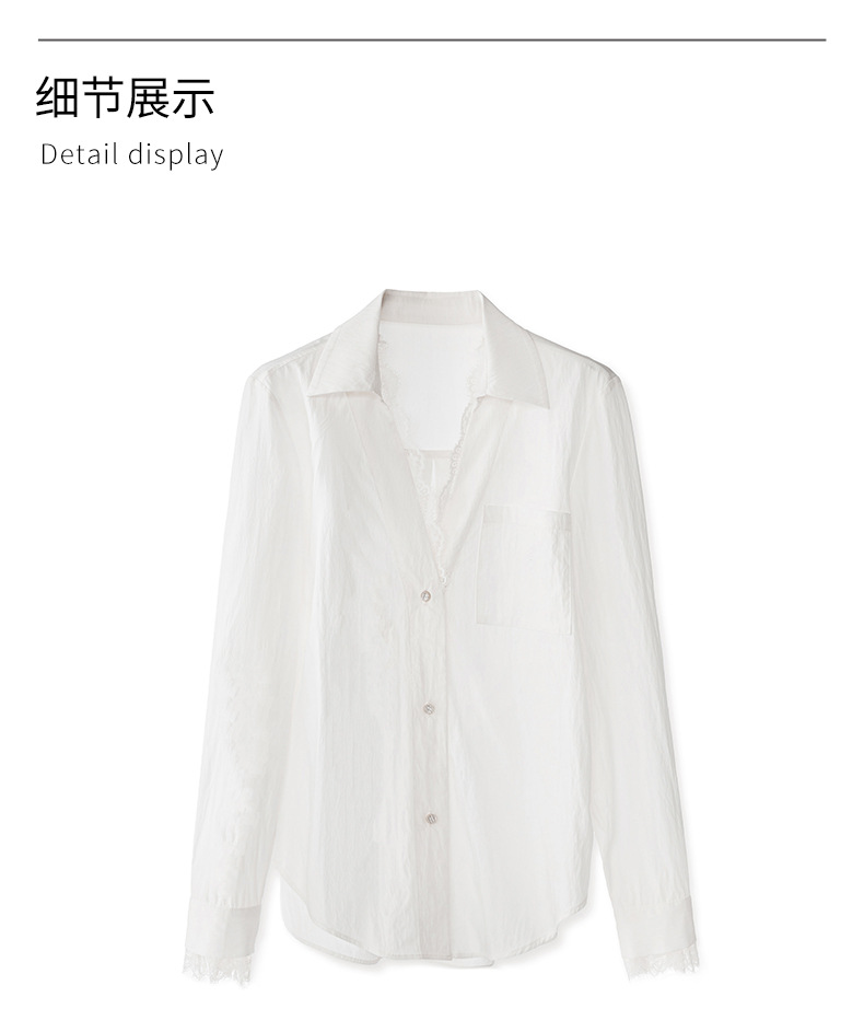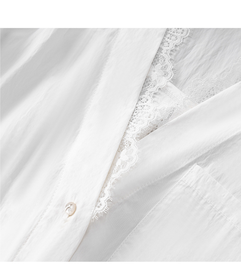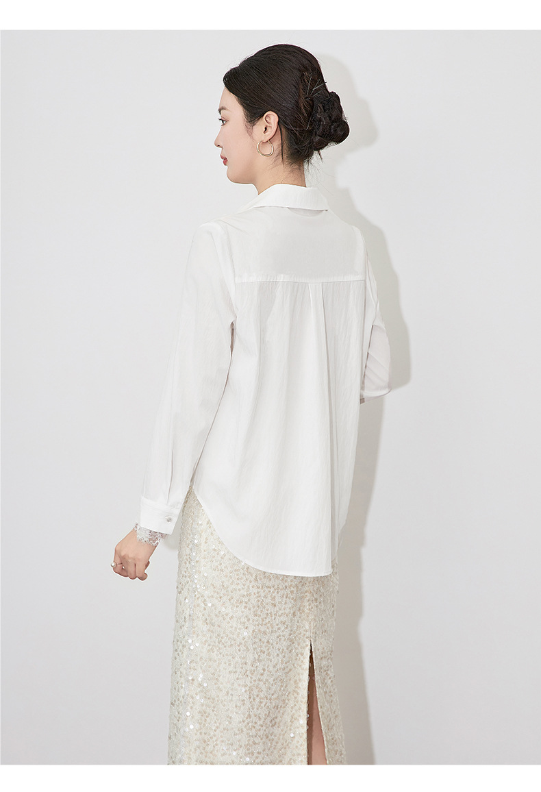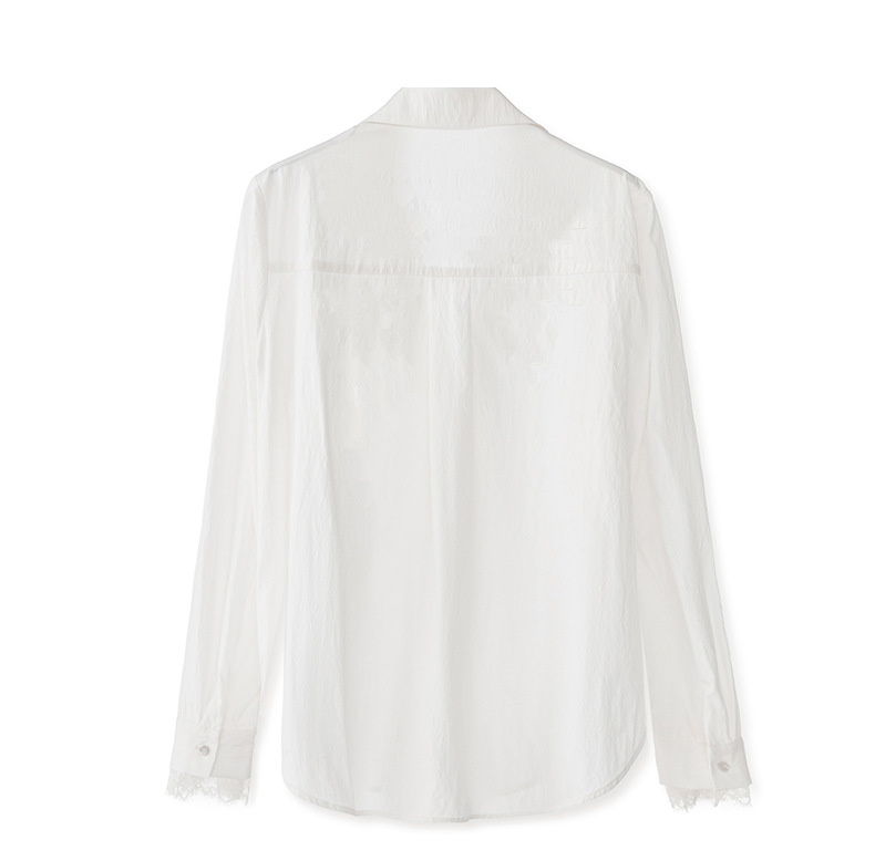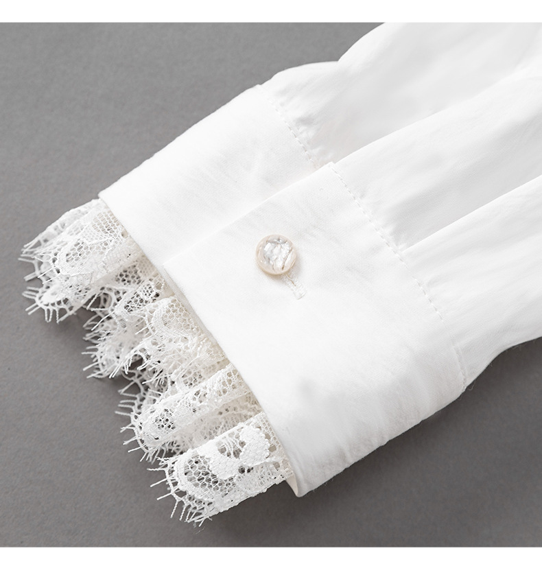 2501404-深圳南油优雅蕾丝翻领上衣洗水棉长袖时髦洋气女衬衫新款