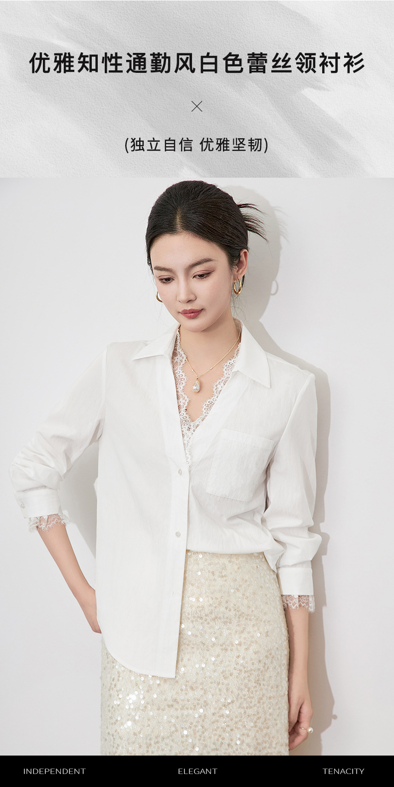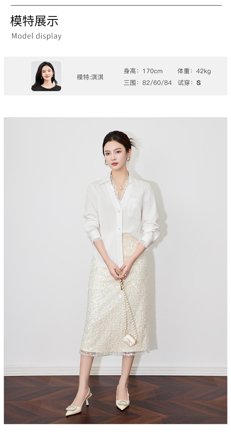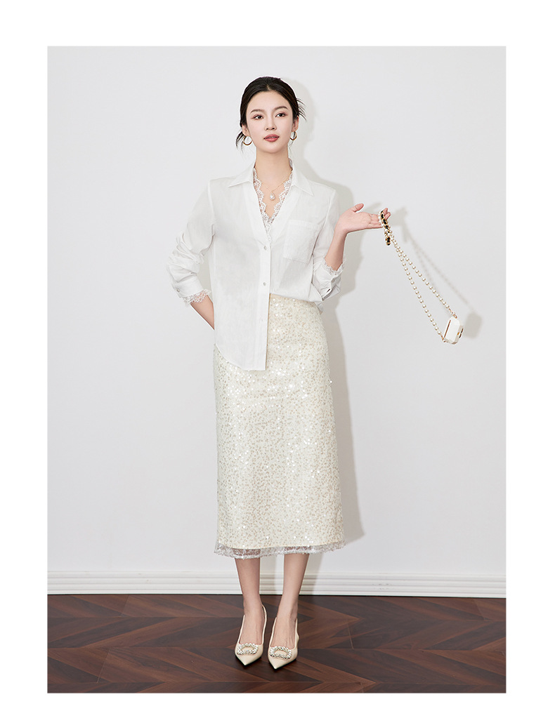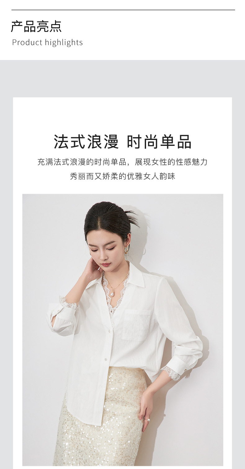 2501404-深圳南油优雅蕾丝翻领上衣洗水棉长袖时髦洋气女衬衫新款