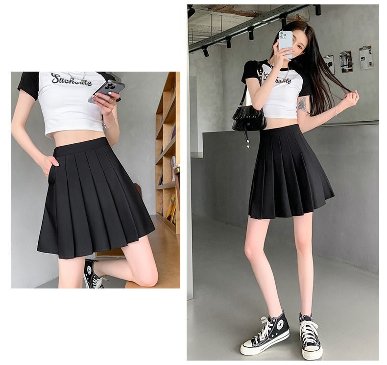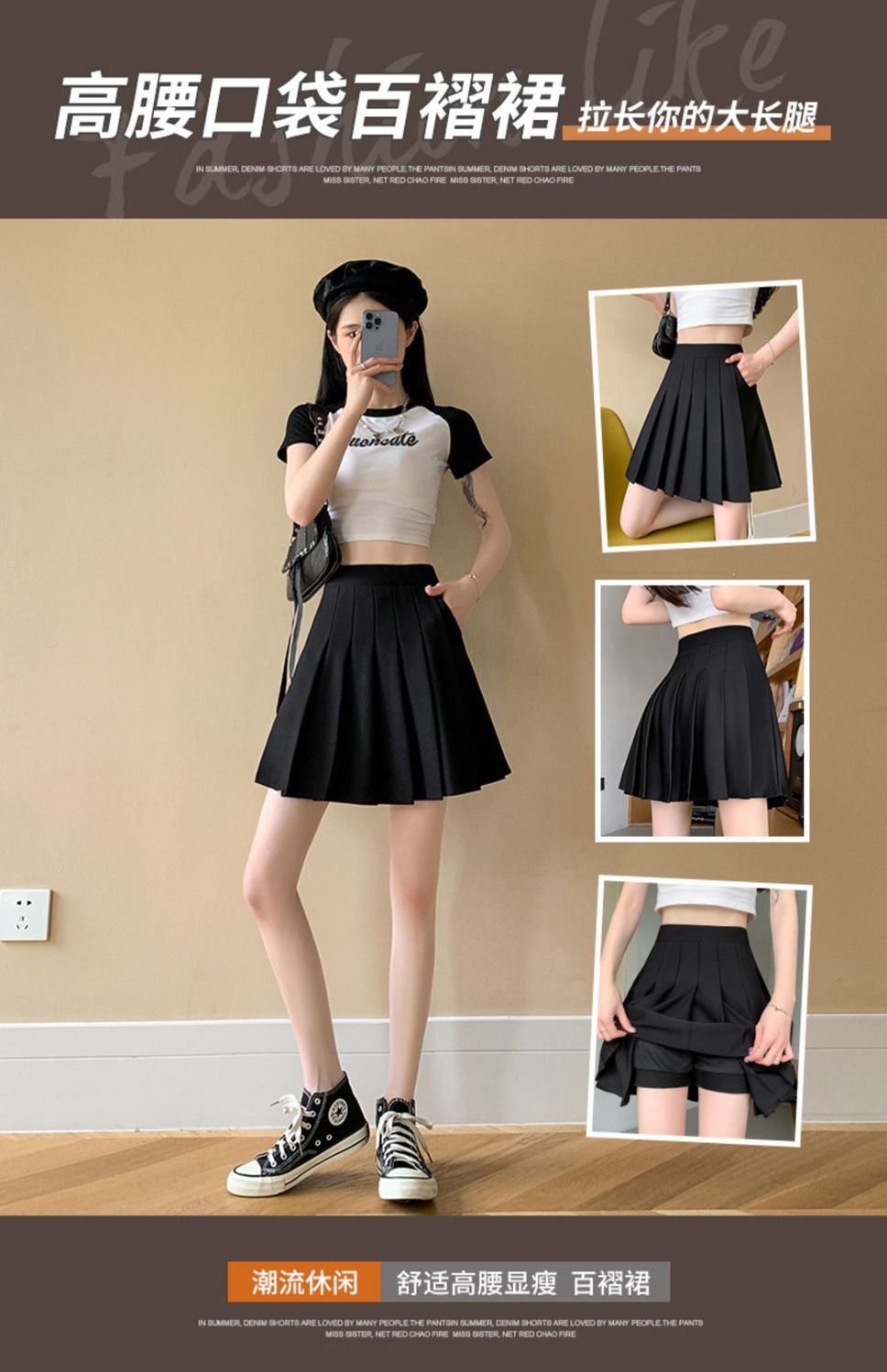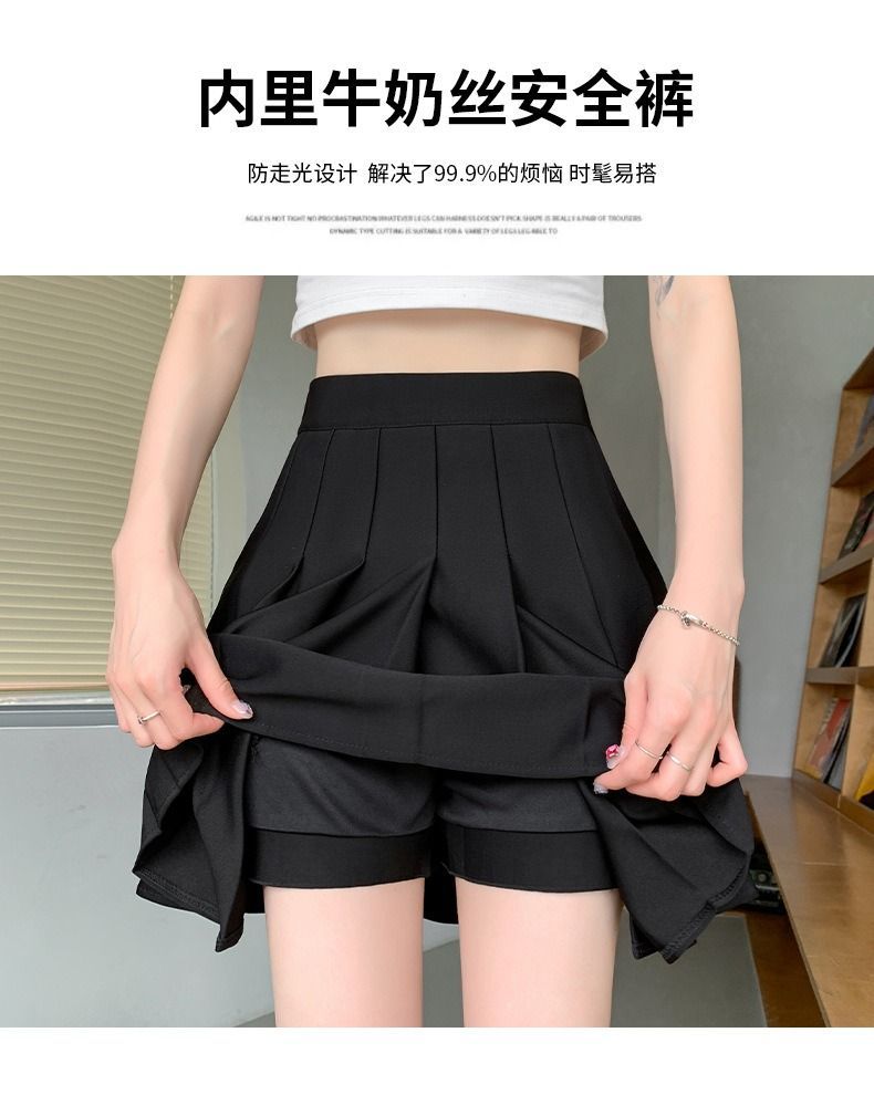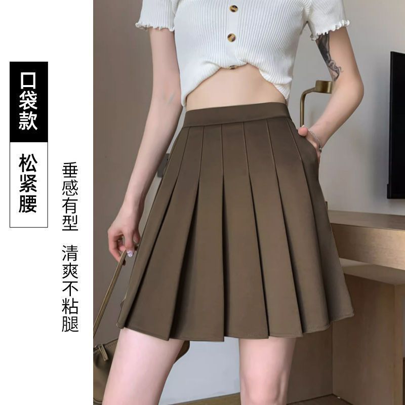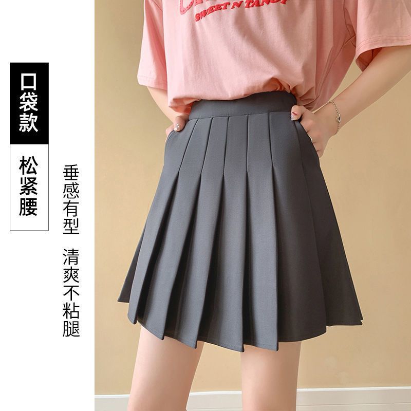 高腰弹力百褶裙带口袋夏季小个子松紧短裙女胖mm大码显瘦短裙供应