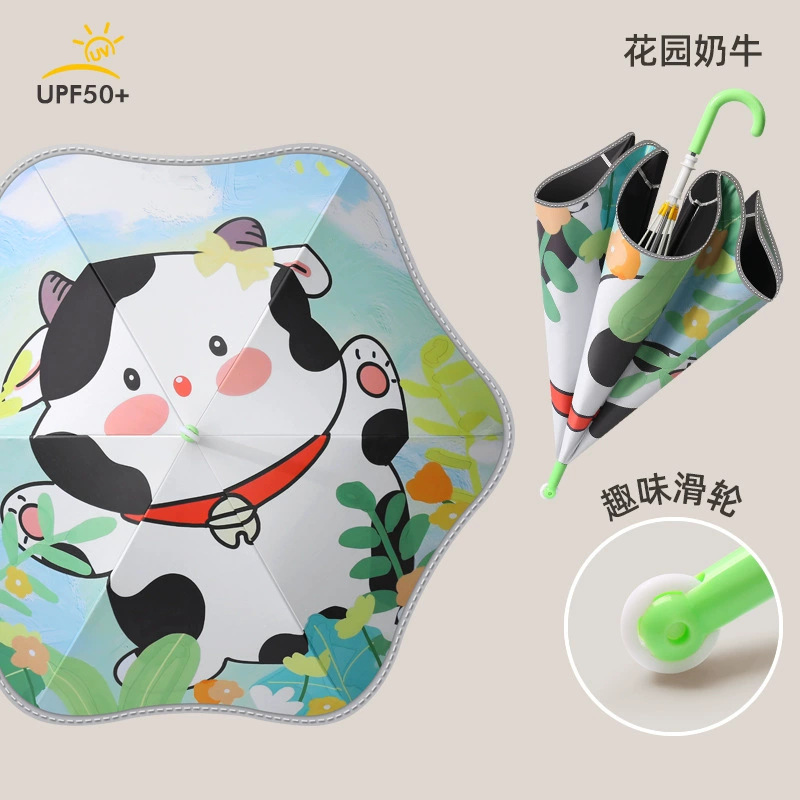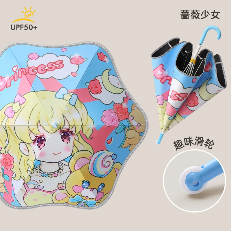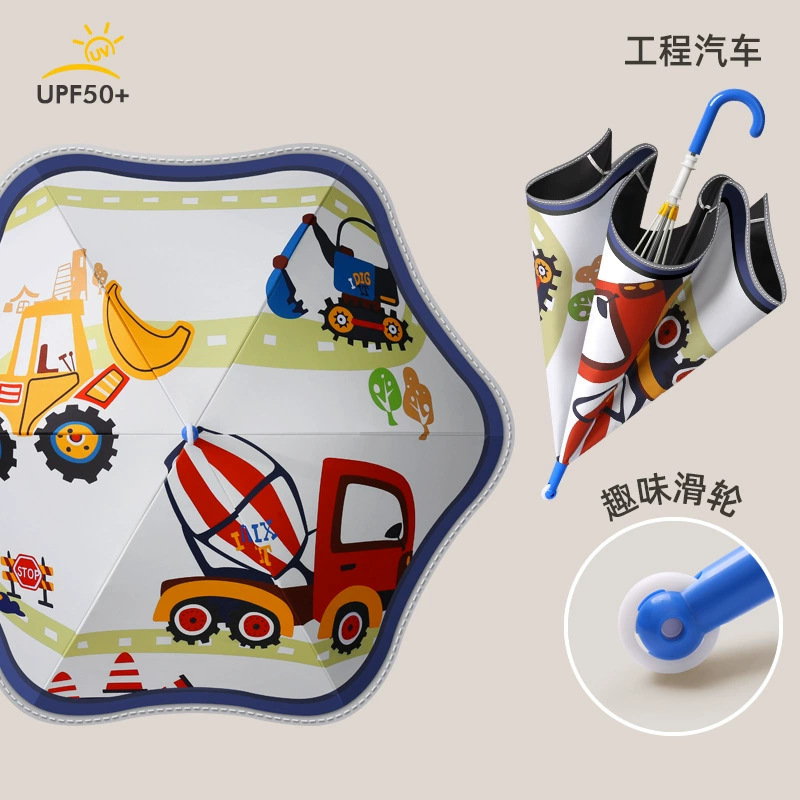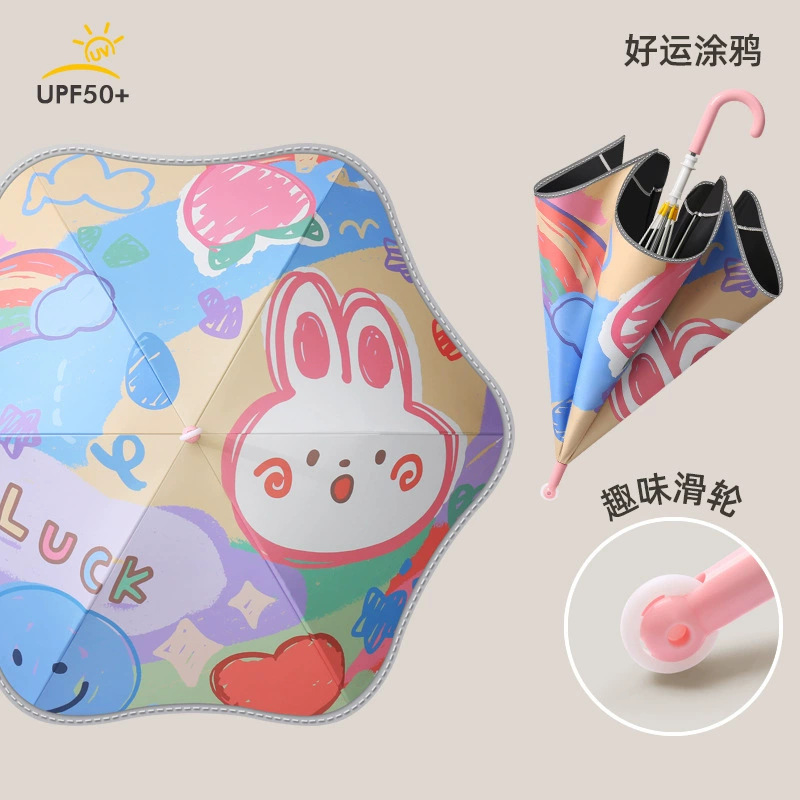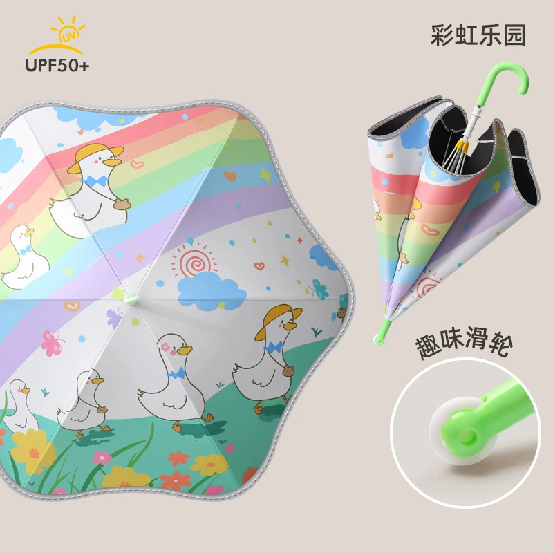 滑轮圆角儿童雨伞宝宝幼儿园女孩可爱上学男女幼童太阳晴雨伞