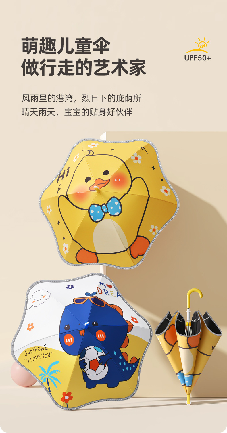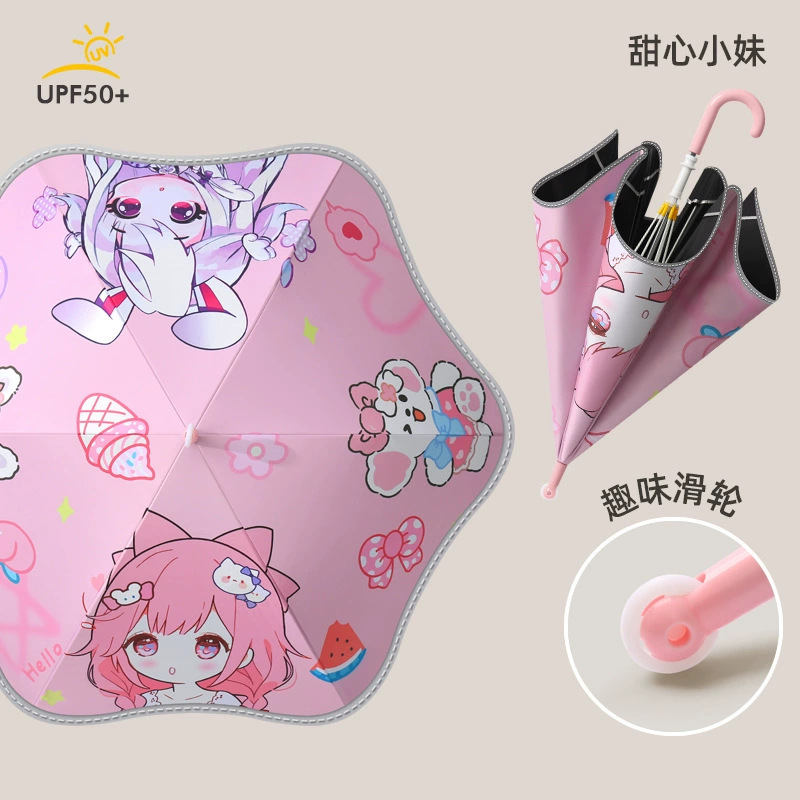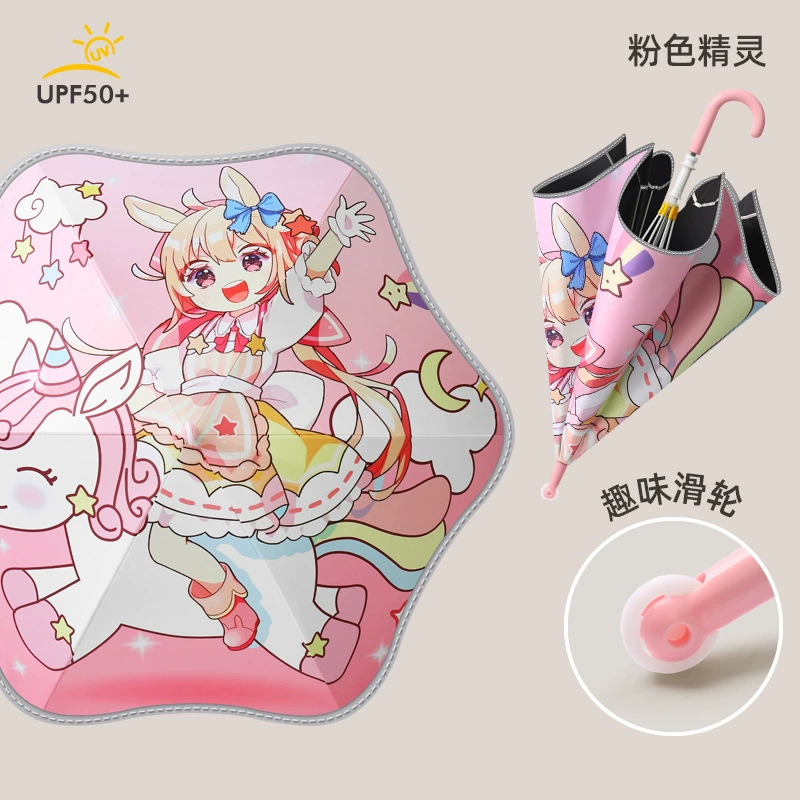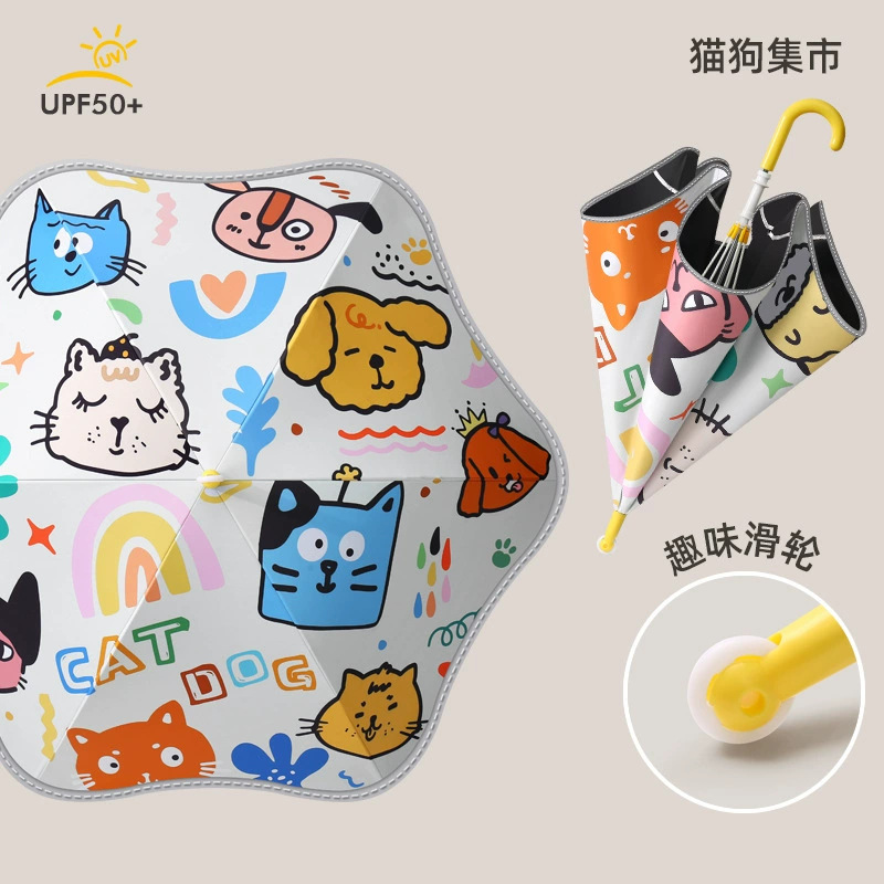 滑轮圆角儿童雨伞宝宝幼儿园女孩可爱上学男女幼童太阳晴雨伞