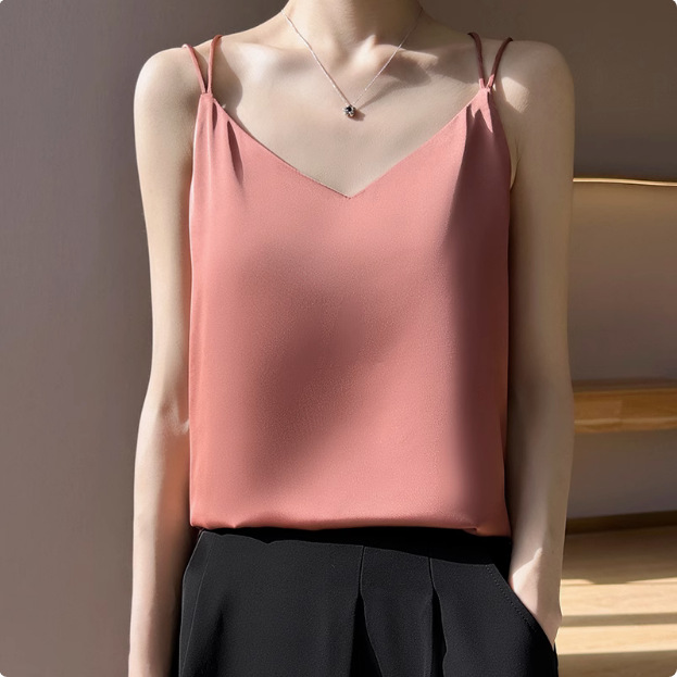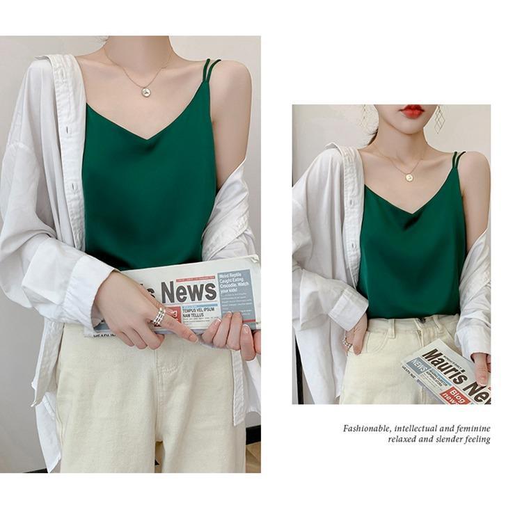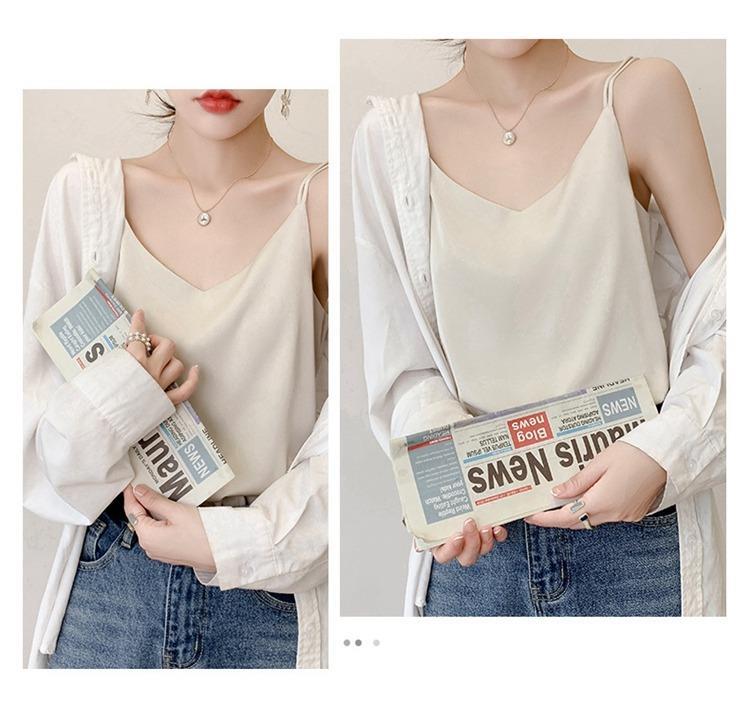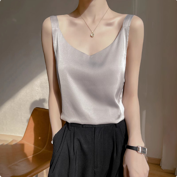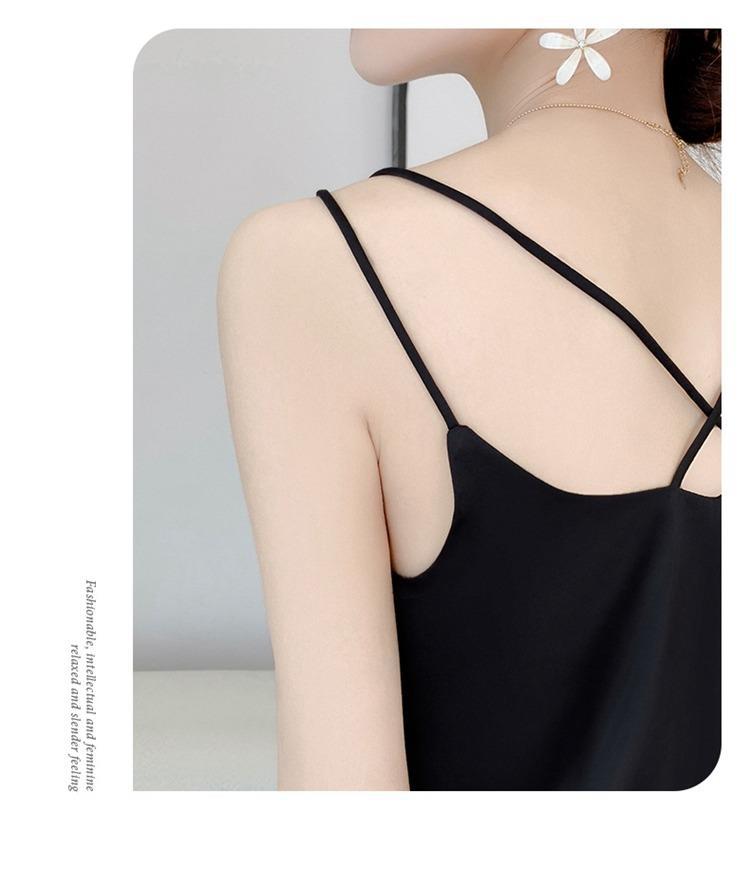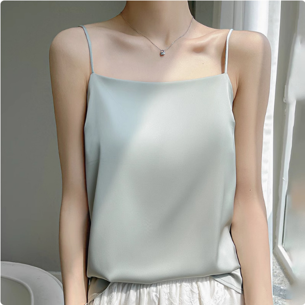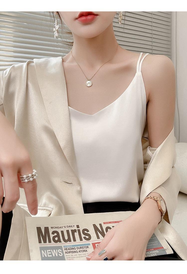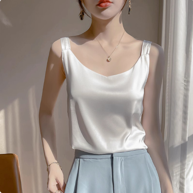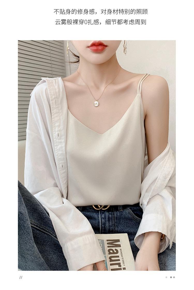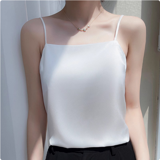 2025年吊带背心女内搭白色美背醋酸仿真丝上衣缎面夏西装仿打底衫