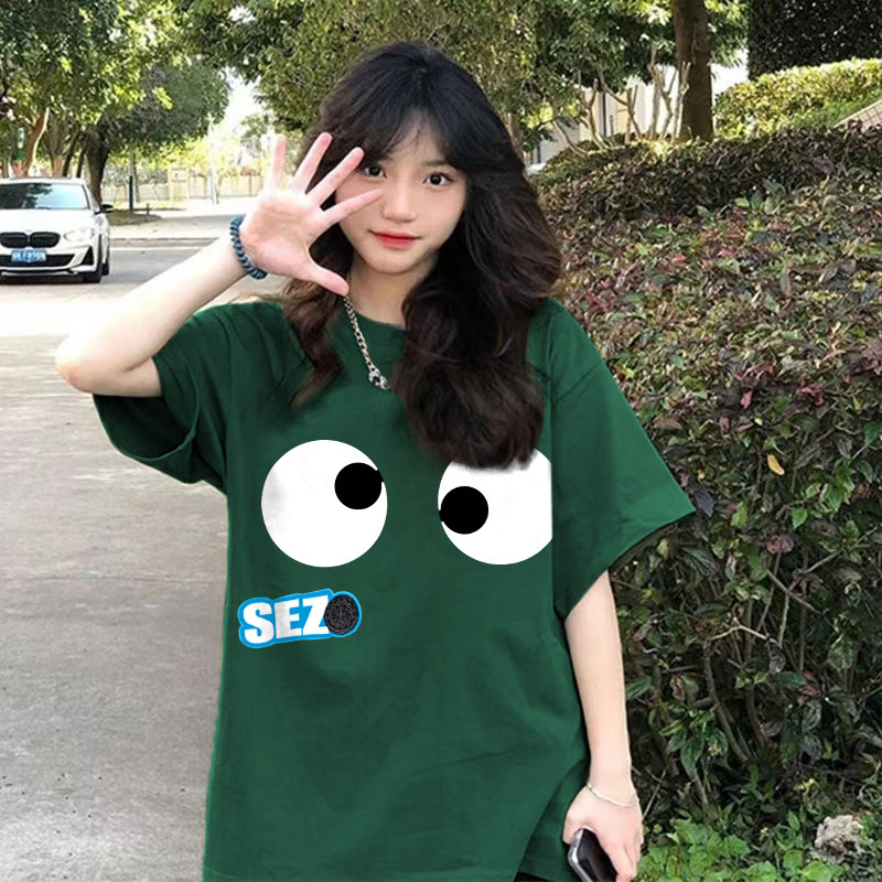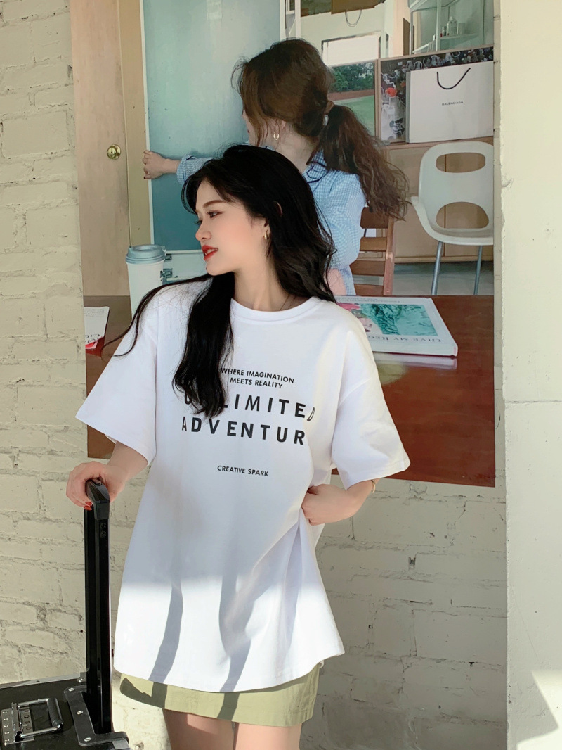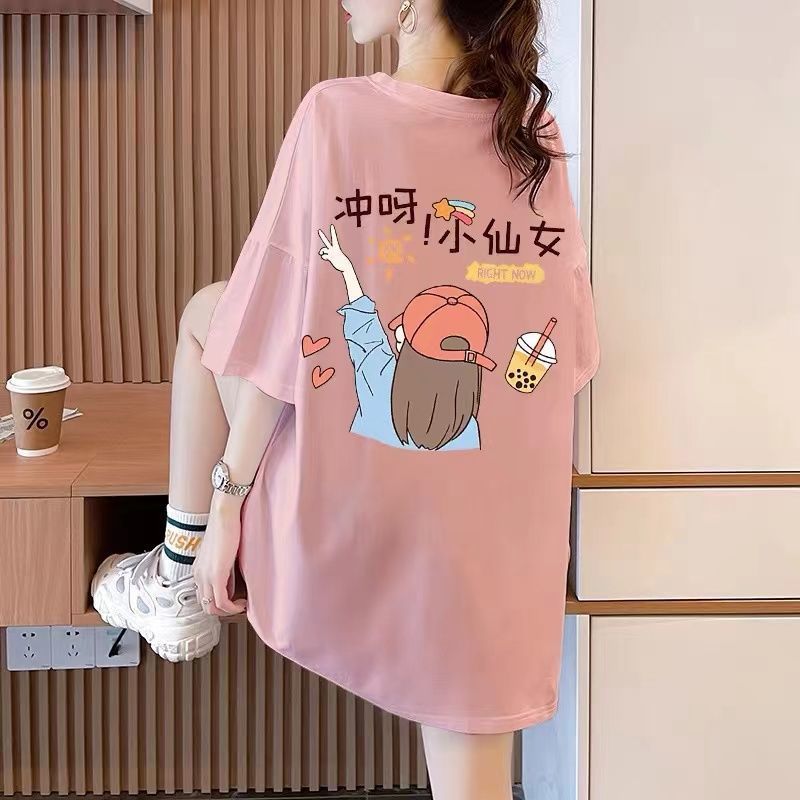 夏季短袖T恤女纯棉中长款宽松女装韩版新款2025潮牌印花圆领上衣