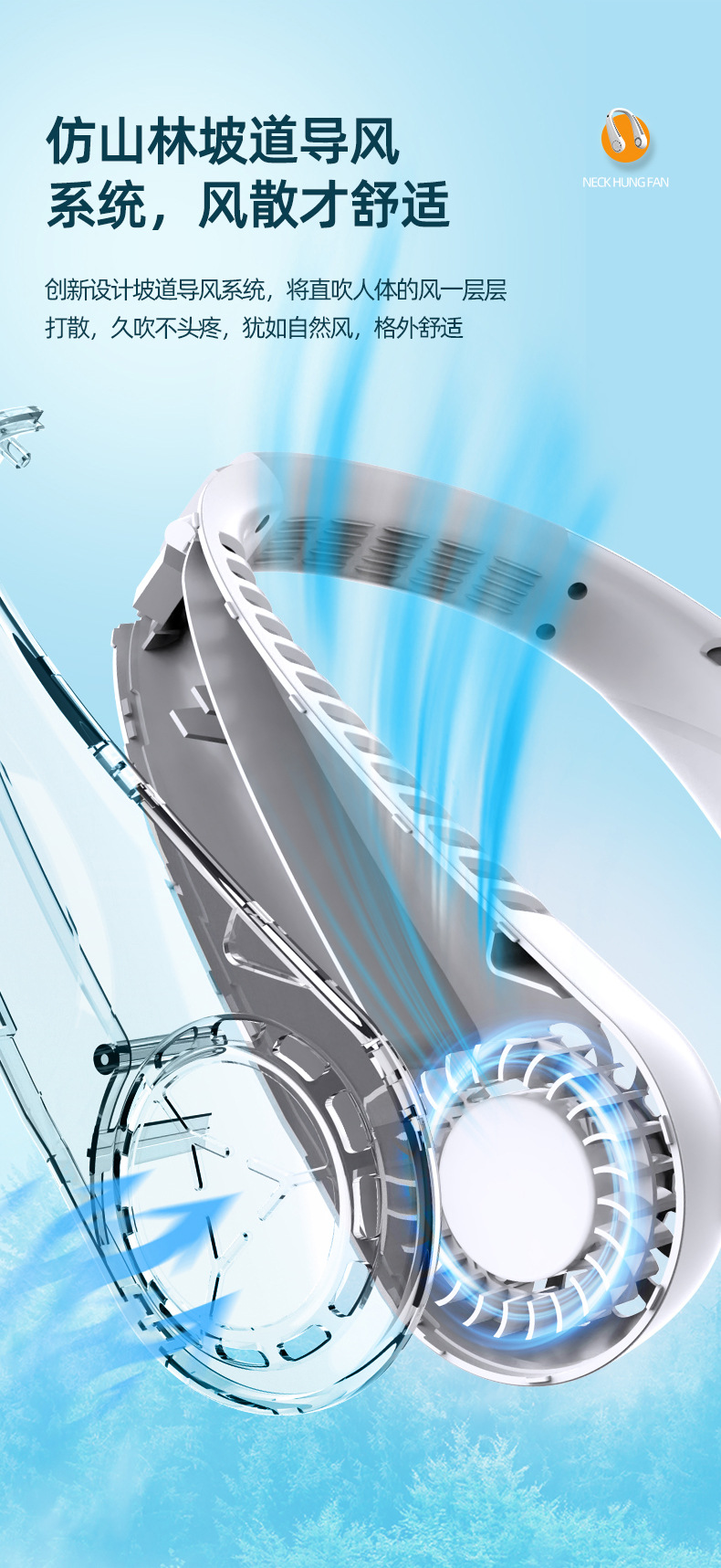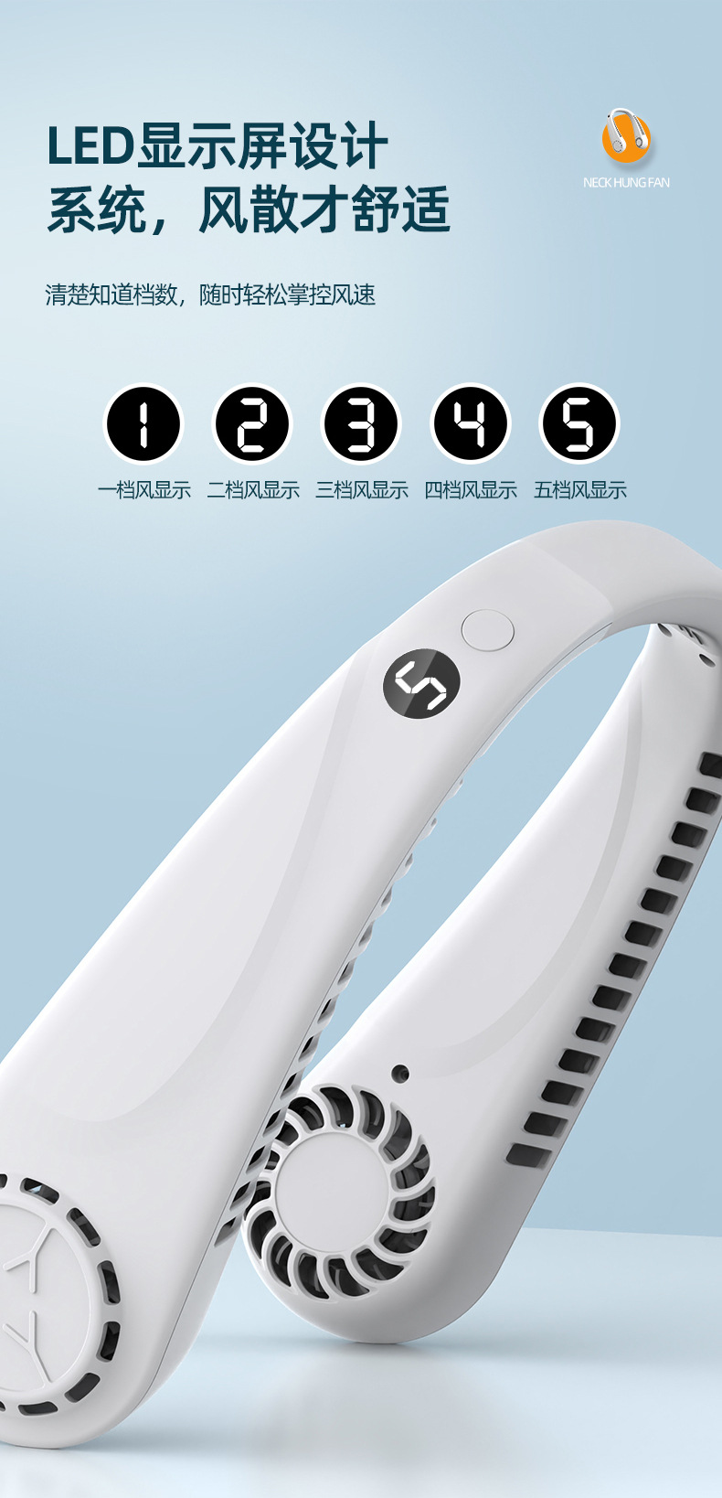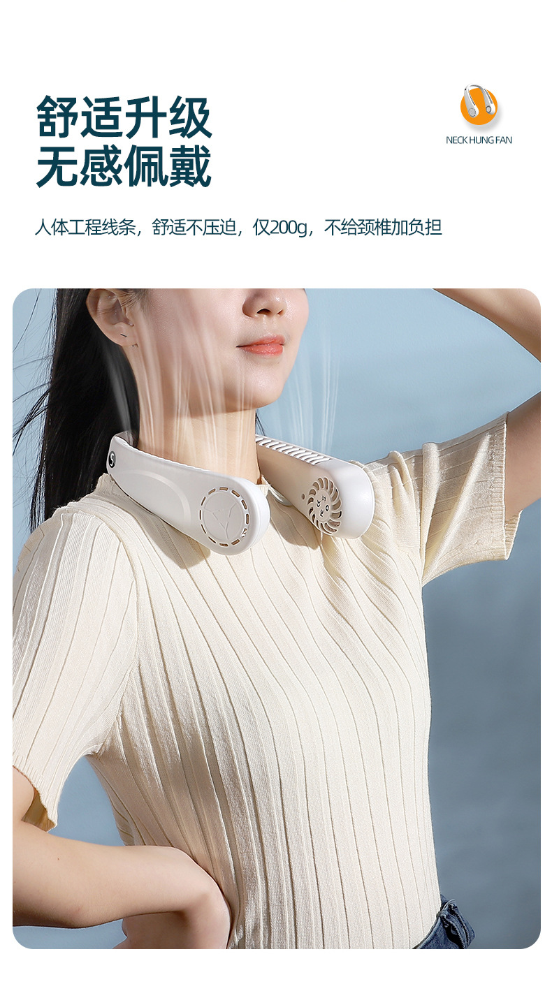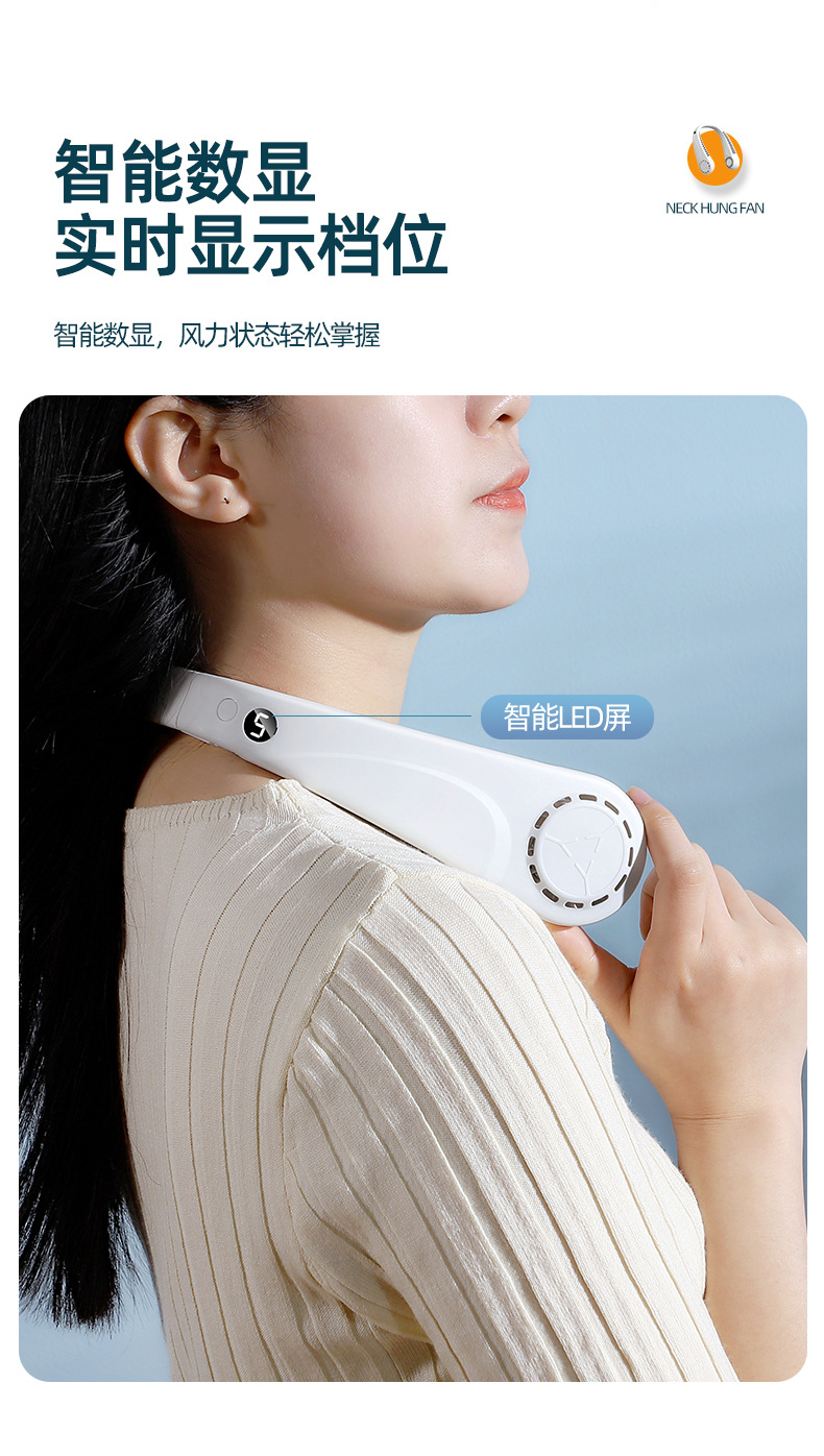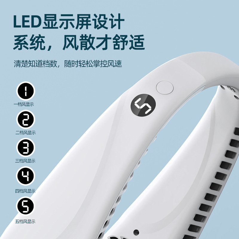 新款usb充电数显户外跨境爆款2023无叶挂脖便携懒人挂脖风扇