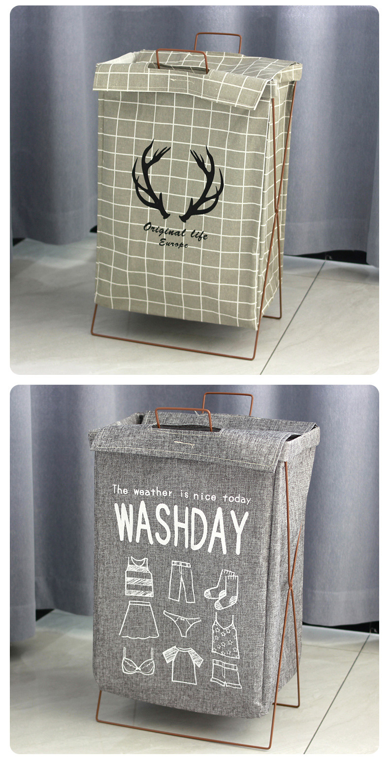 加粗钢架支撑棉麻脏衣篮防水可折叠浴室收纳袋卫生间衣物收纳框