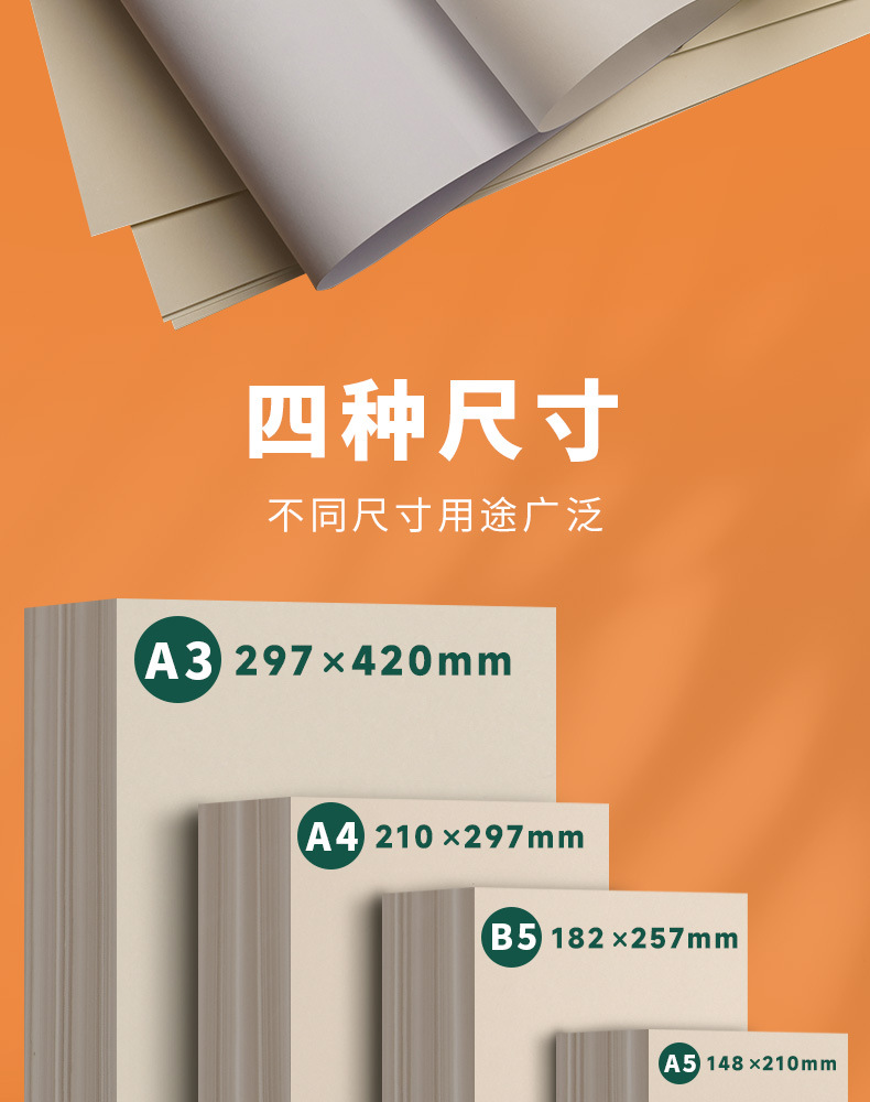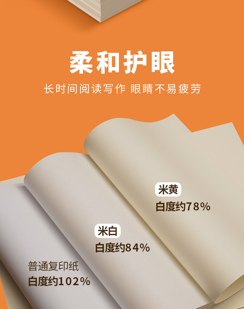 元浩A4/A5/B5/A3米黄米白护眼纸120g打印纸100g加厚150g道林纸