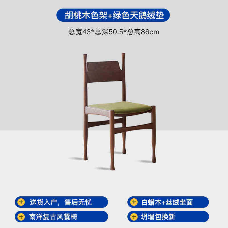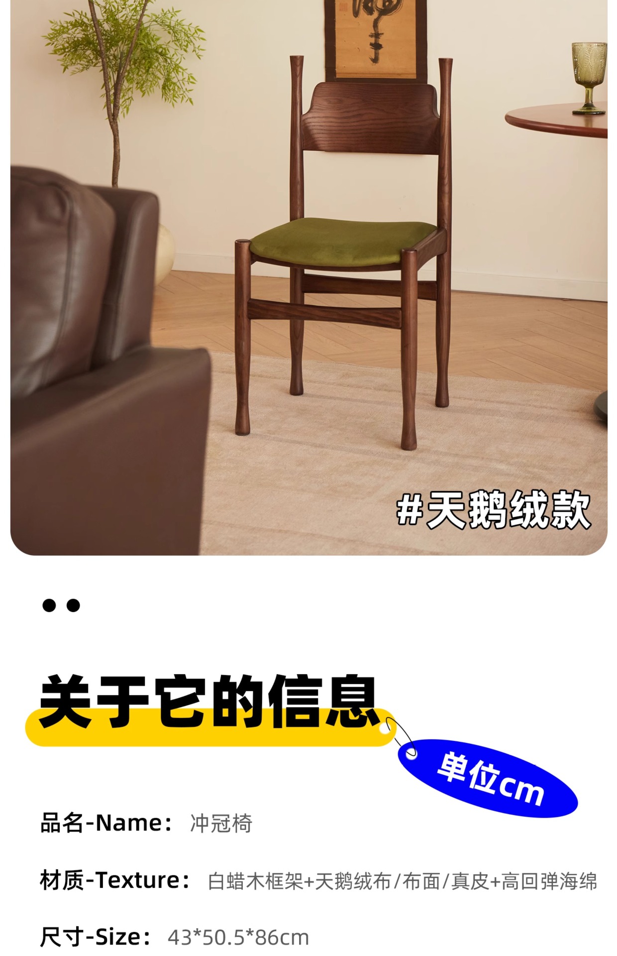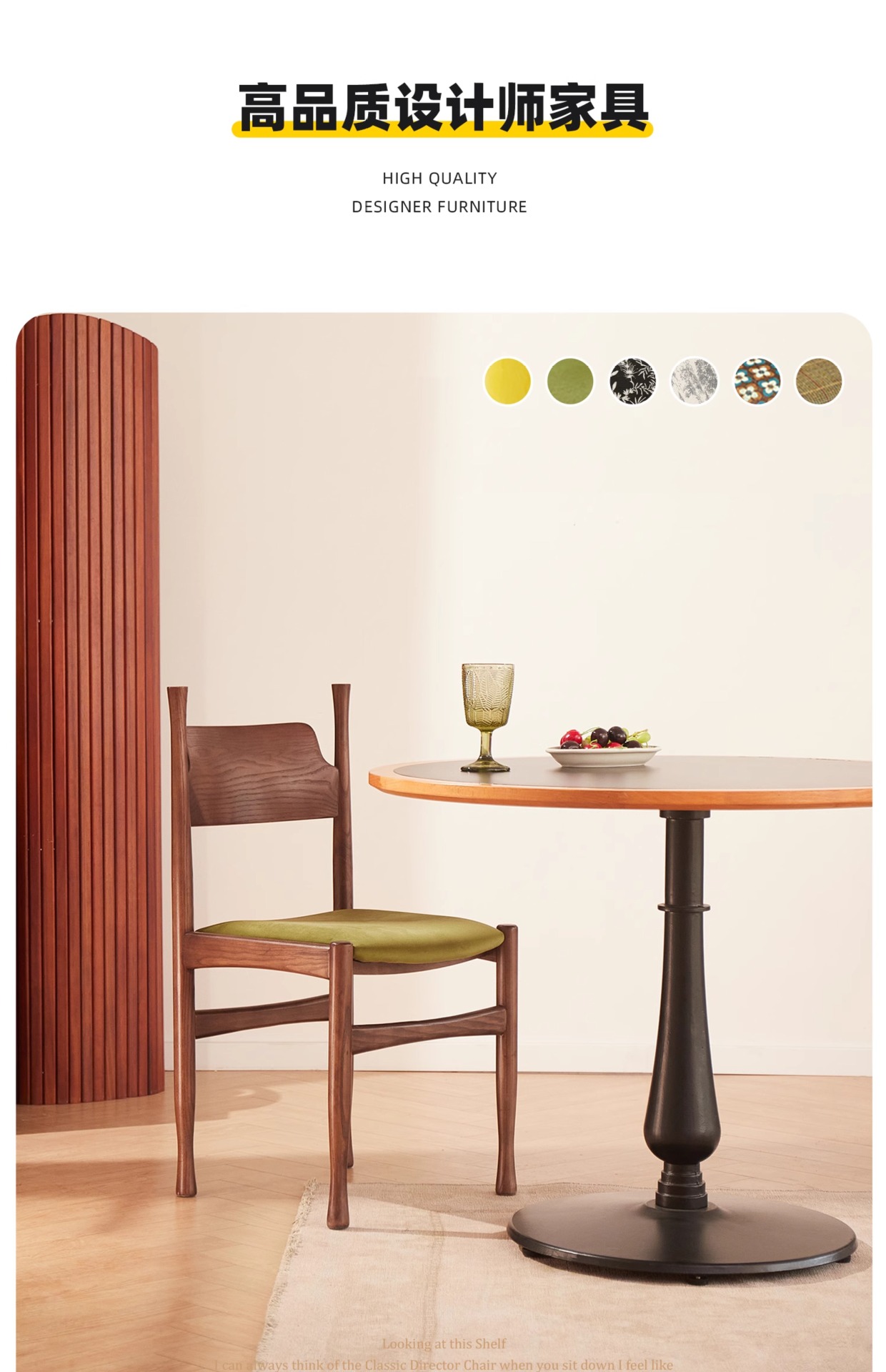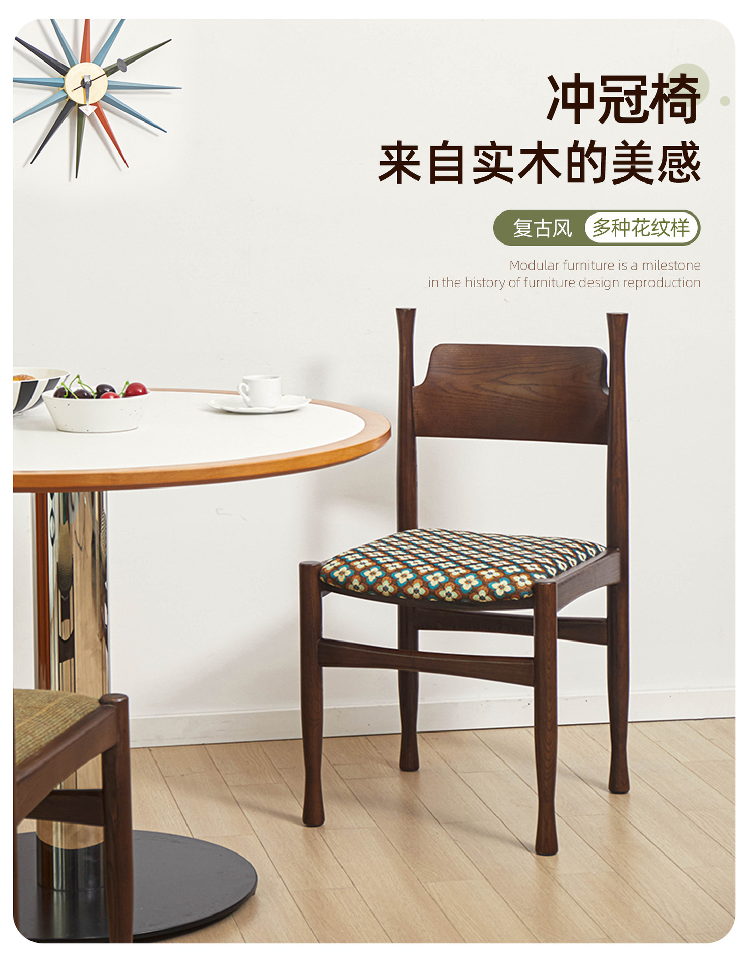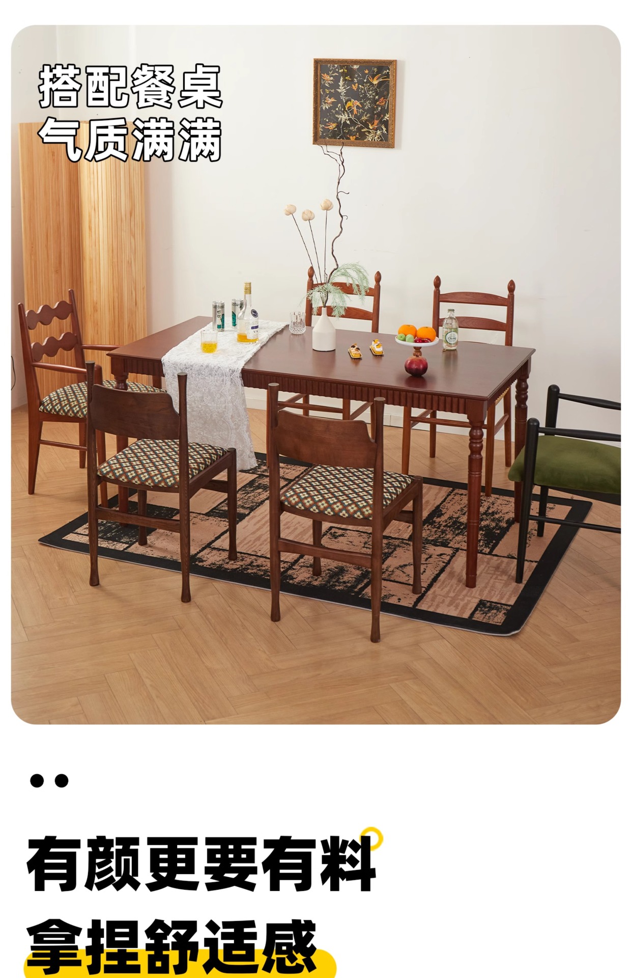 北欧软包冲冠椅法式复古餐椅中古实木靠背椅客厅家用轻奢网红椅子