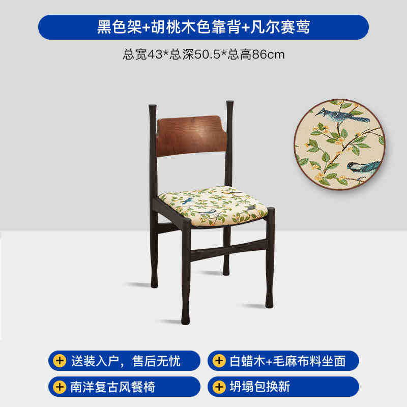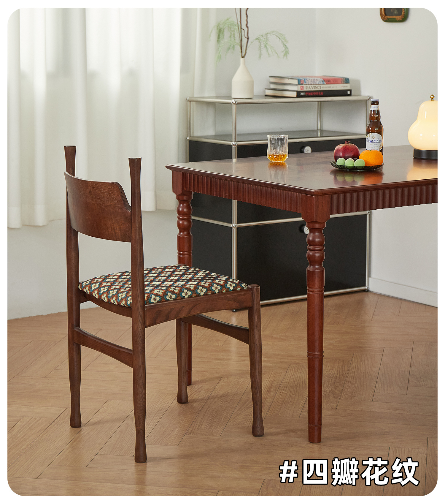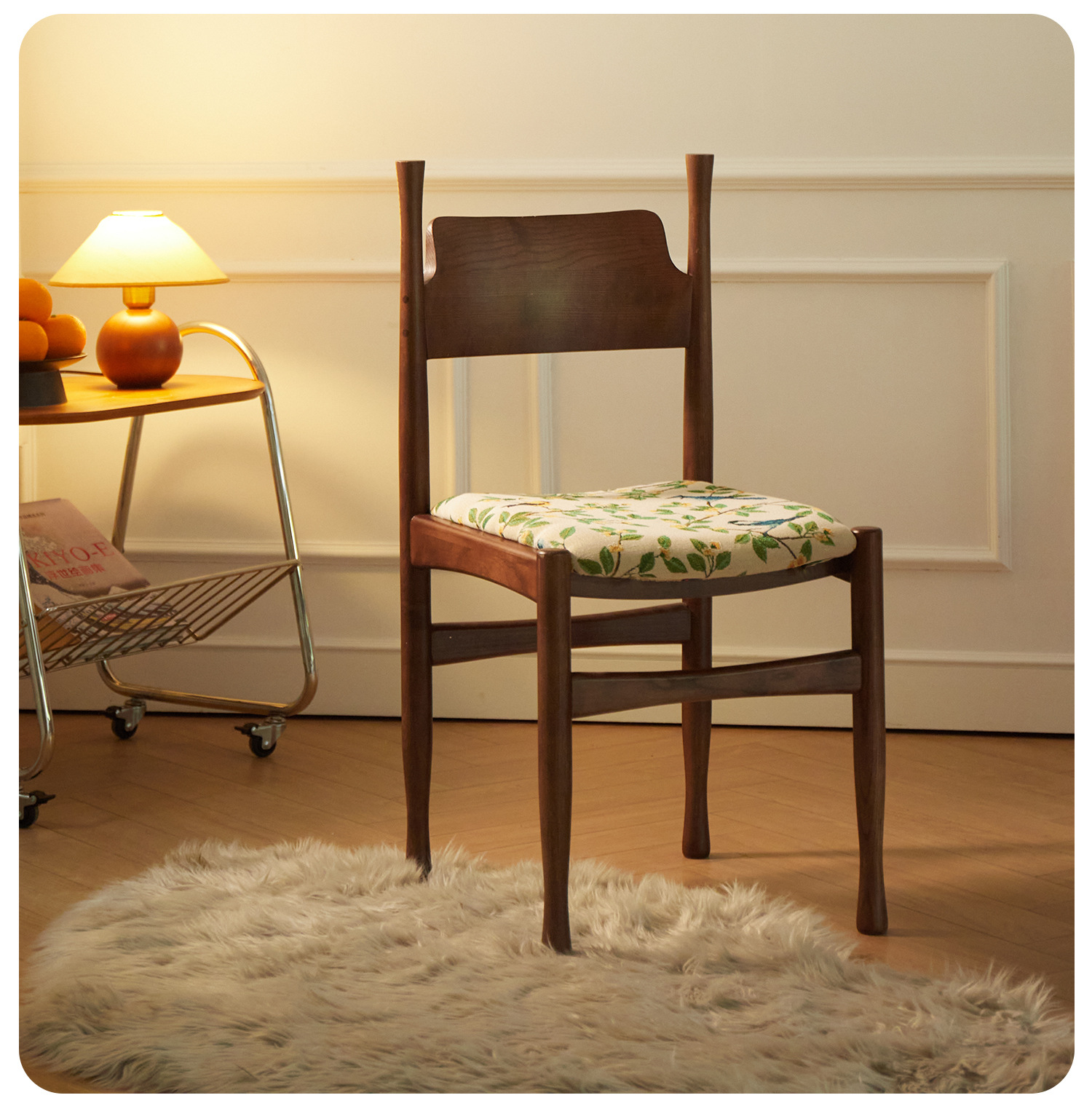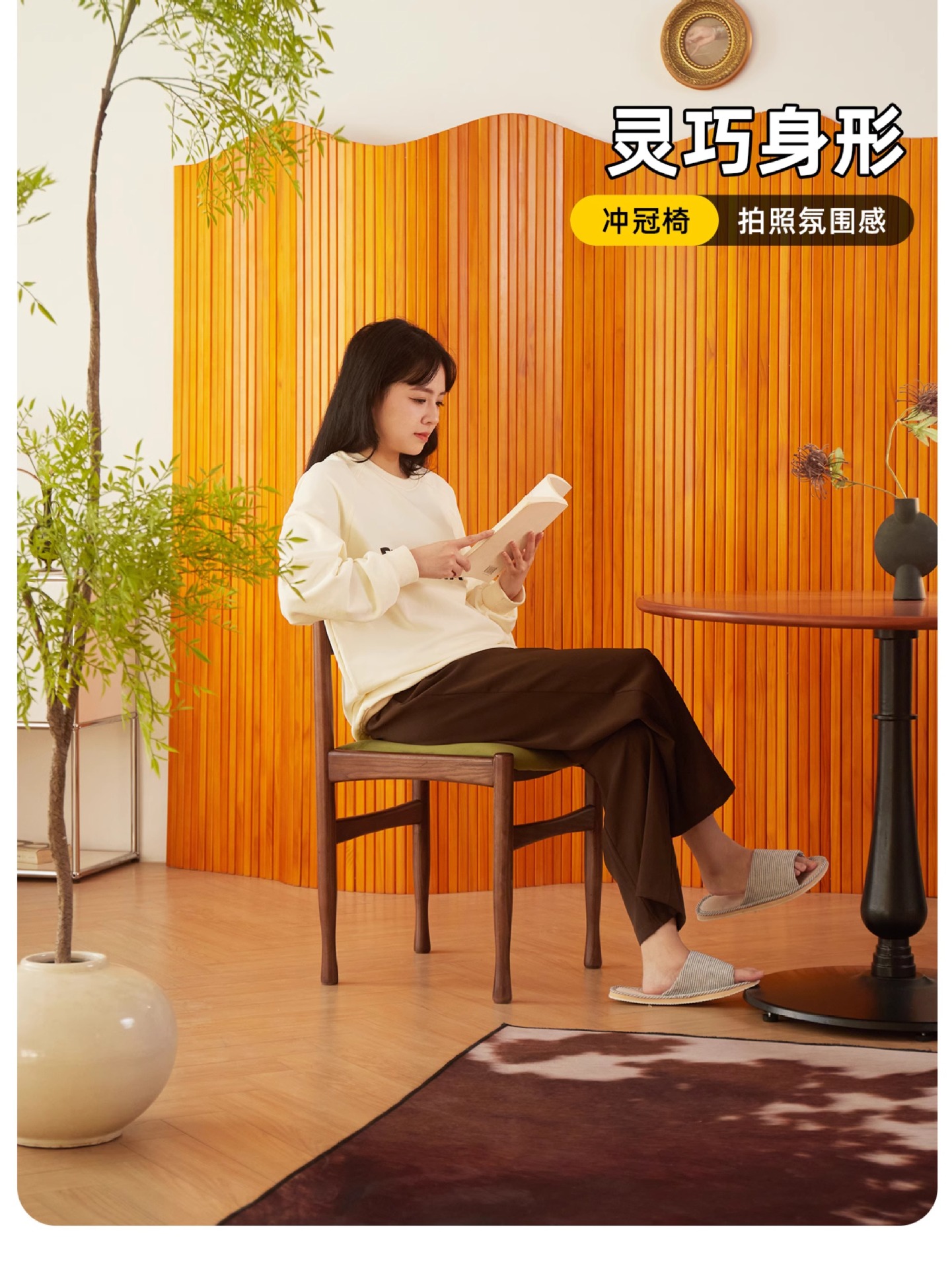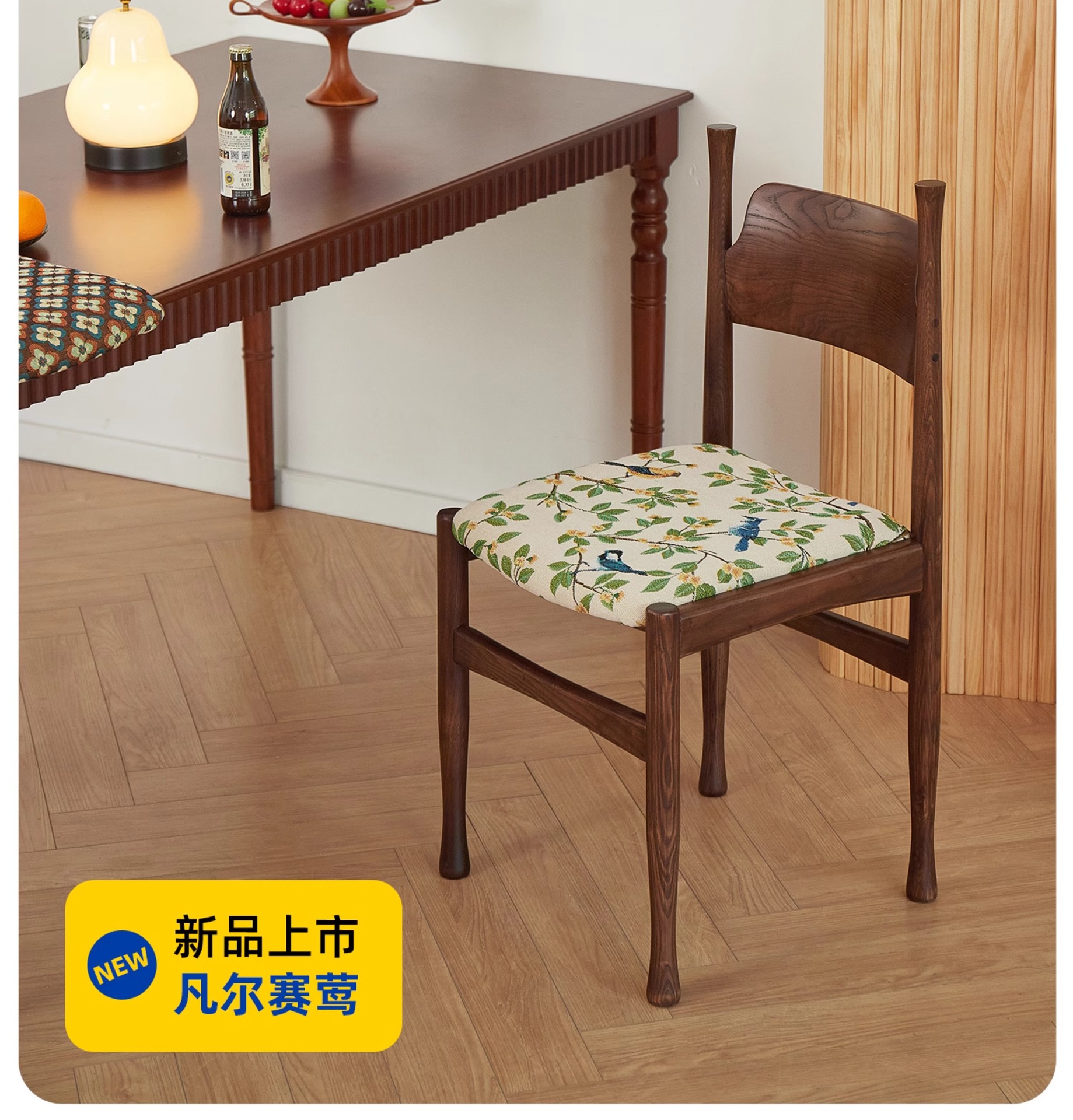 北欧软包冲冠椅法式复古餐椅中古实木靠背椅客厅家用轻奢网红椅子