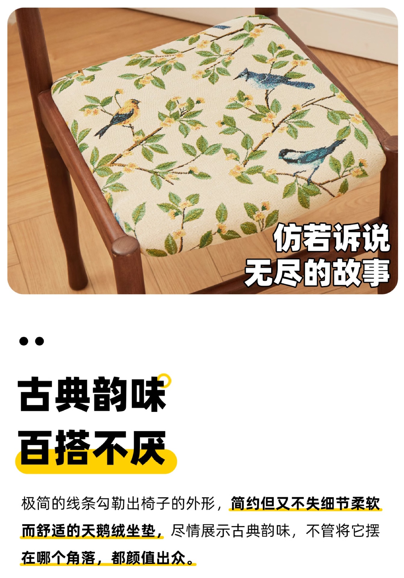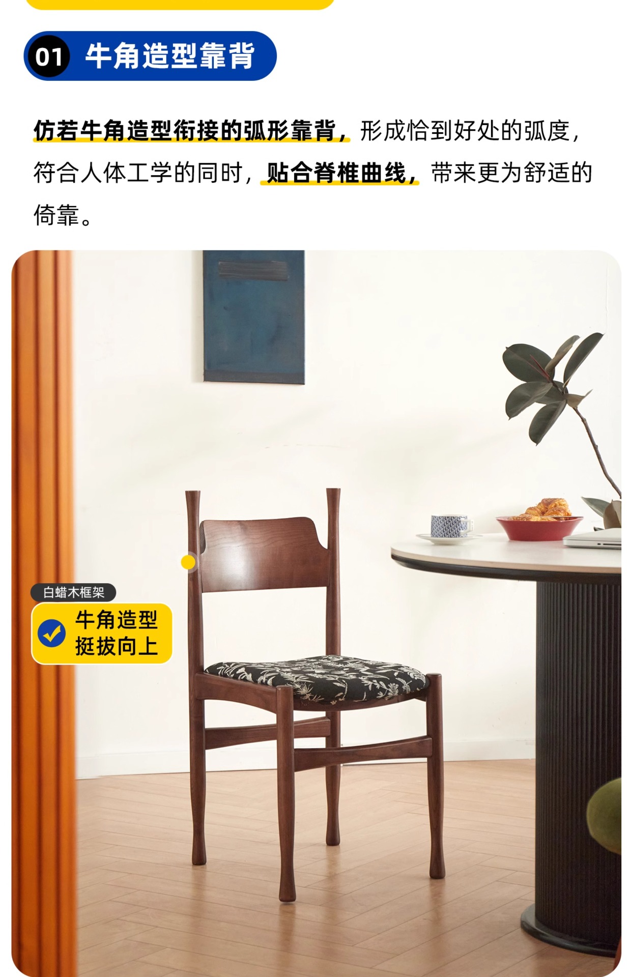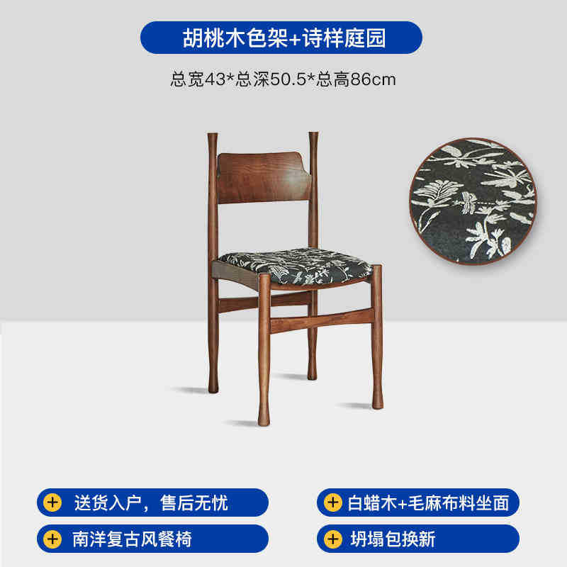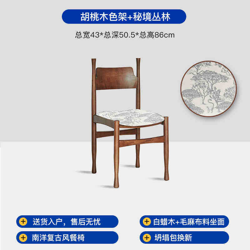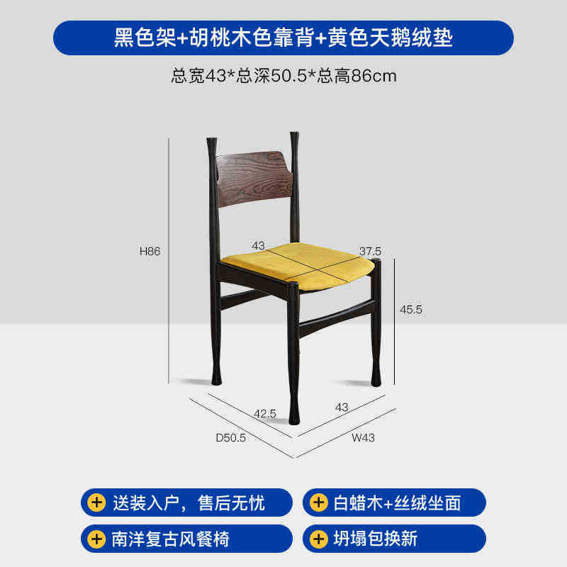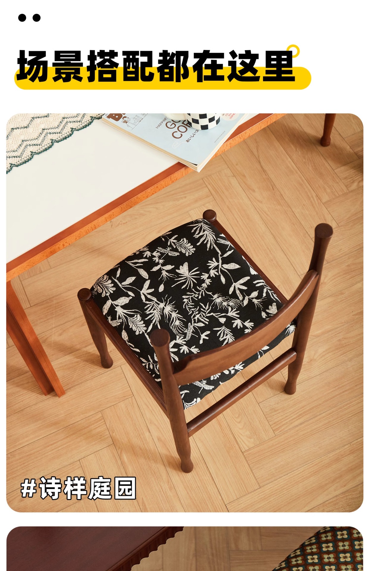 北欧软包冲冠椅法式复古餐椅中古实木靠背椅客厅家用轻奢网红椅子