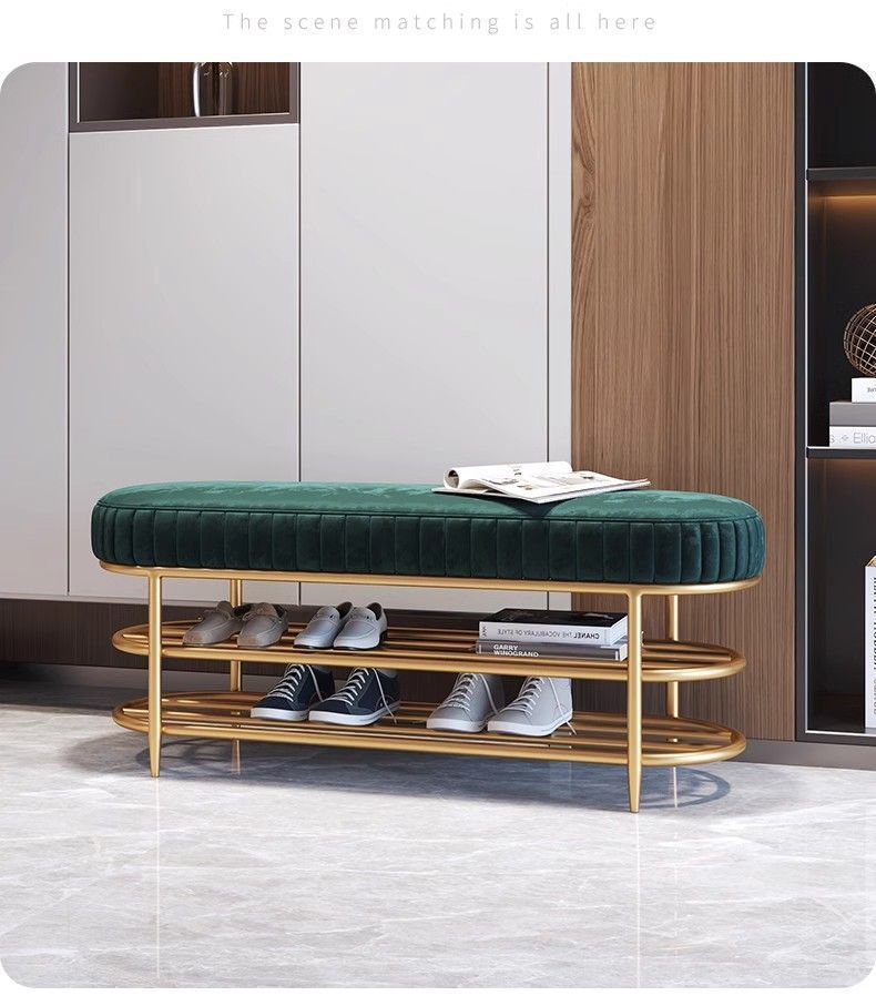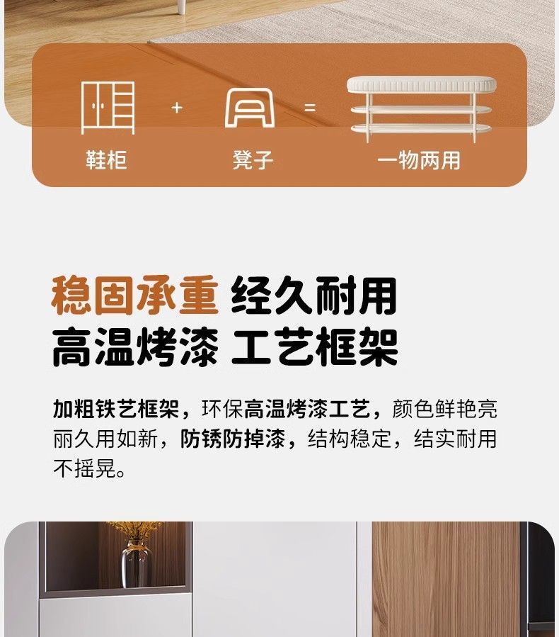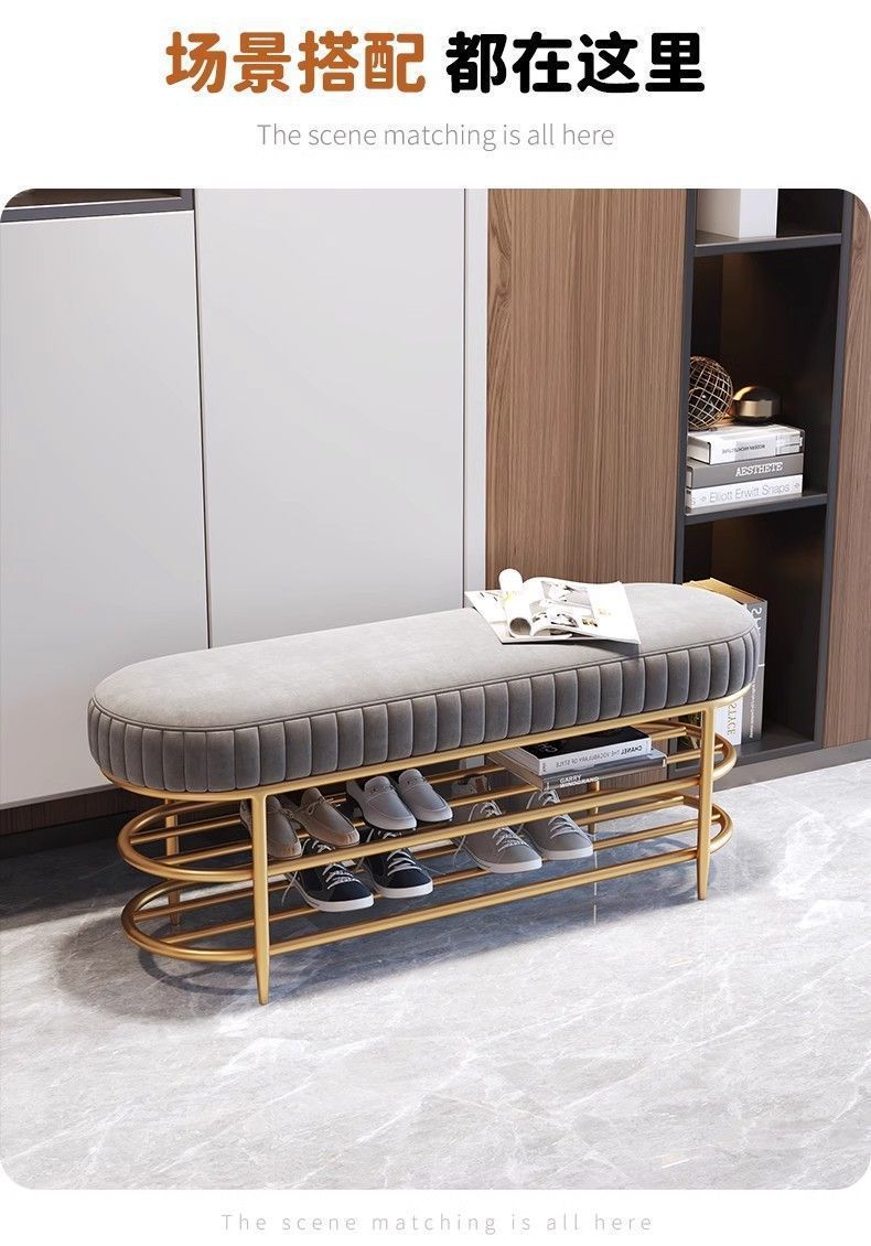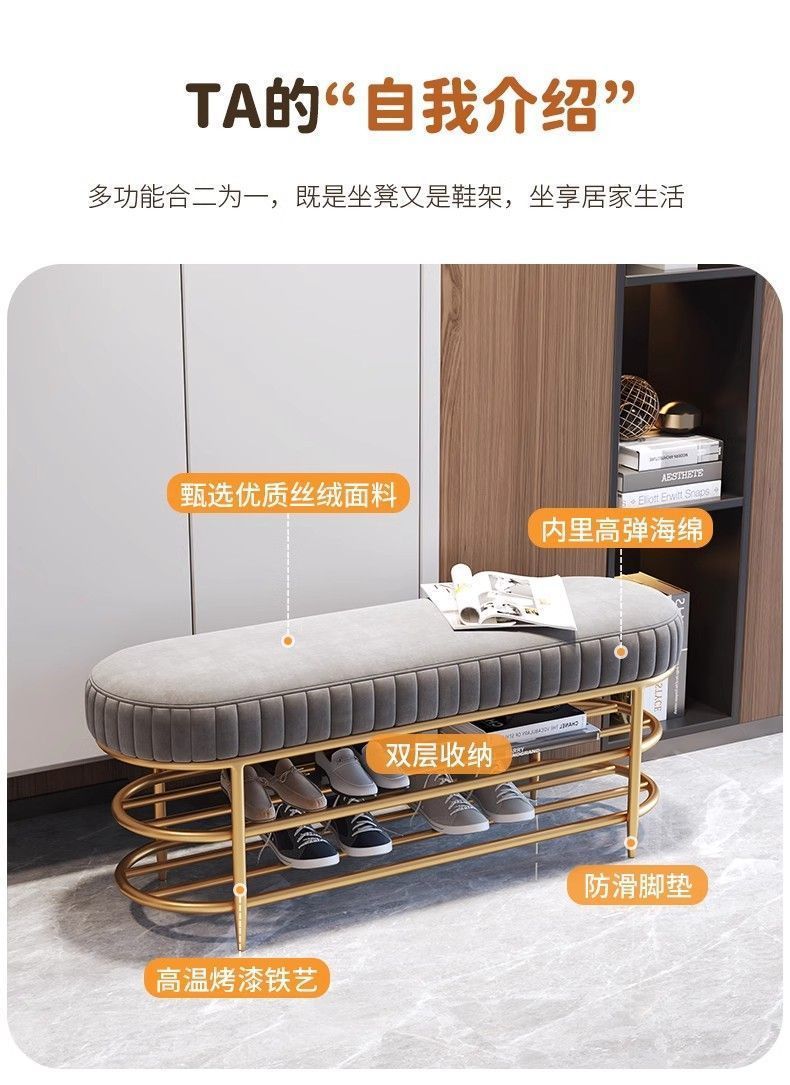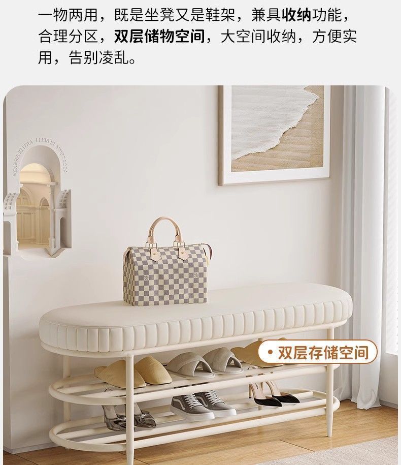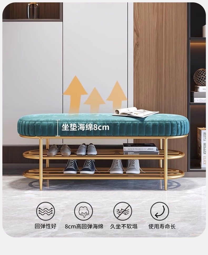 北欧轻奢家用可坐换鞋凳一体鞋架软包坐垫收纳长条凳