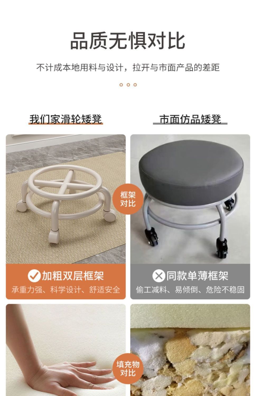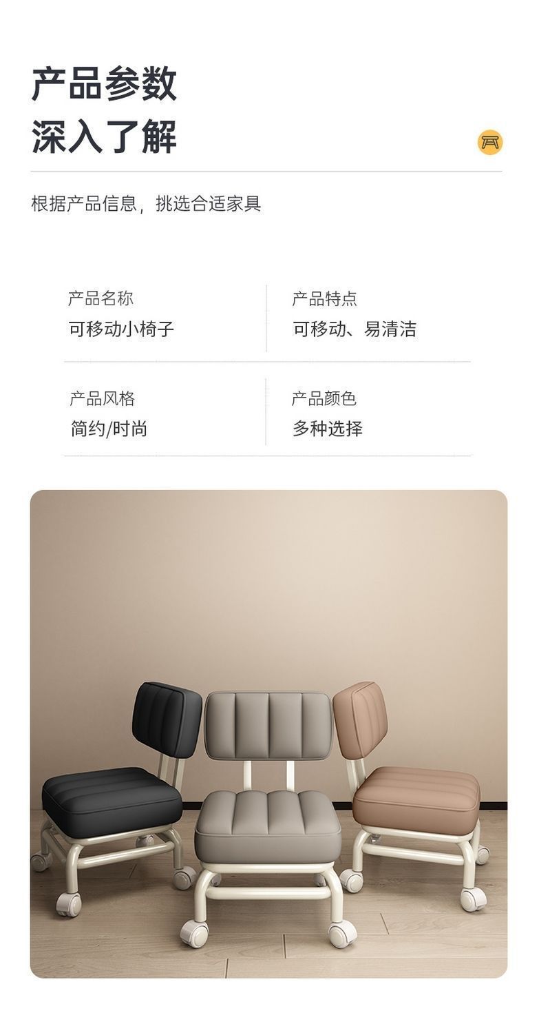 网红静音万向轮靠背滑轮矮凳换鞋凳家用沙发凳带娃神器儿童小椅子