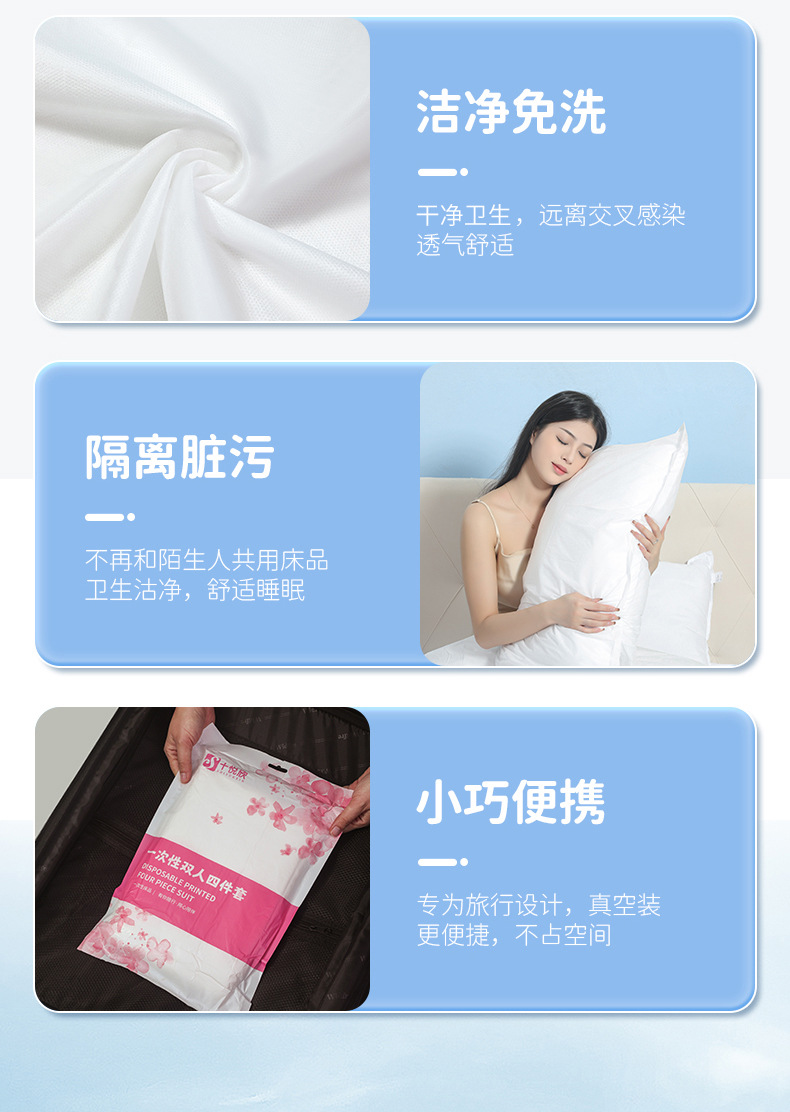 出差一次性床上四件套酒店床单被套枕套旅行便携床单双人用品批发