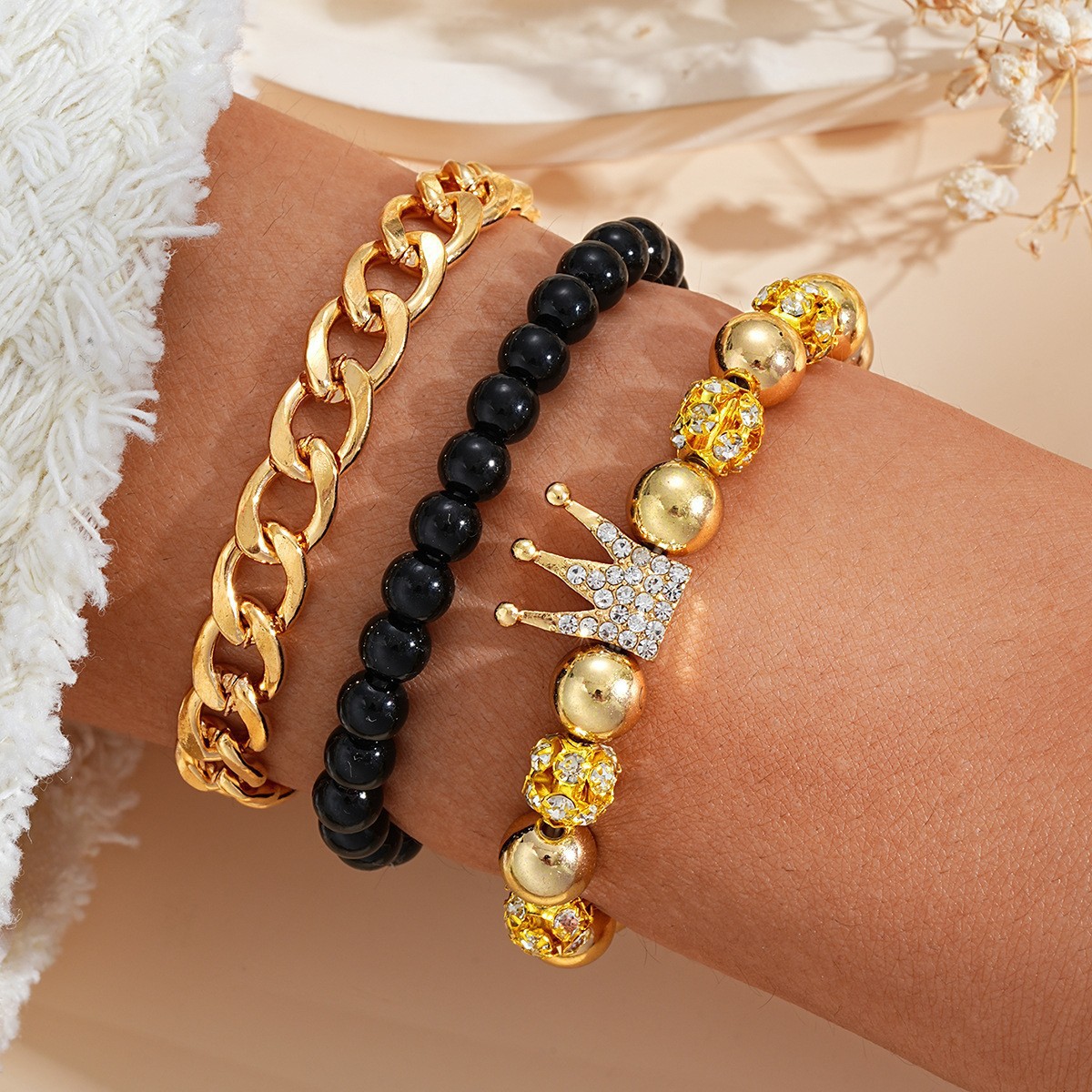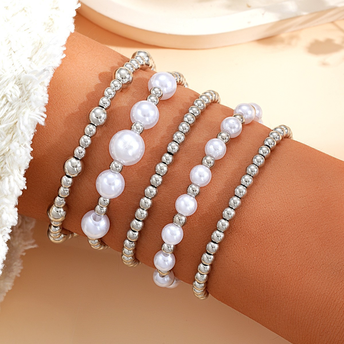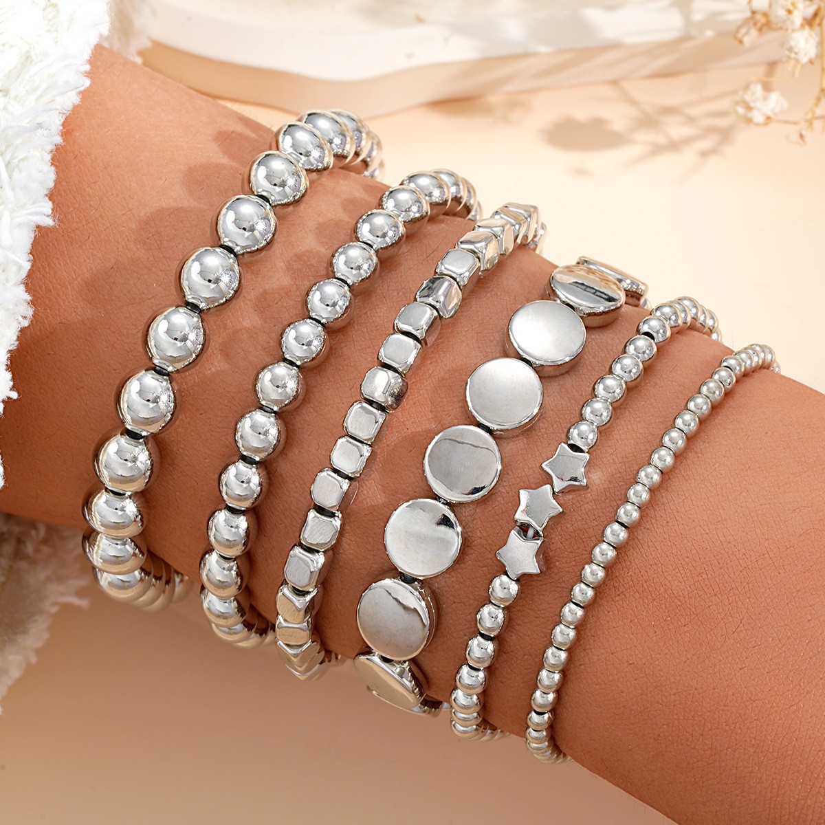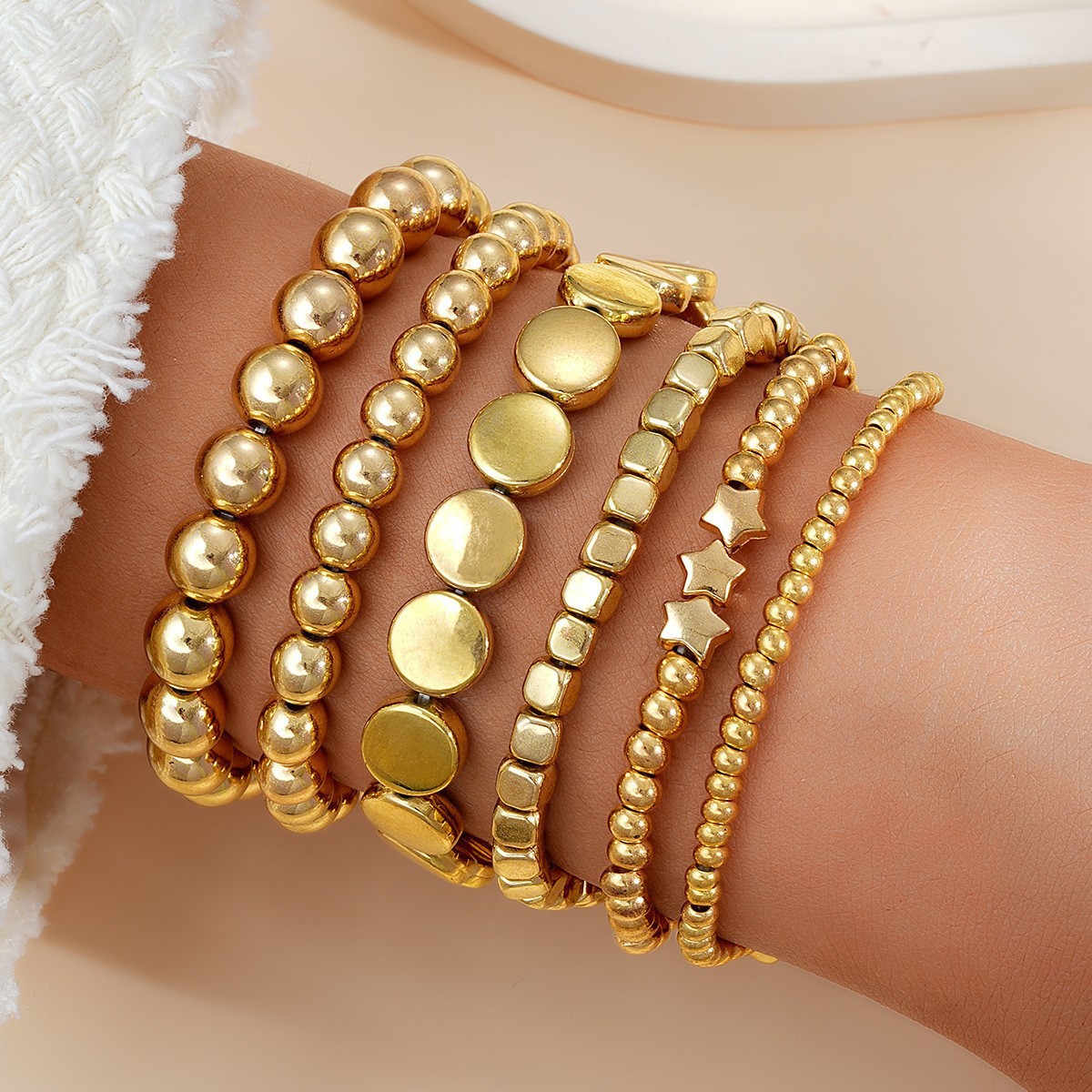 SHEIN爆款创意简约气质女士ccb时尚夸张派对风柱子米珠手链套装