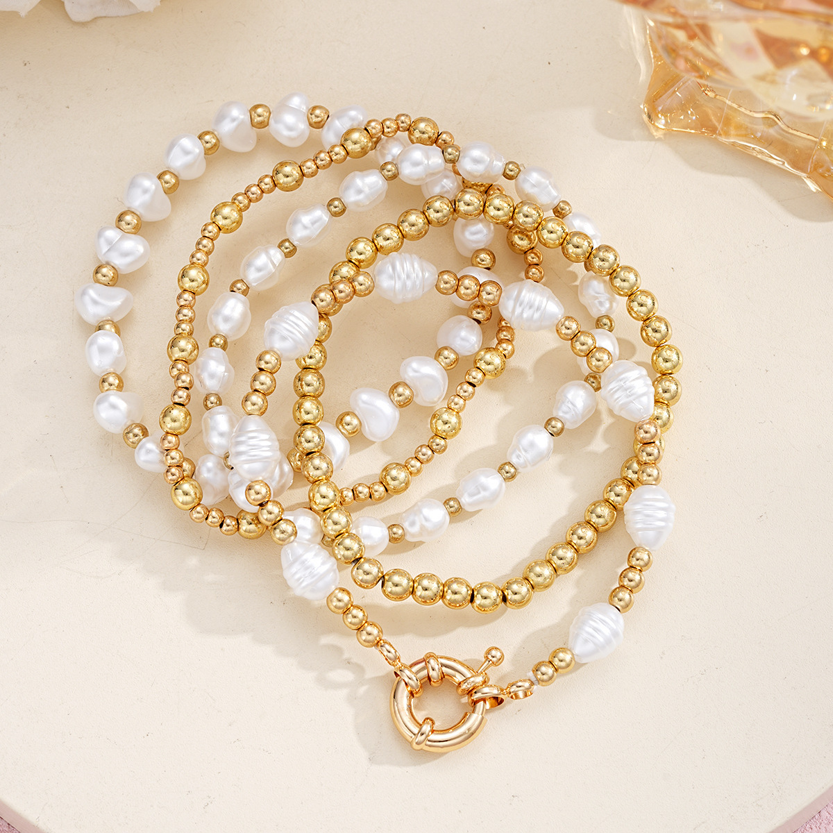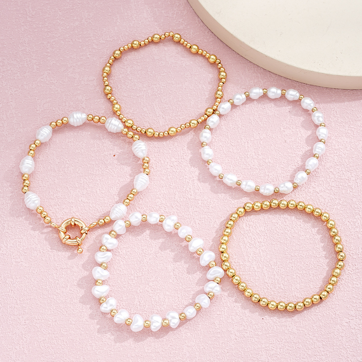 欧美简约小众设计珍珠手链套装跨境个性金珠珍珠手链5件套